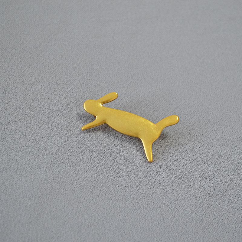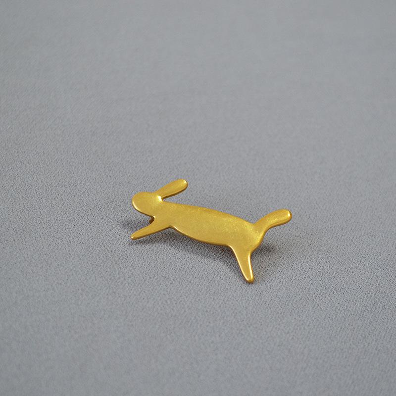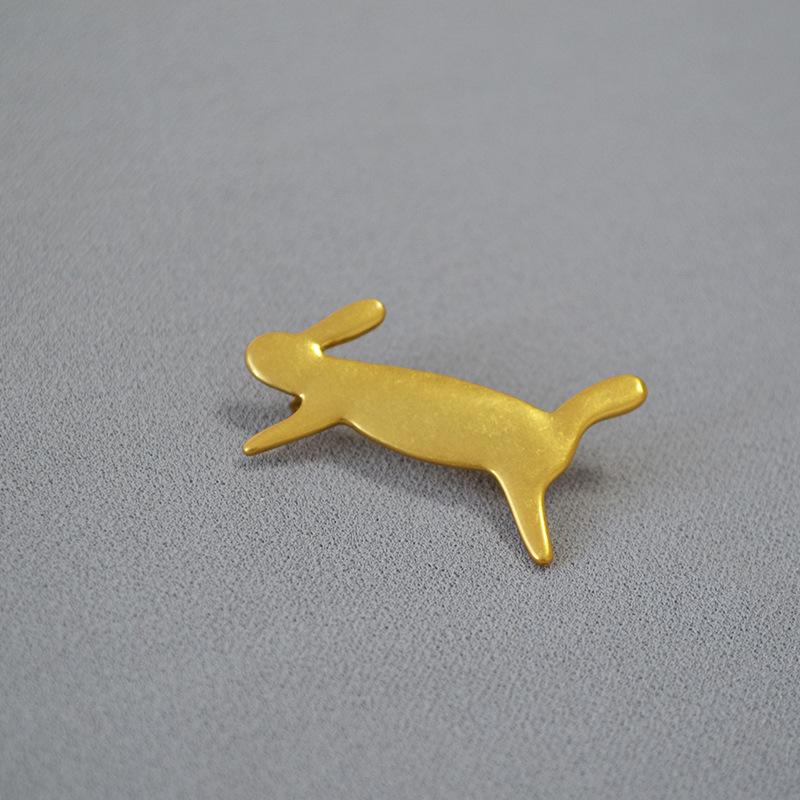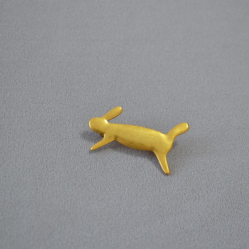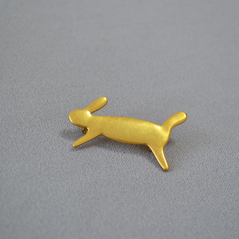 Broche elegante de latón con diseño de nicho japonés, vintage, chapado en oro, con forma de conejo corriendo, con personalidad sencilla y adorable del zodíaco.