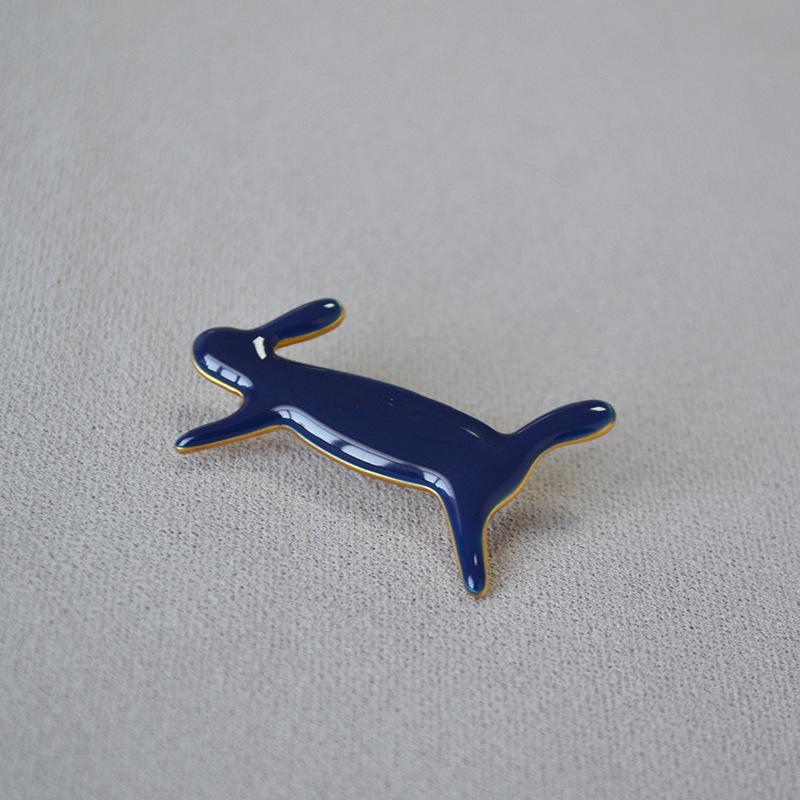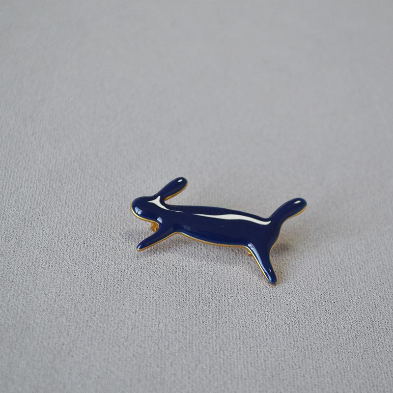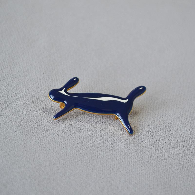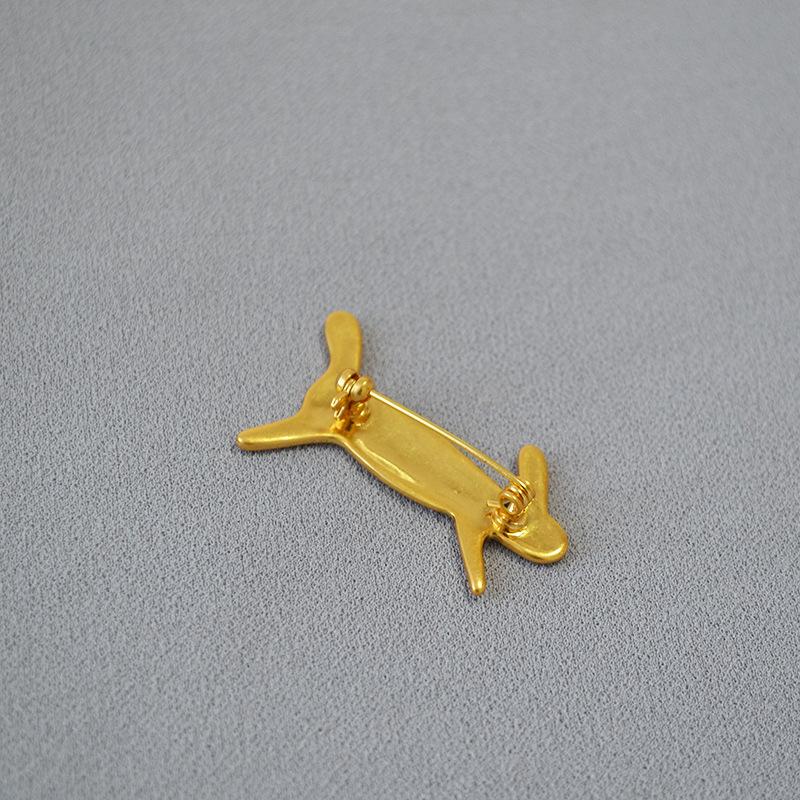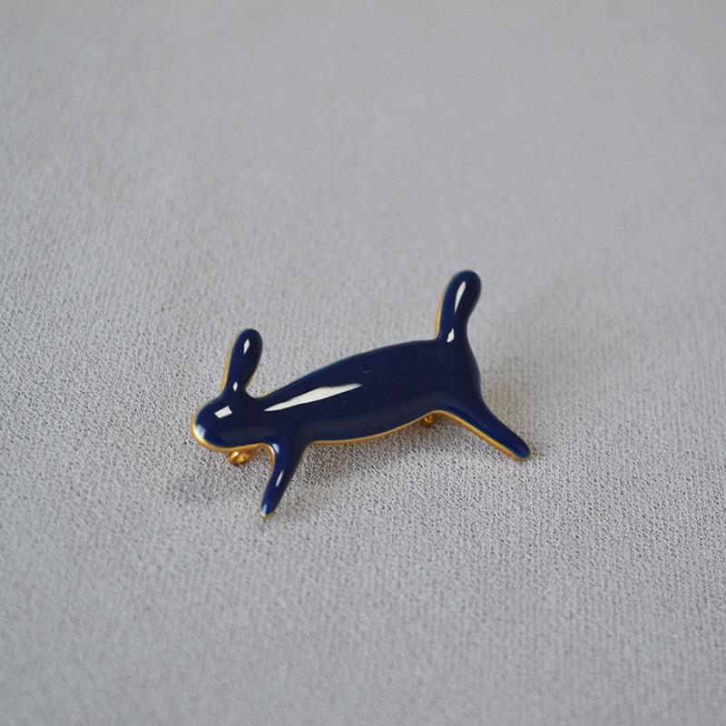 Broche elegante de latón con diseño de nicho japonés, vintage, chapado en oro, con forma de conejo corriendo, con personalidad sencilla y adorable del zodíaco.