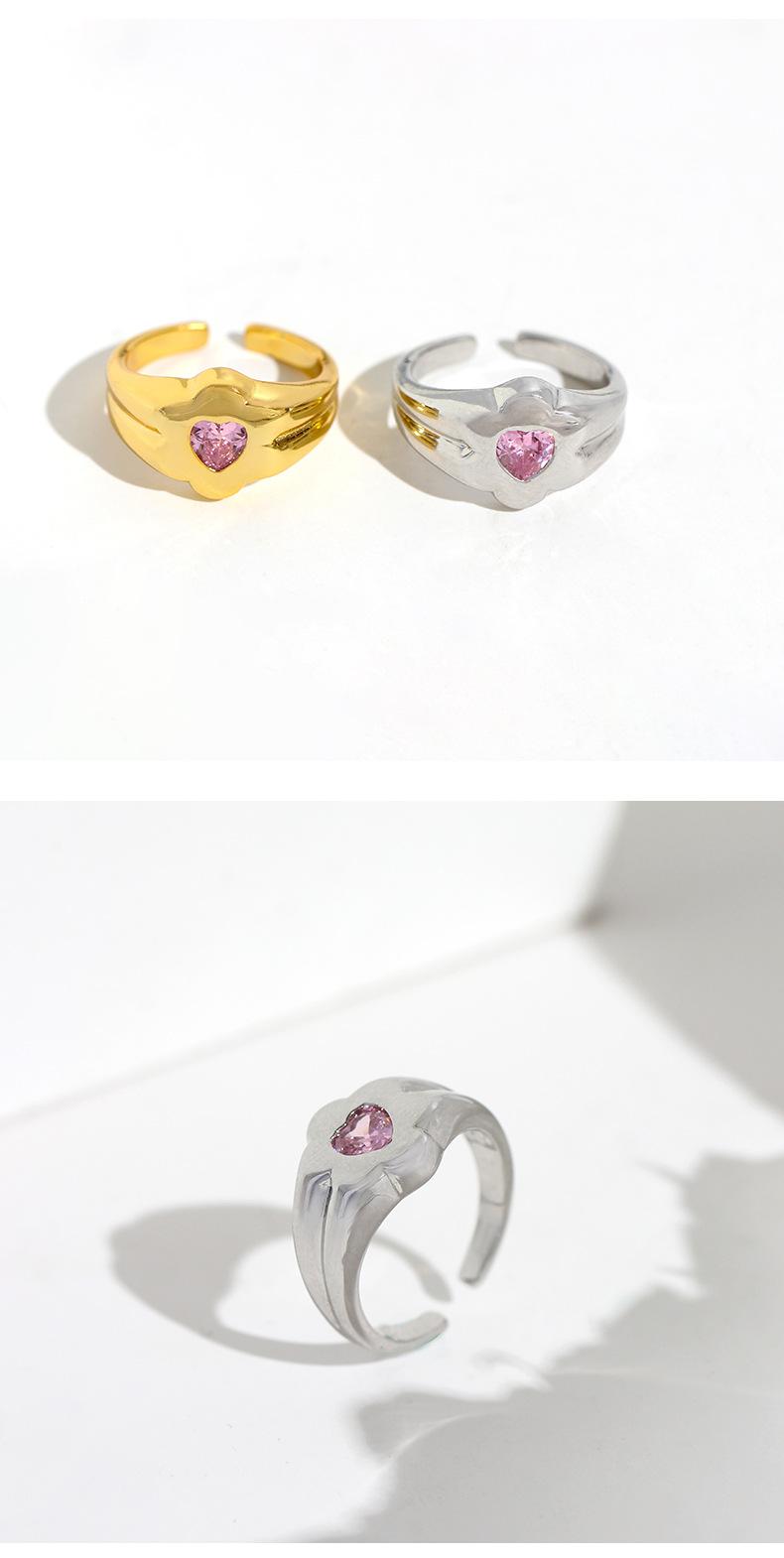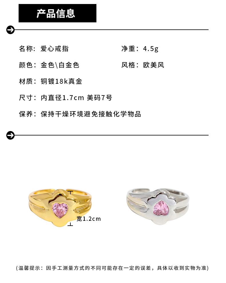 Anillo Abierto Retro Transfronterizo Europeo y Americano con Forma de Corazón y Incrustaciones de Diamantes para Mujer, Joyería al por Mayor de Moda Francesa, Metal, Zircón, Chapado en Oro