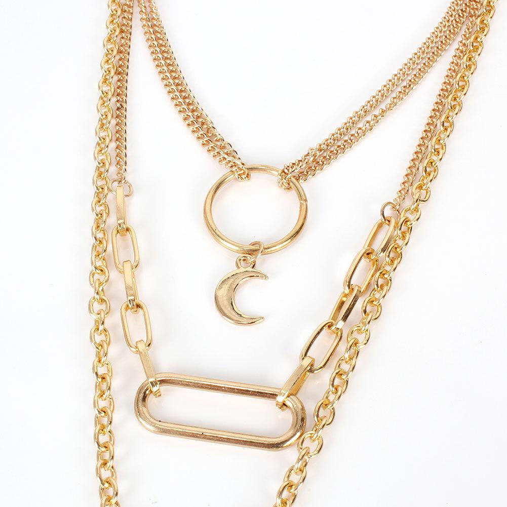 Collar de metal transfronterizo europeo y americano, collar con colgante de metal multicapa de moda simple para mujer 14400