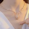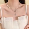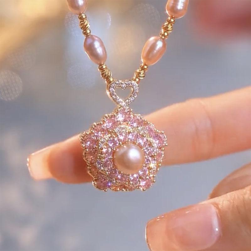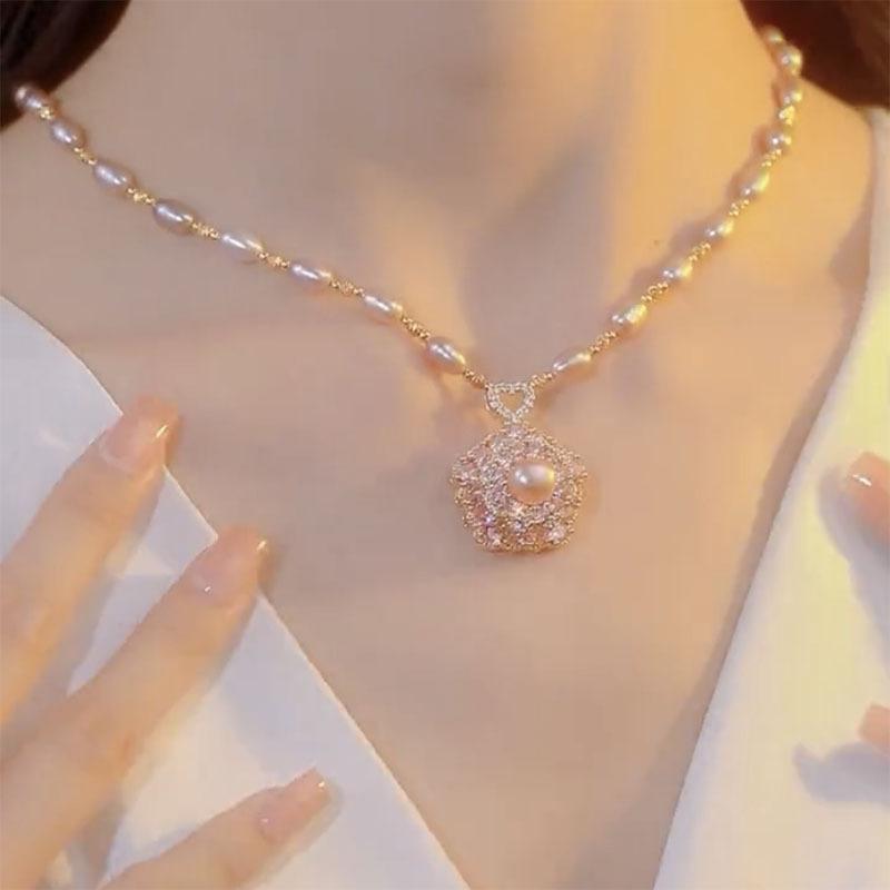 Collar de perlas con colgante de flor de nicho de lujo ligero 2024, nuevo estilo popular, elegante, antiedad, combinable con todo, cadena para mujer
