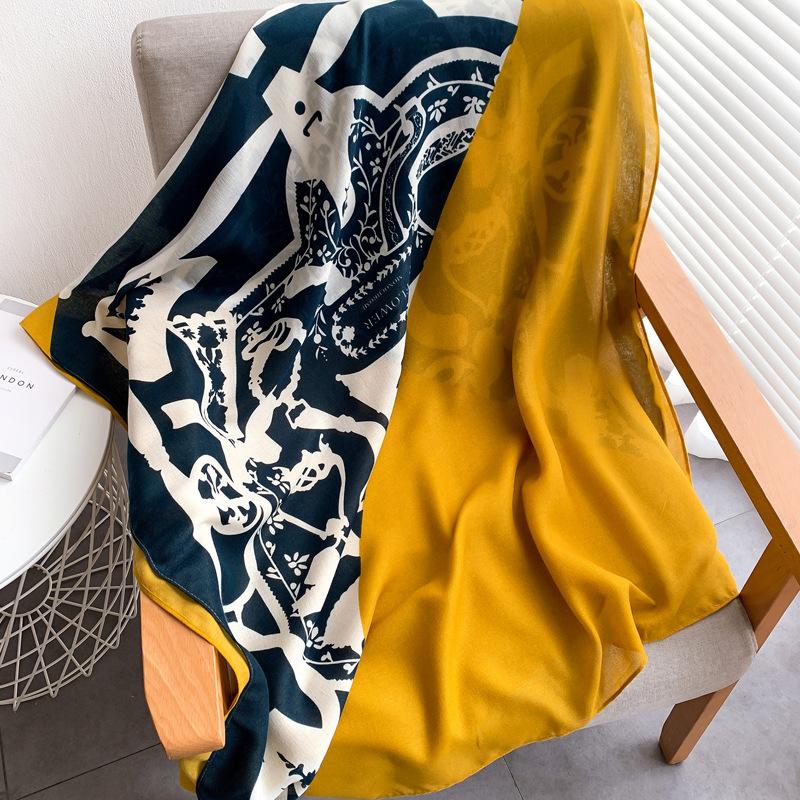 [Pañuelo de seda pura de alta gama de Hangzhou, nuevo estilo de primavera y verano, estampado decorativo, cuadrado de 70 cm para mujer] |