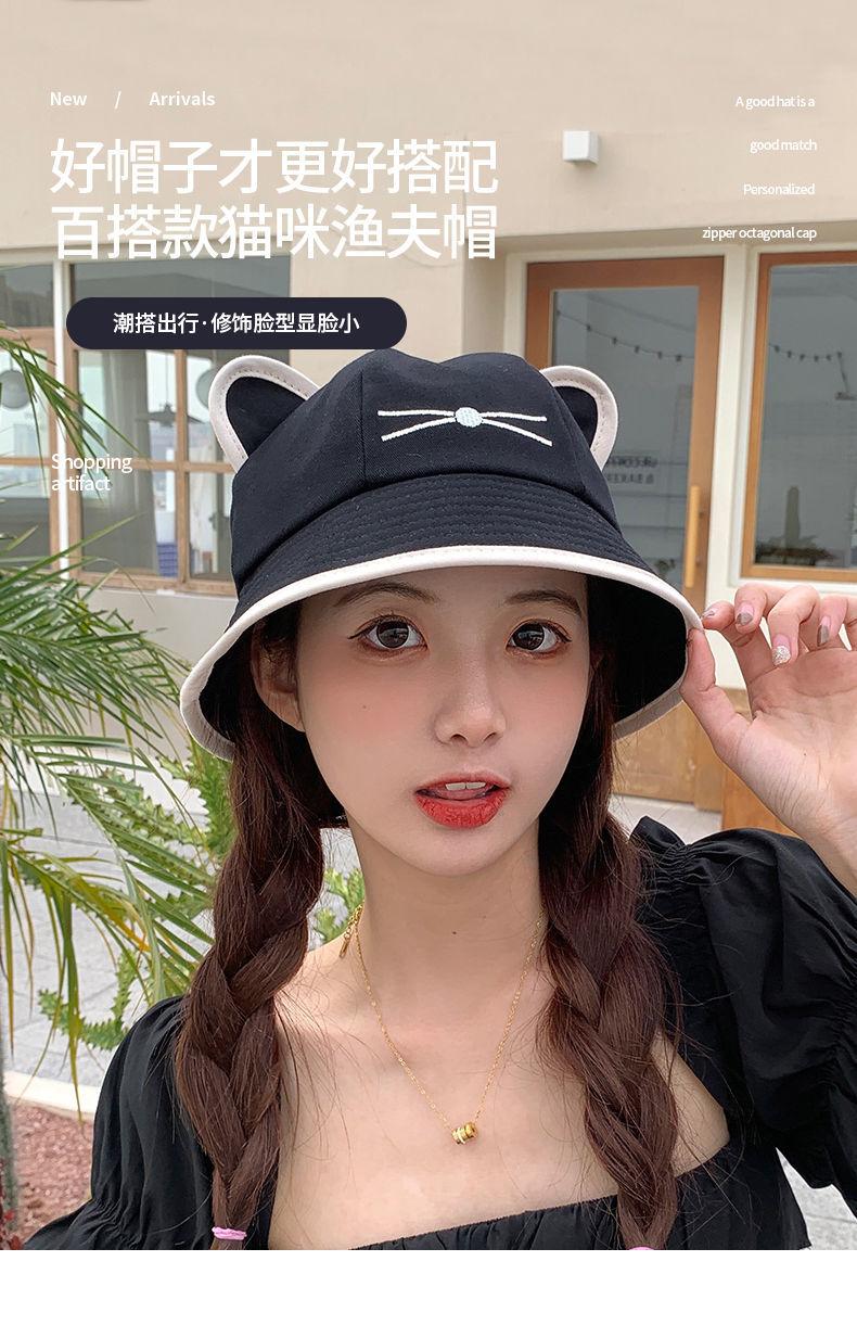 Sombrero de pescador con orejas de gato para mujer, bonito y bonito sombrero de pescador para estudiantes, estilo coreano, japonés y protector solar.