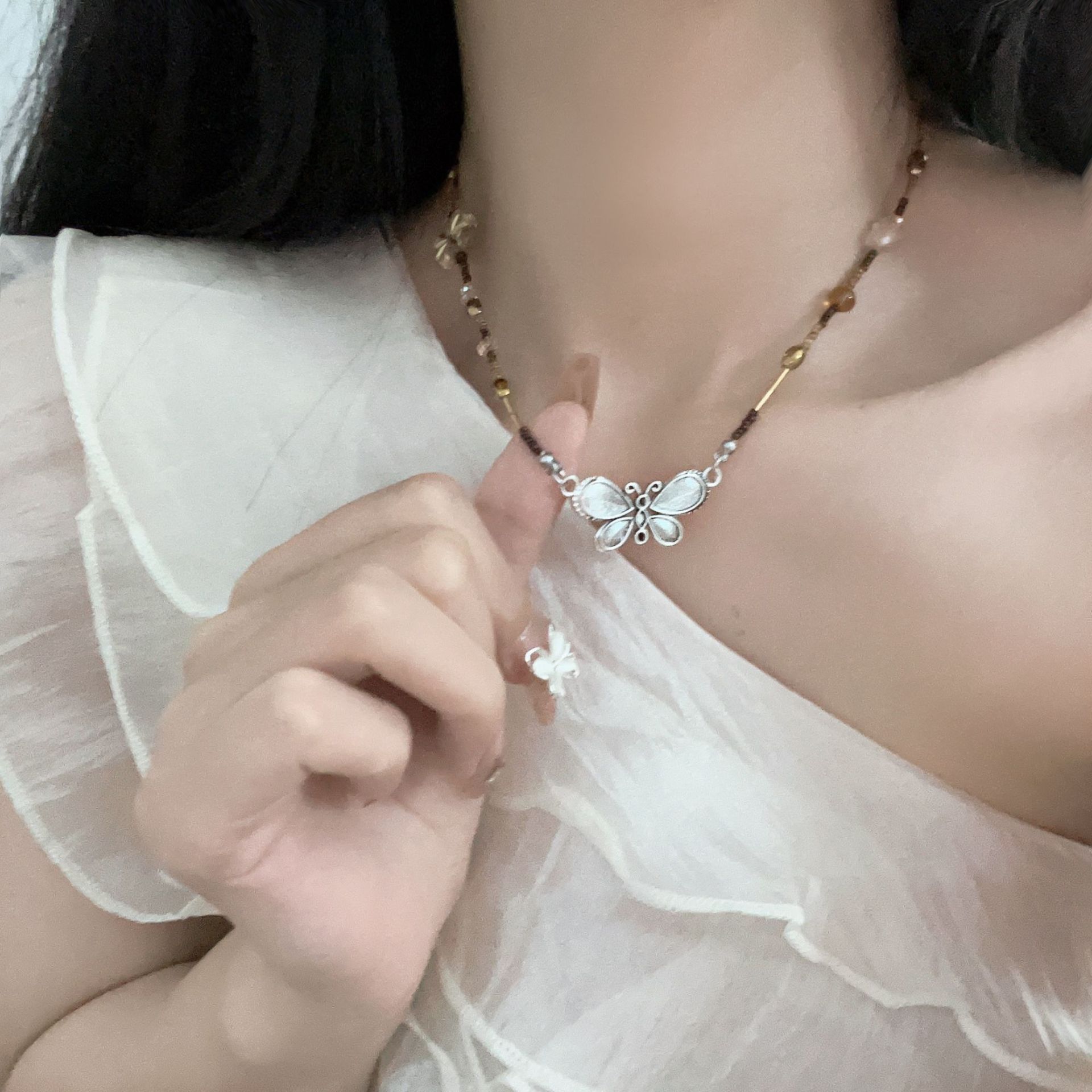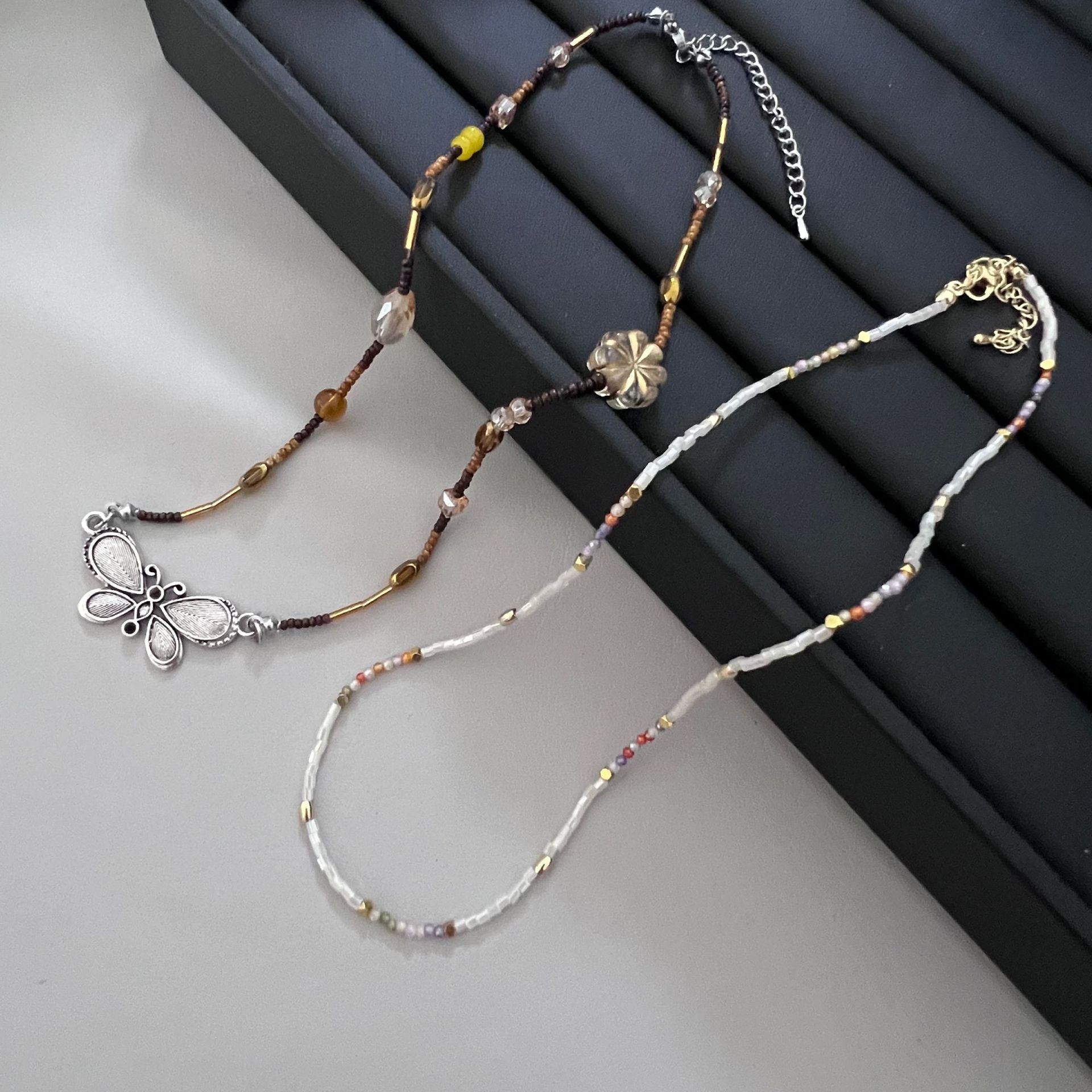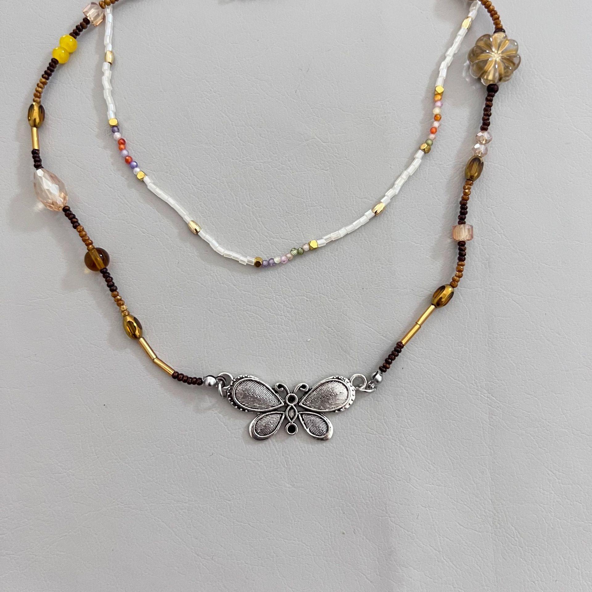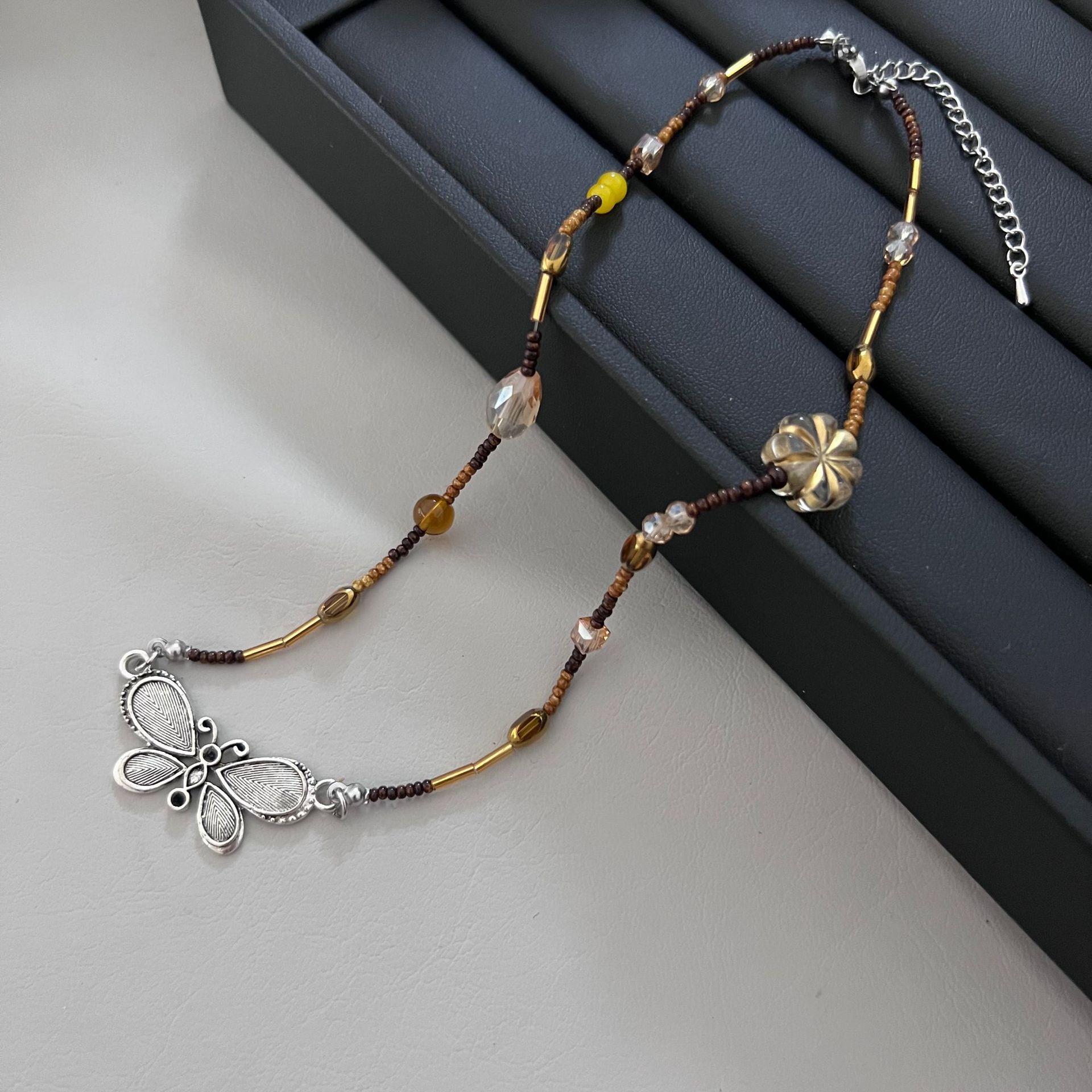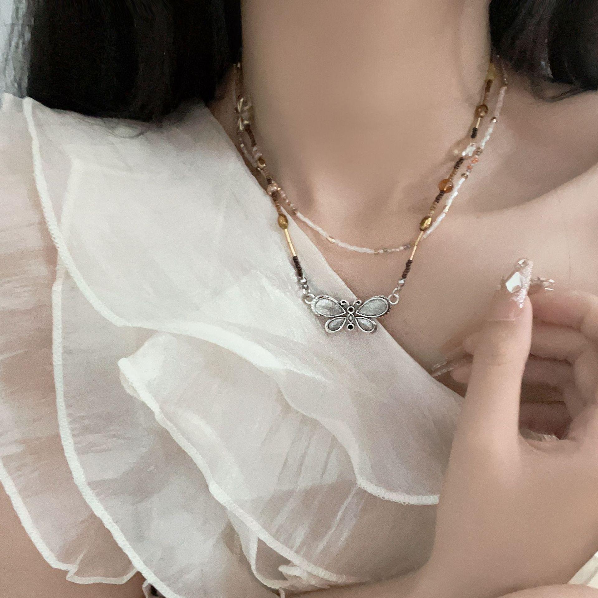 Nuevo collar de mariposa con cuentas vintage de estilo chino para mujer, diseño de nicho ligero y lujoso, decoración de interiores con cadena superpuesta para clavícula, accesorios