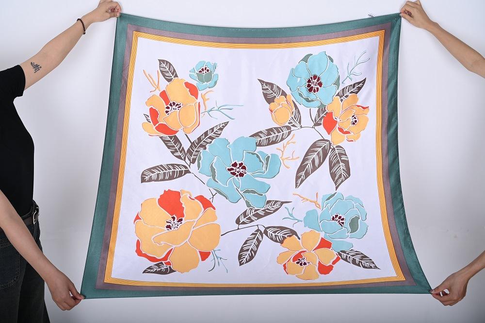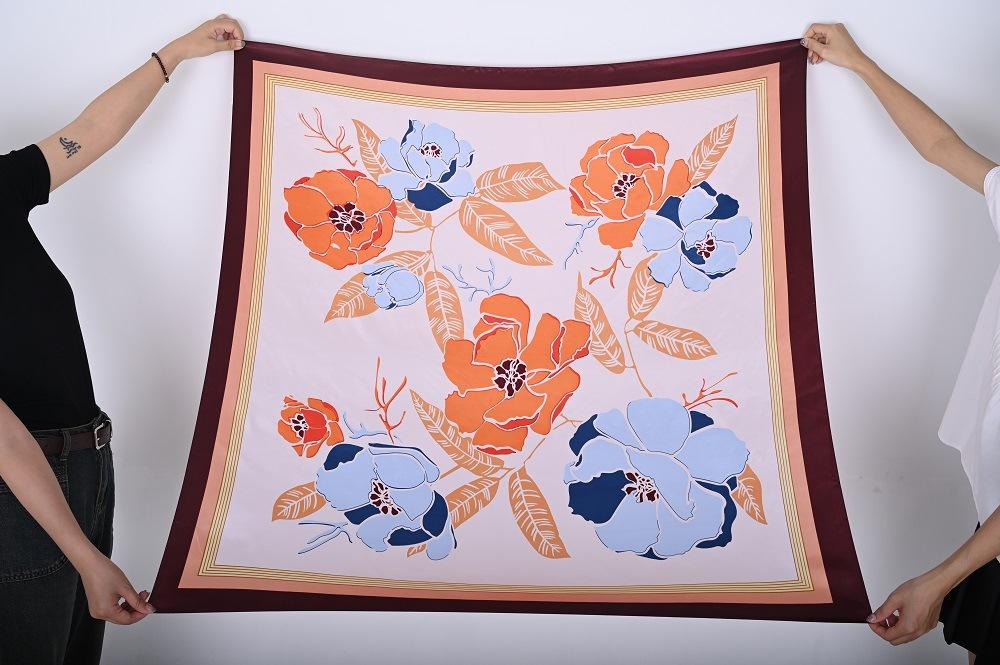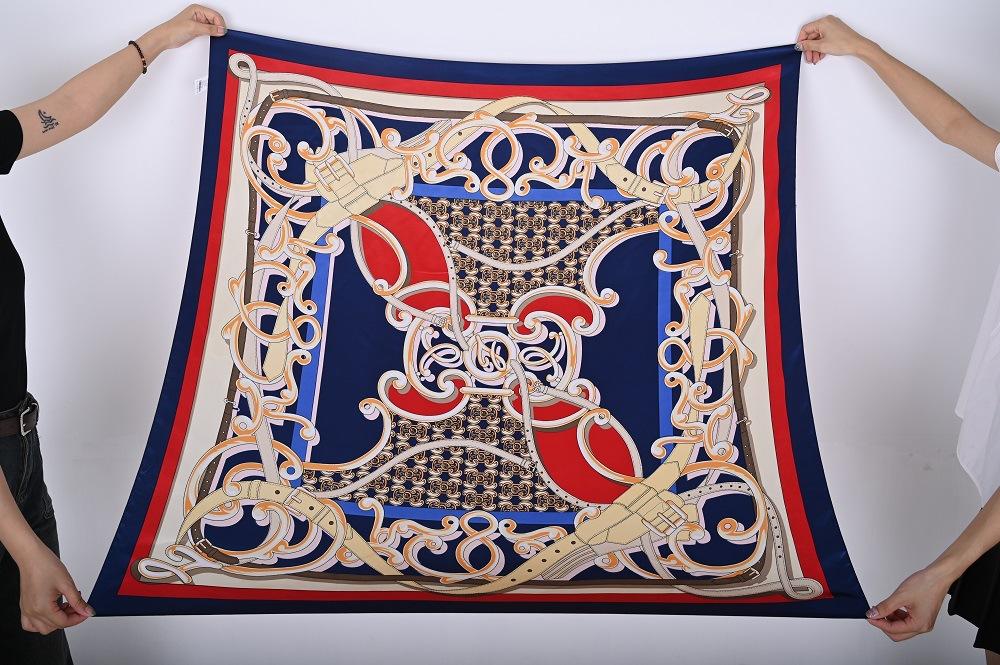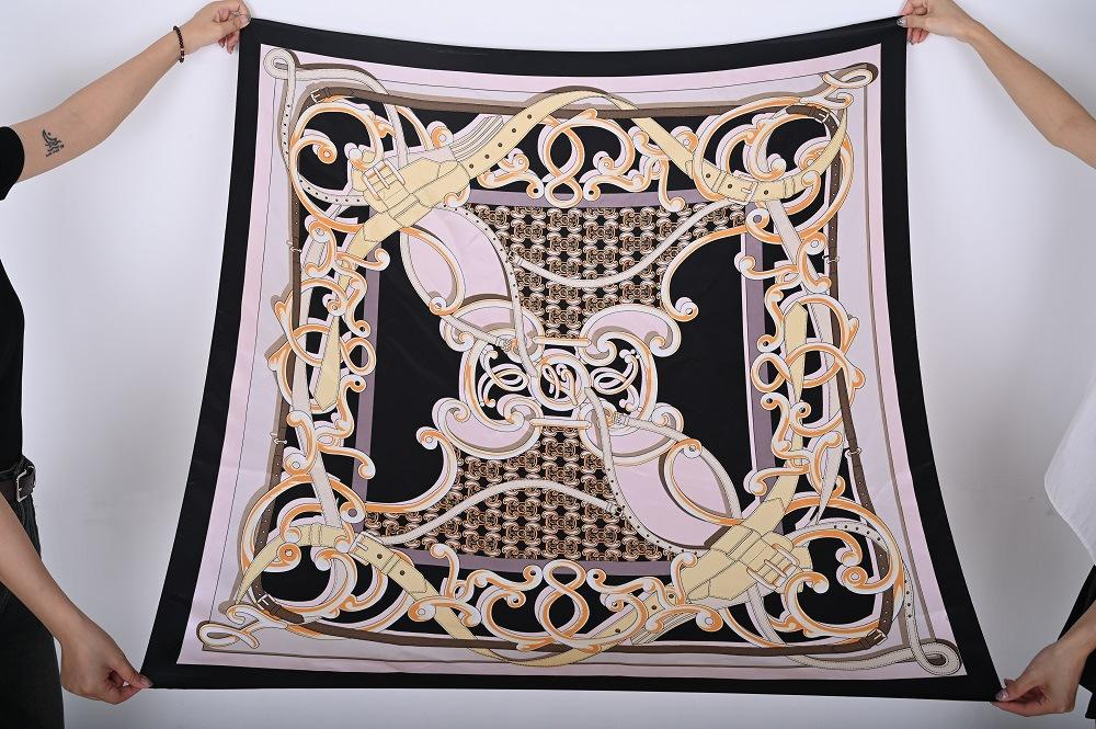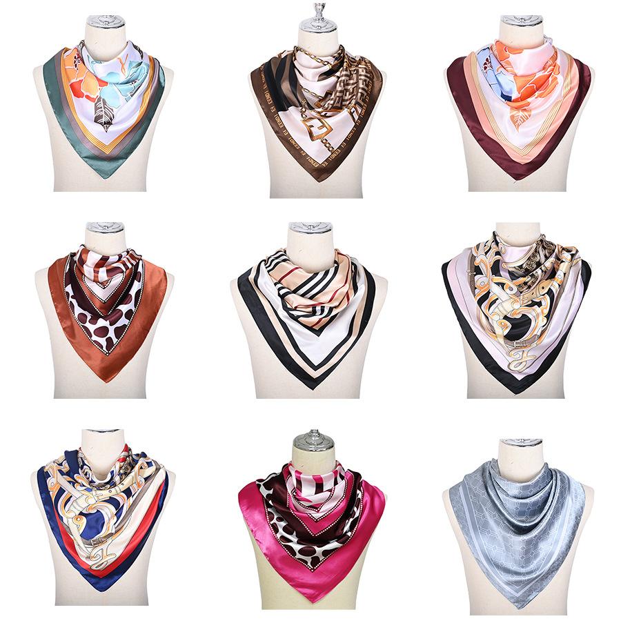Bufanda cuadrada grande de 110 cm para mujer otoño e invierno Nueva bufanda seda artificial estampada moderna versátil chal grande venta al por mayor de fábrica
