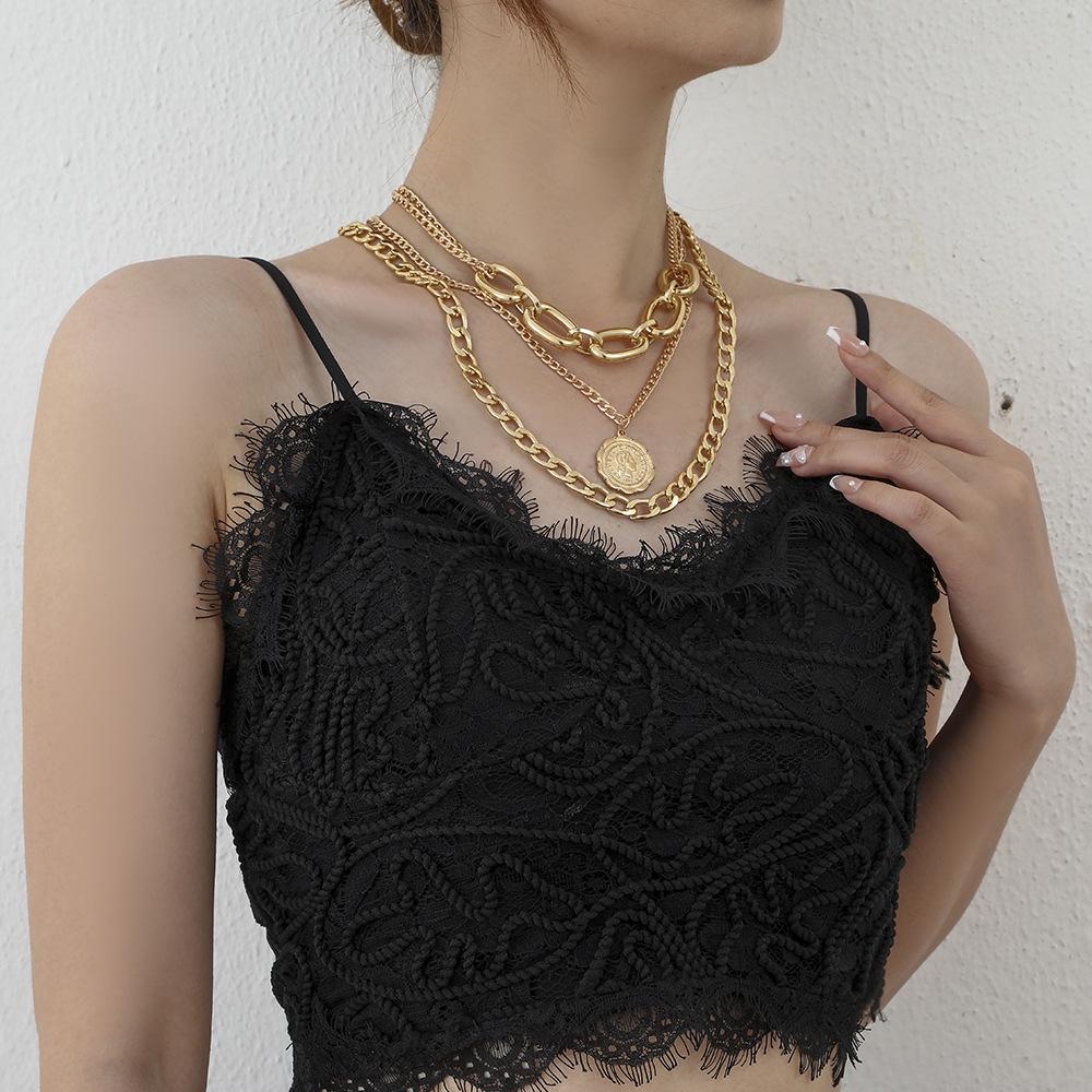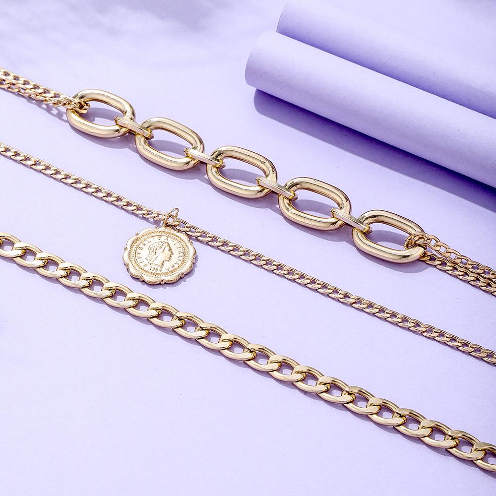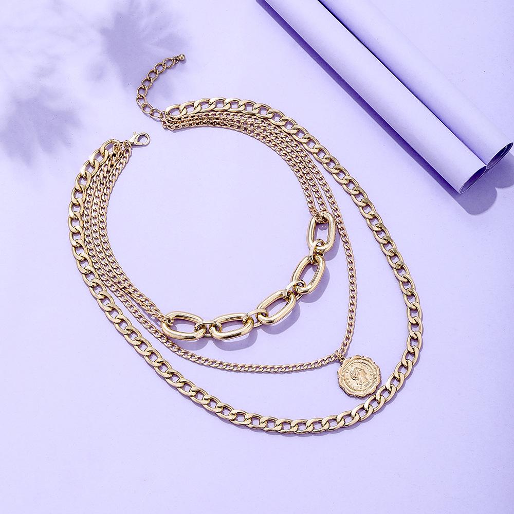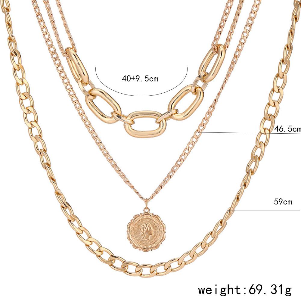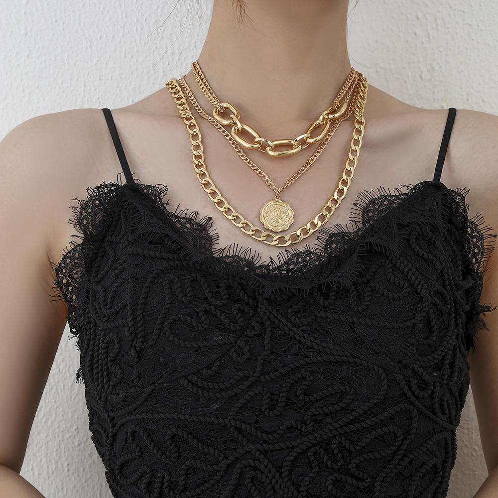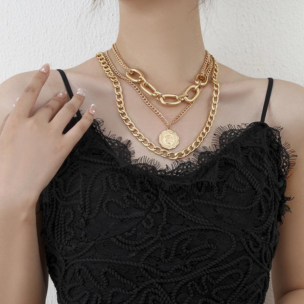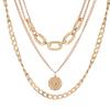 Collar multicapa de cadena metálica con moneda de personalidad simple de nueva moda transfronteriza europea y americana, collar de aleación dorado retro