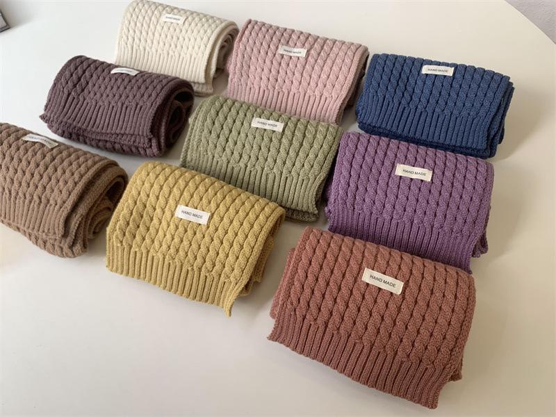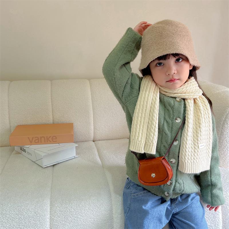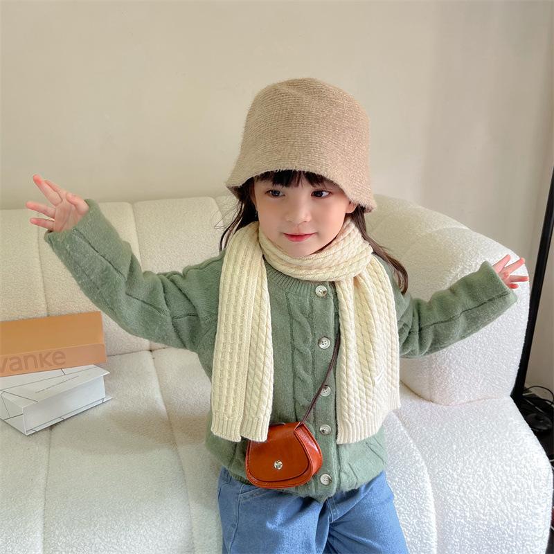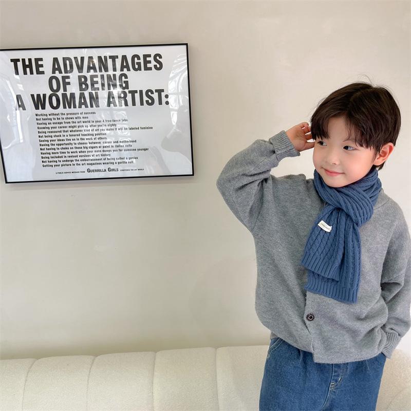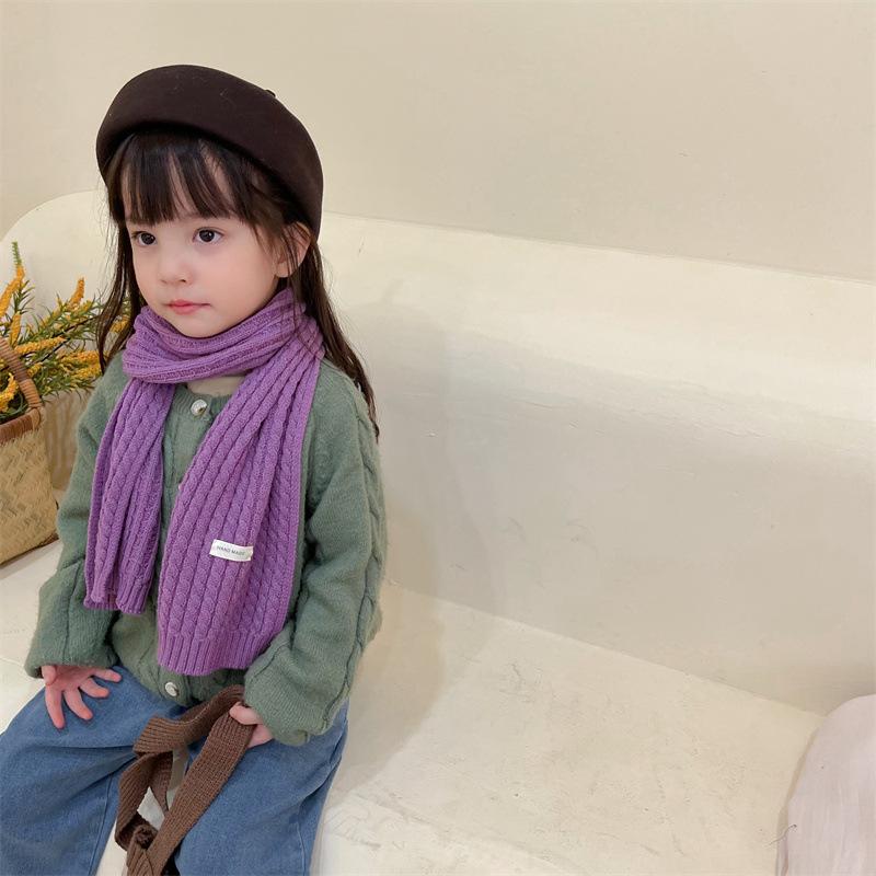 En stock Bufanda para niños, otoño e invierno, estilo coreano, retro, monocromática, cálida, para niños y niñas, de punto a juego, con mangas para el cuello.