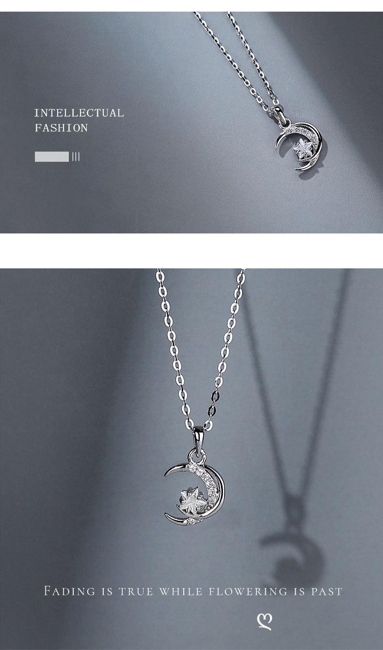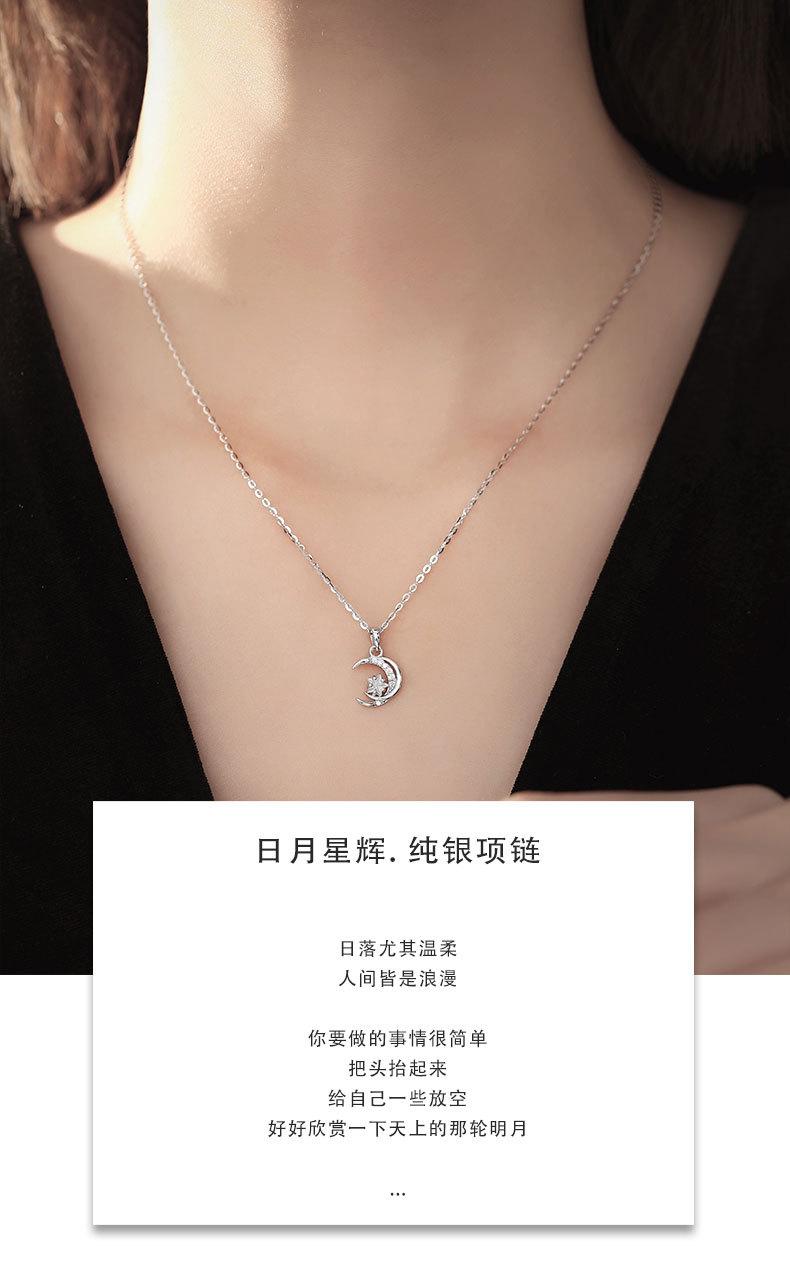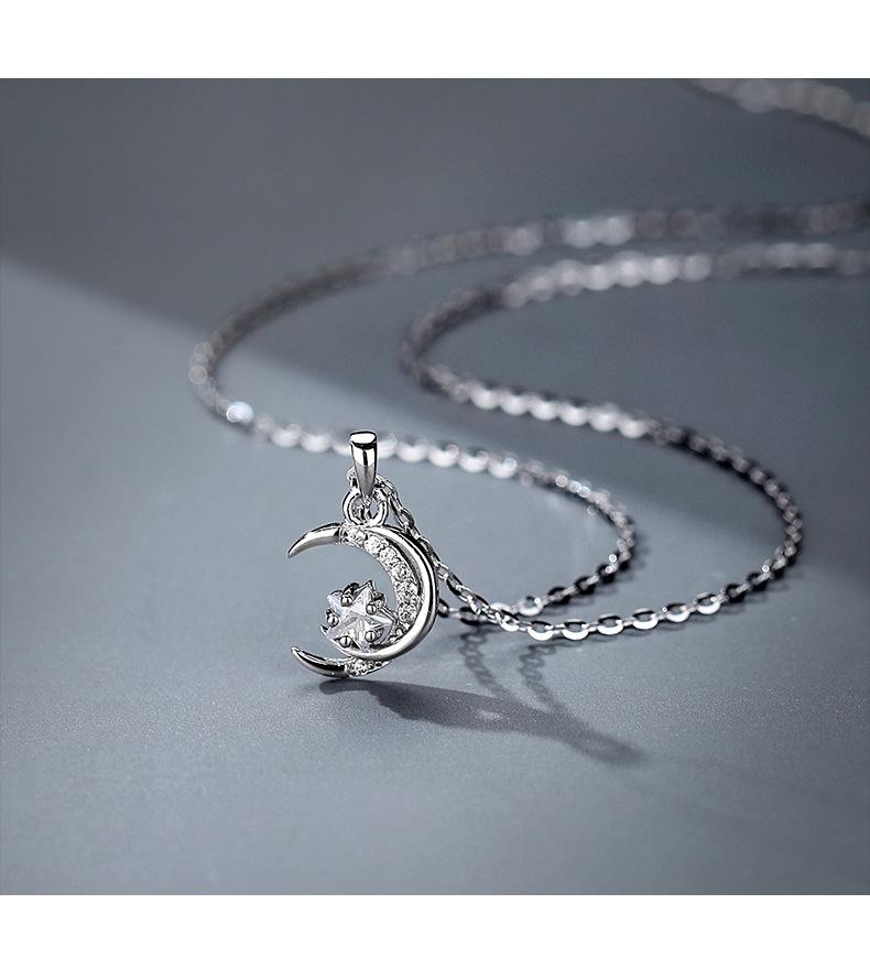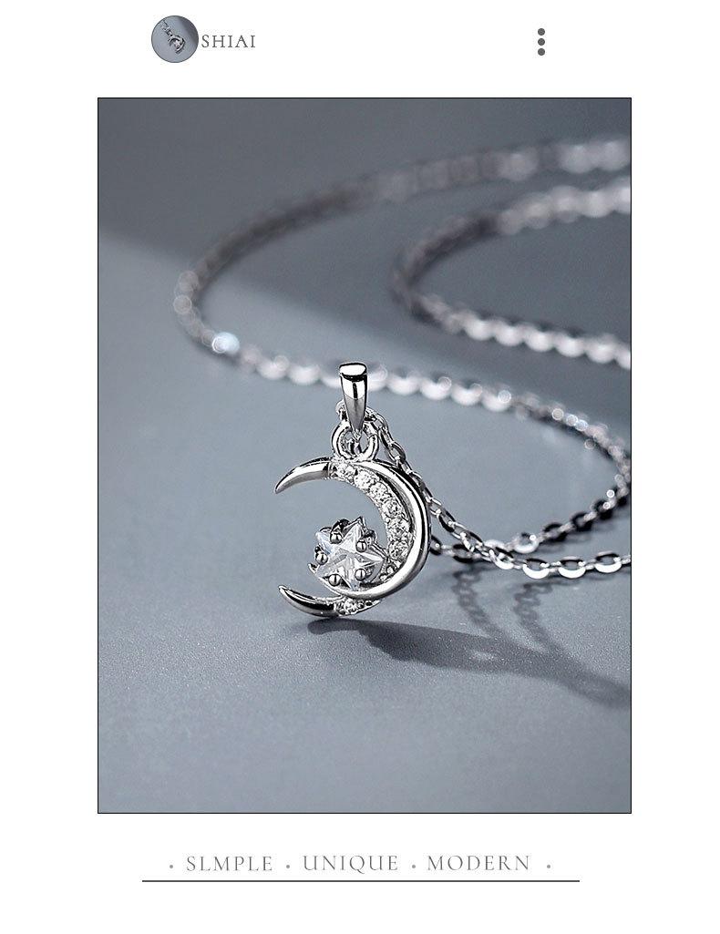 Collar de plata 999 con diseño de estrella y luna, con nicho sencillo, cadena de clavícula, conchas de agua, venta al por mayor
