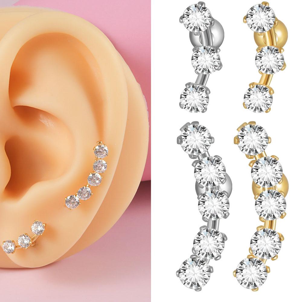 .nombre:Aretes de acero inoxidable transfronterizos con circonita engarzada, color acero dorado, electrochapados, aretes de bola redonda con piercing interno para el cartílago de la oreja