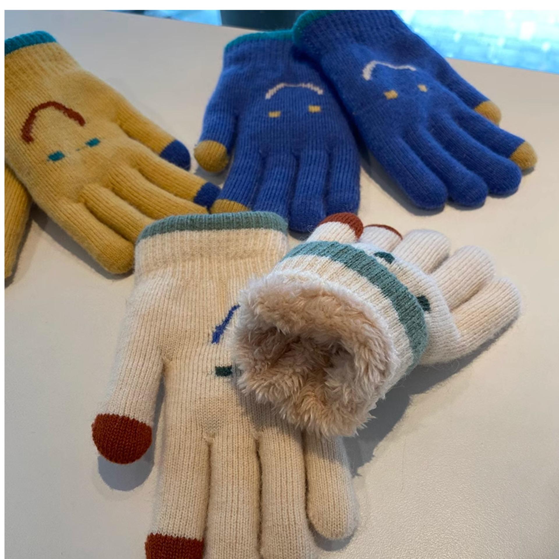 Guantes para niños otoño e invierno bebé forrados de vellón cálidos para niños y niñas lana cubierta de cinco dedos invierno a prueba de viento protección de manos contra el frío