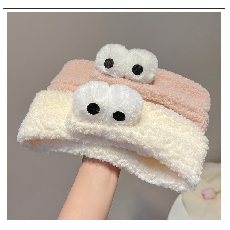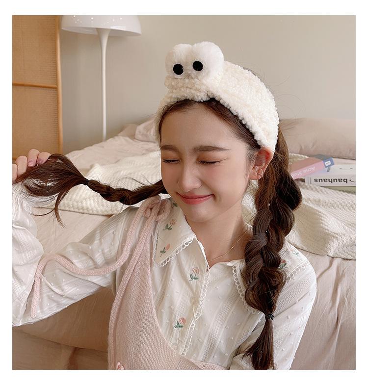 Bonita banda para el cabello con ojos grandes, banda para el cabello con forma de máscara facial para mujer, banda para el cabello con velcro ajustable de felpa, accesorios para el cabello