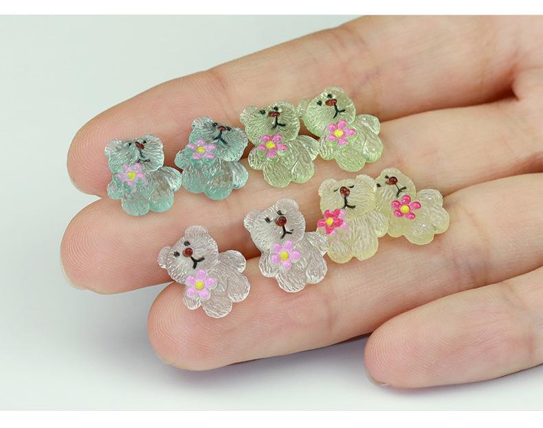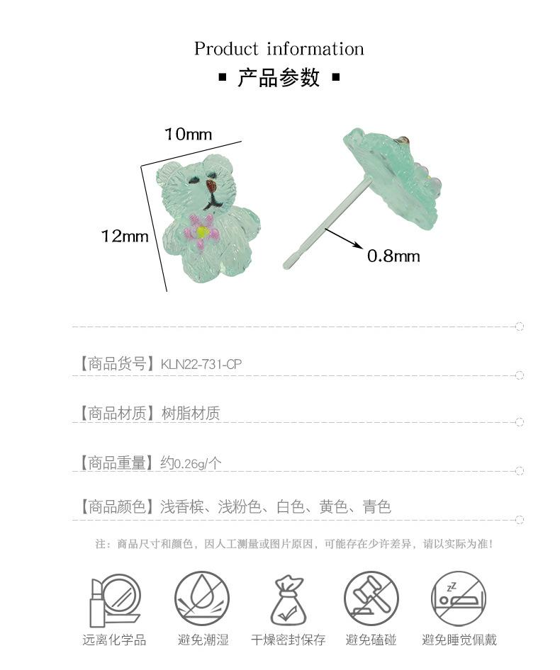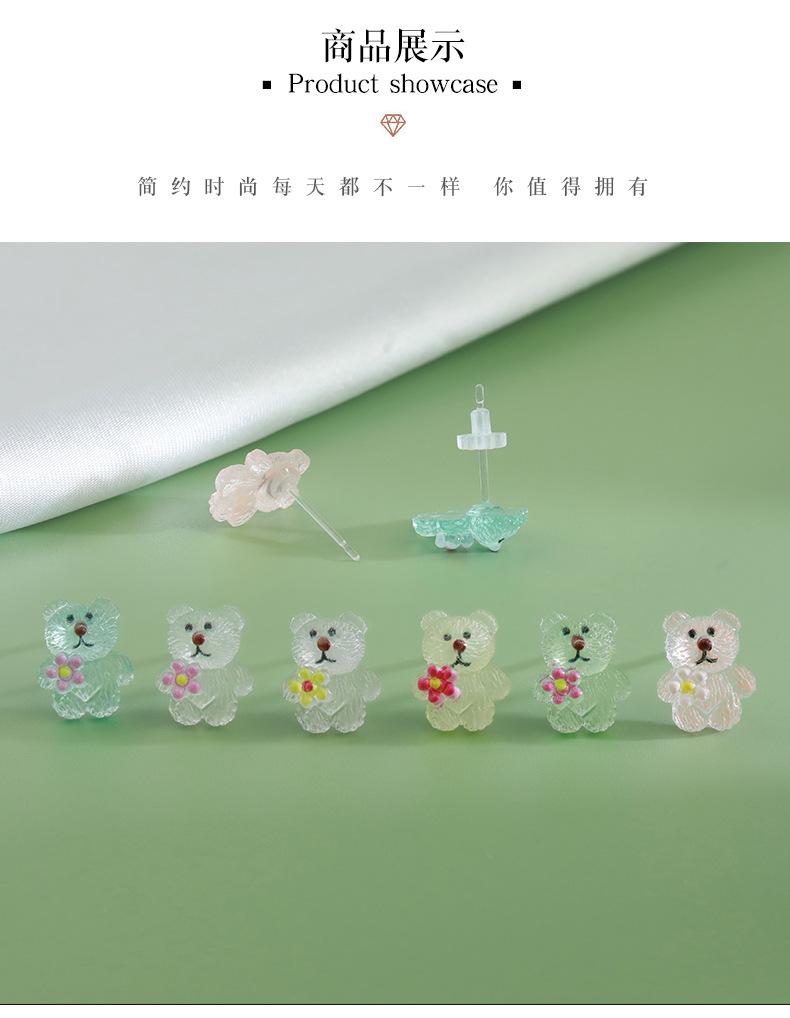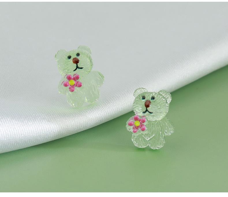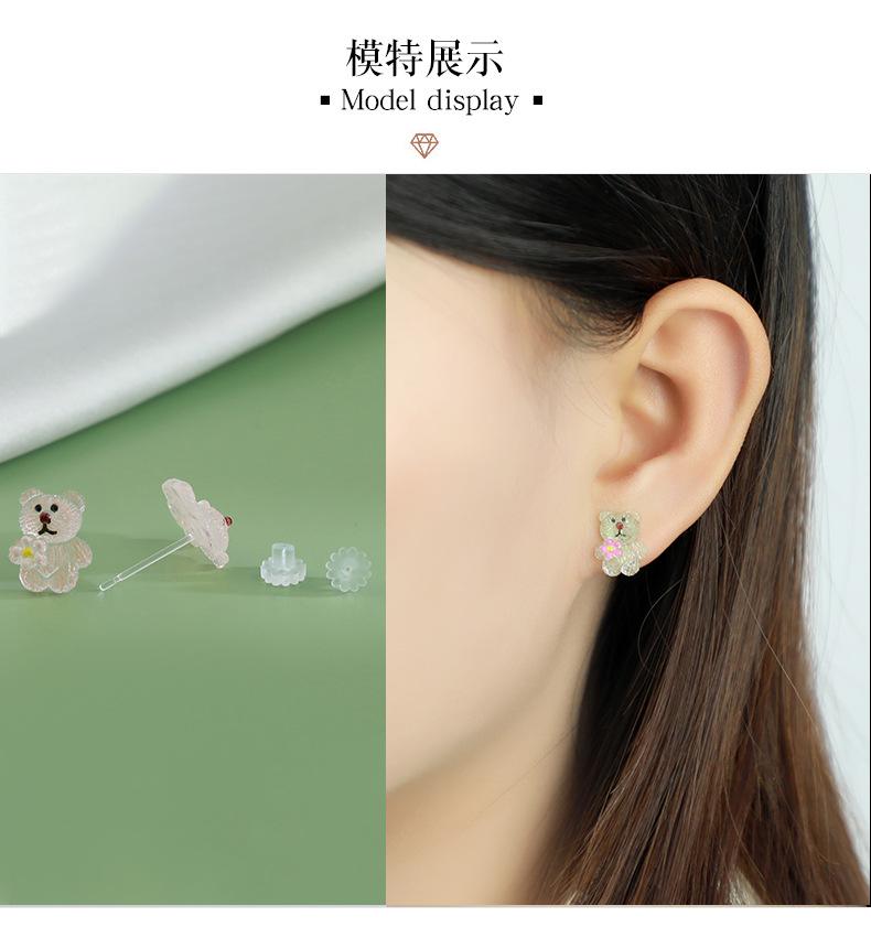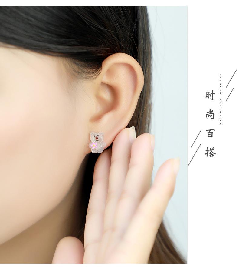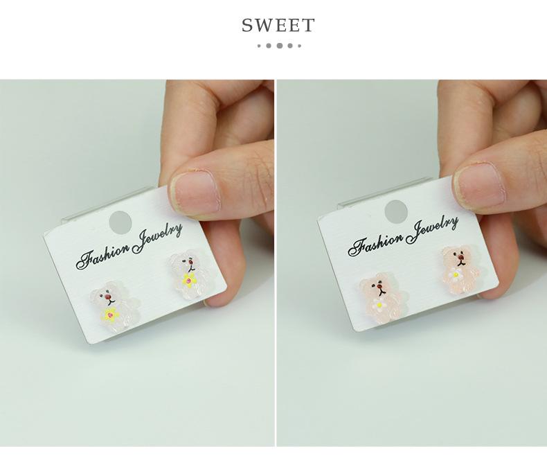 Lindos Aretes de Resina de Oso de Dibujos Animados para Orejas Perforadas, Nuevo Diseño de Nicho Pequeño y Exquisito de Moda, Aretes Elegantes para Mujer