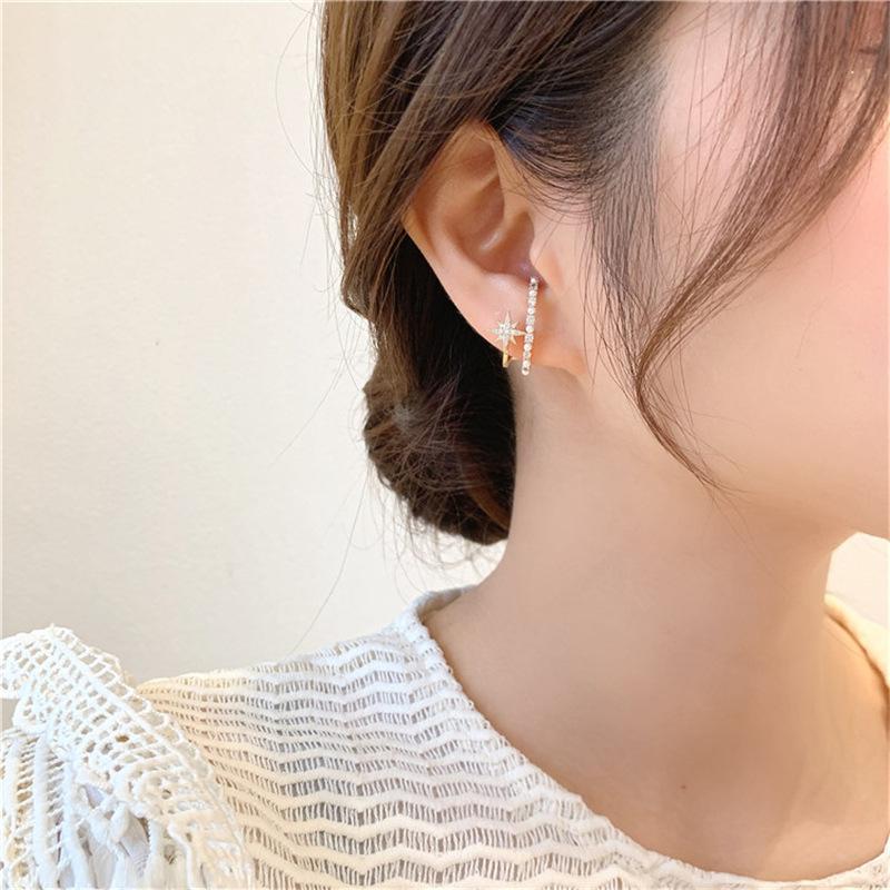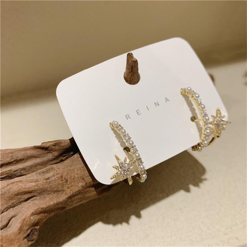 Pendientes de plata de ley 925 con forma de estrella y perla de Corea del Sur Dongdaemun, elegantes y modernos, con diseño de hada para mujer.