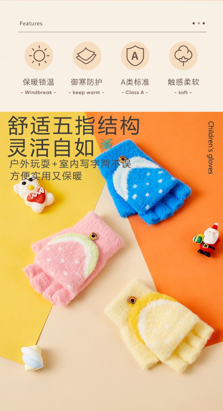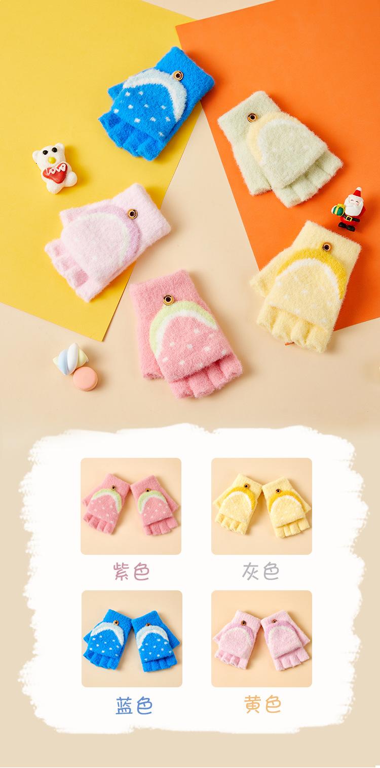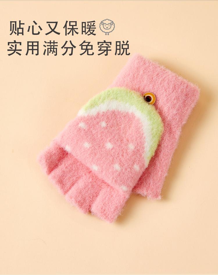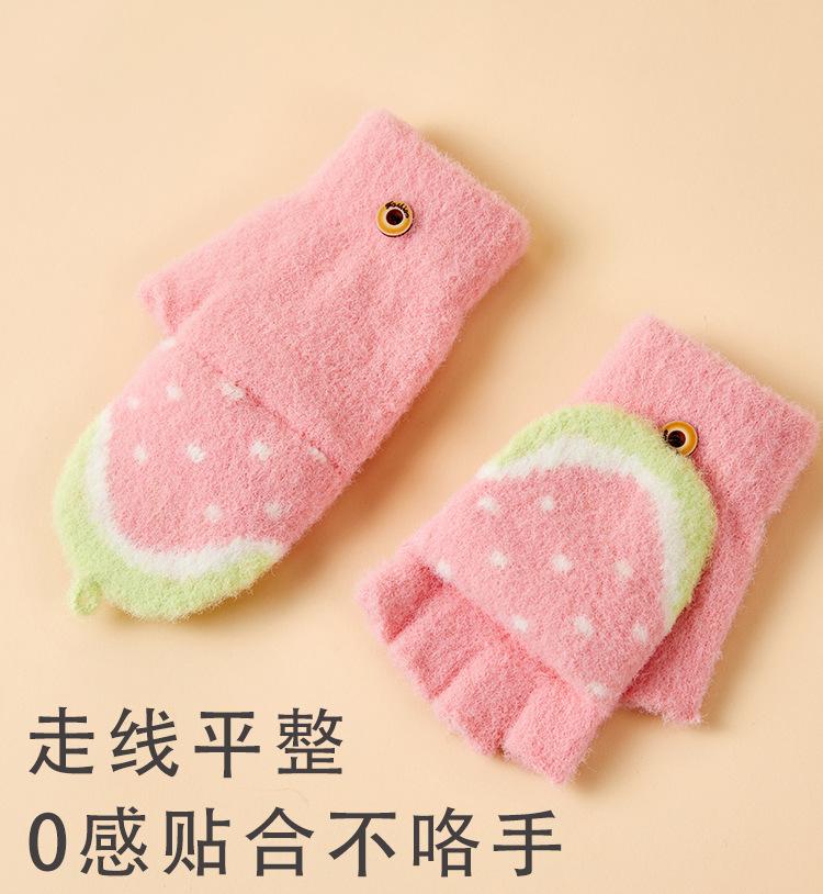 2025 Nuevos Guantes de Punto Cálidos de Otoño e Invierno de Dibujos Animados al por Mayor Más Terciopelo a Prueba de Frío Guantes de Medio Dedo para Hombres, Mujeres y Niños