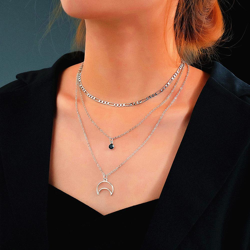 Collar con colgante de diamantes con borde negro y aleación vintage de estilo europeo y americano, cadena multicapa para clavícula, joyería al por mayor