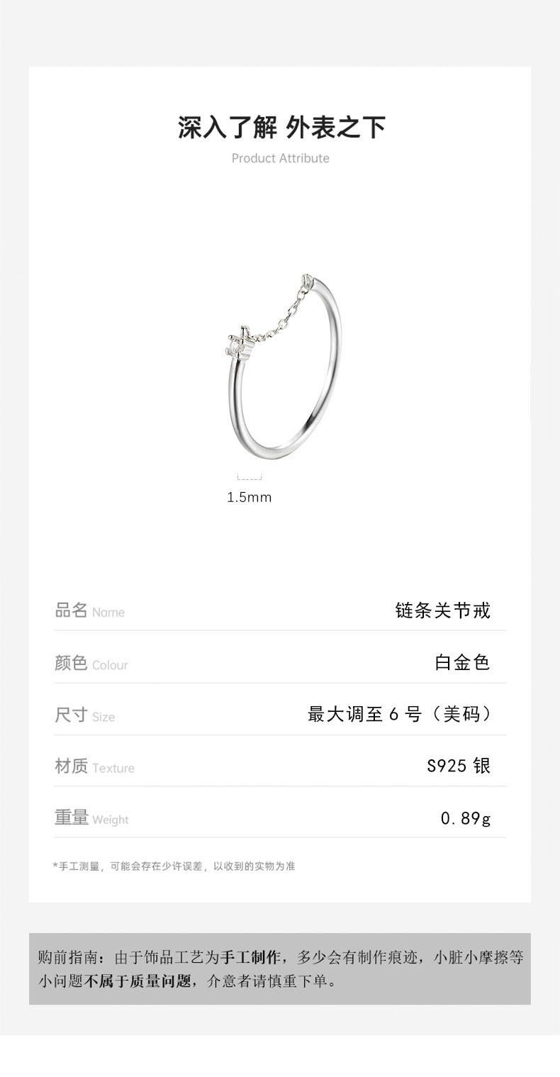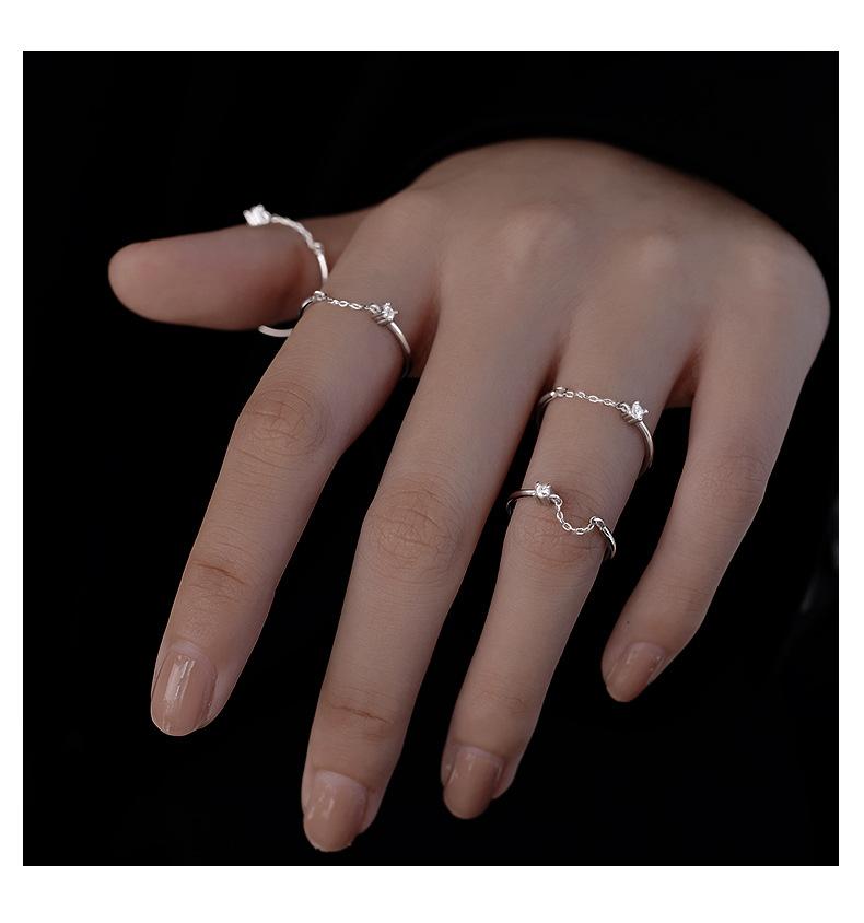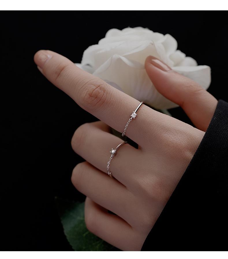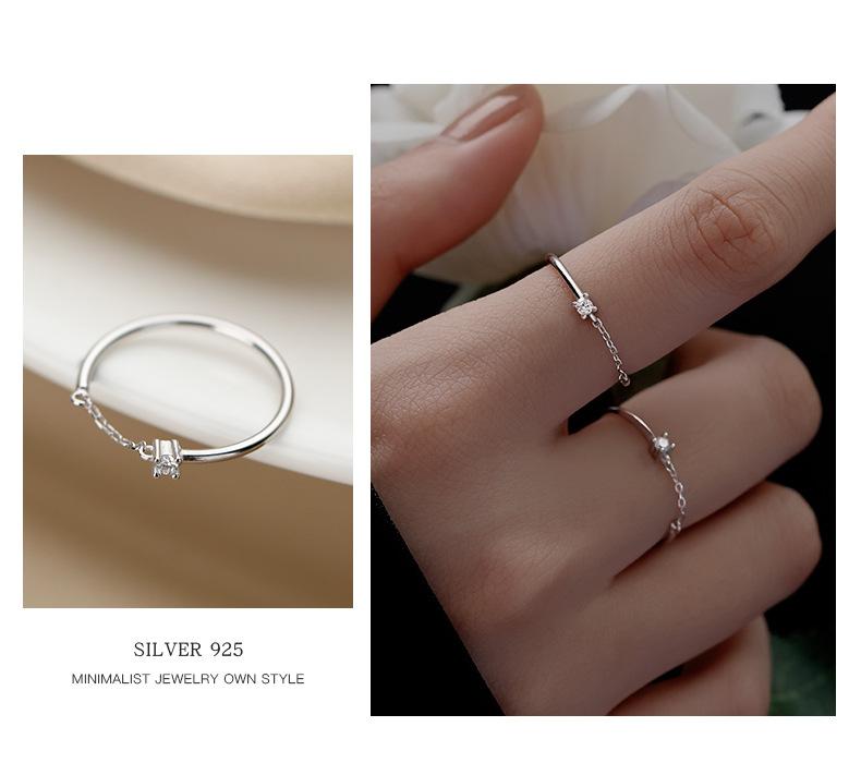 Anillo de cadena de plata esterlina s925 para mujer, diseño de nicho, estilo frío, personalidad, simple, ajustable, anillo liso, anillo de unión.