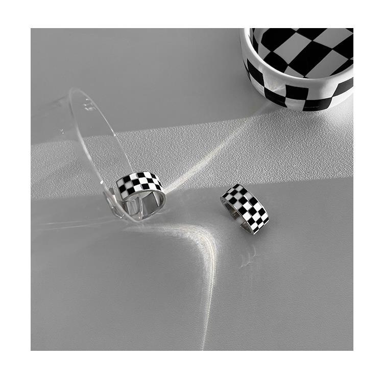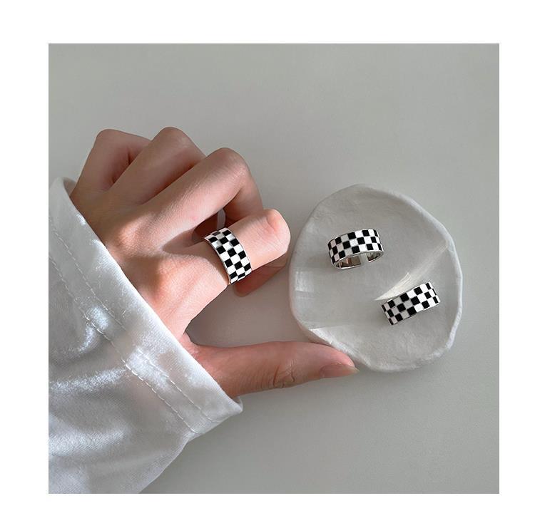 Anillo de tablero de ajedrez blanco y negro Diseño nicho Simple Moda Elegante Estilo frío Anillo de alta gama Estilo Ins