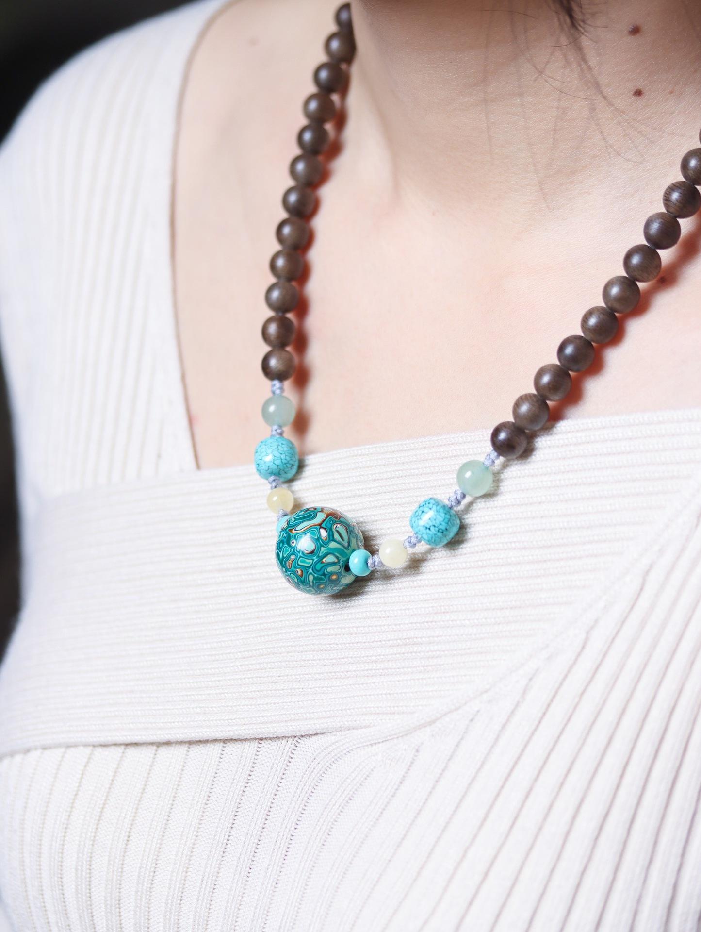 Collar de clavícula con suéter sumergido Qi Nan de madera de agar de Kalimantan, joyería para hombres y mujeres, estilo étnico retro, accesorios de bricolaje