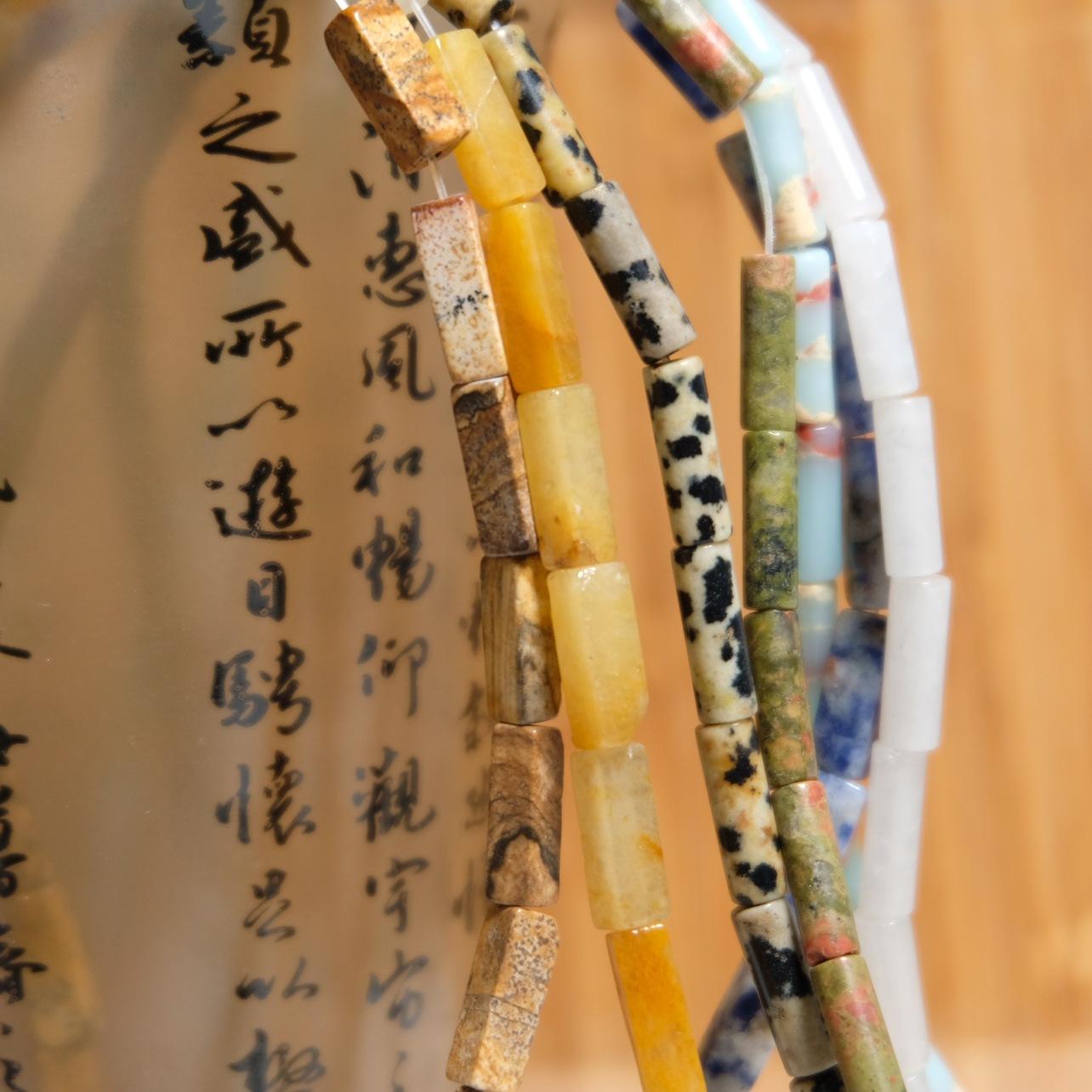 Collar y pulsera de cuentas de piedra con imagen china, rectangular, retro, cilíndrico, con nicho original de ágata china