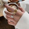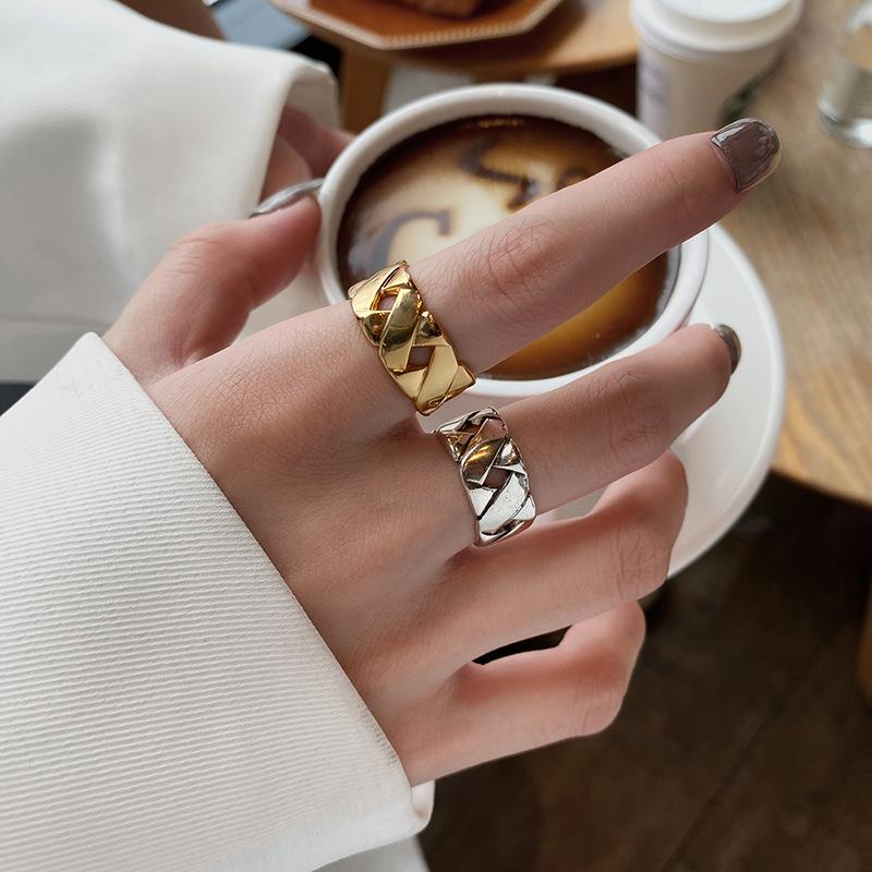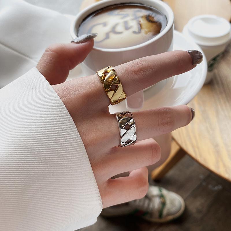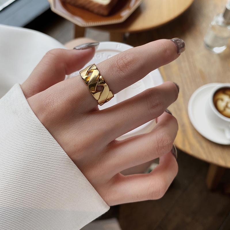Anillo trenzado dorado exagerado estilo hip hop para niña, estilo europeo y americano, con apertura para el dedo índice, accesorios.