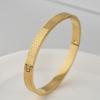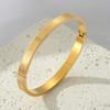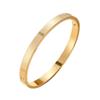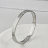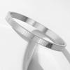 Fabricantes de pulseras de acero de titanio al por mayor, pulsera ajustable abierta en forma de C, pulsera femenina de acero inoxidable con logotipo de texto grabado.