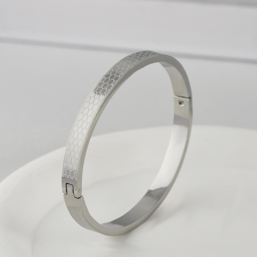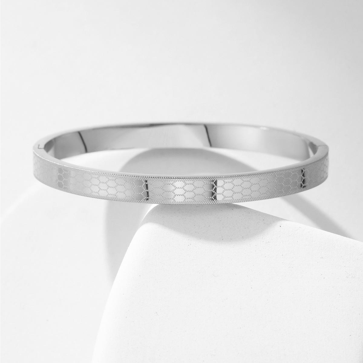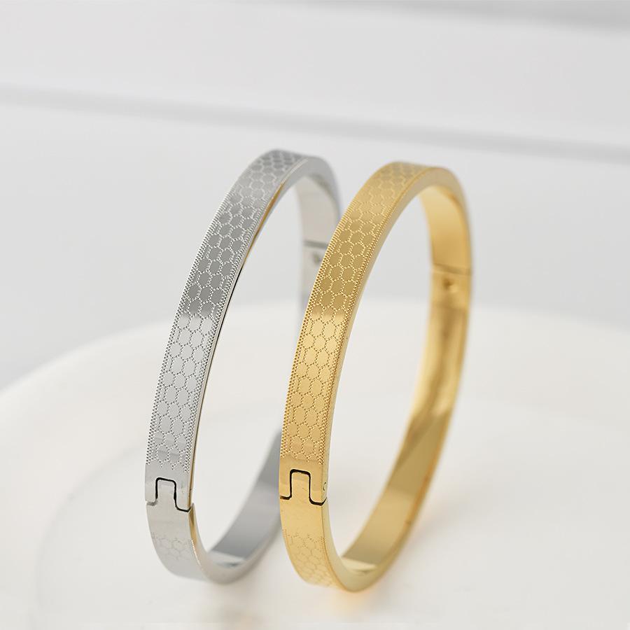 Nueva pulsera de acero de titanio transfronteriza, creativa, simple, con textura de rejilla y hebilla, pulsera de pareja, joyería de acero inoxidable