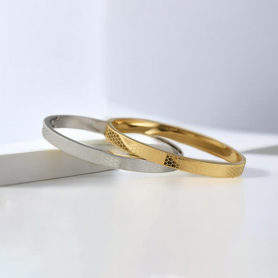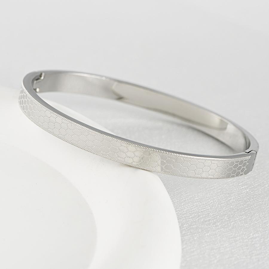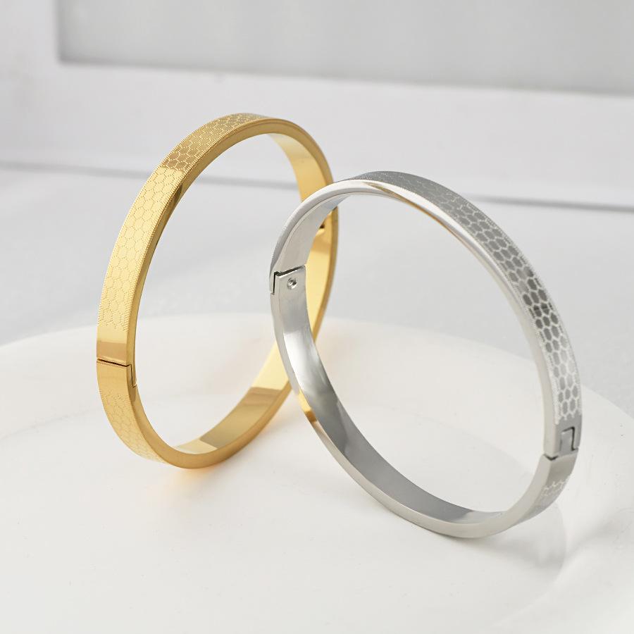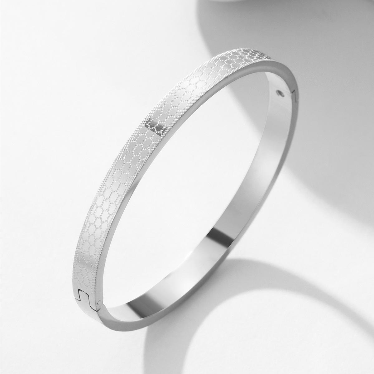 Nueva pulsera de acero de titanio transfronteriza, creativa, simple, con textura de rejilla y hebilla, pulsera de pareja, joyería de acero inoxidable