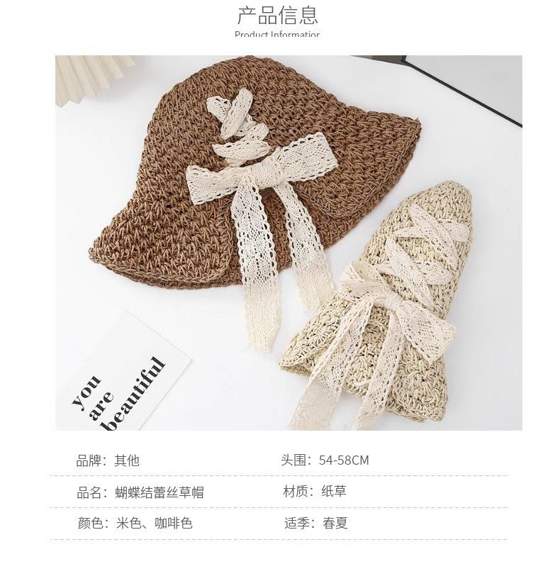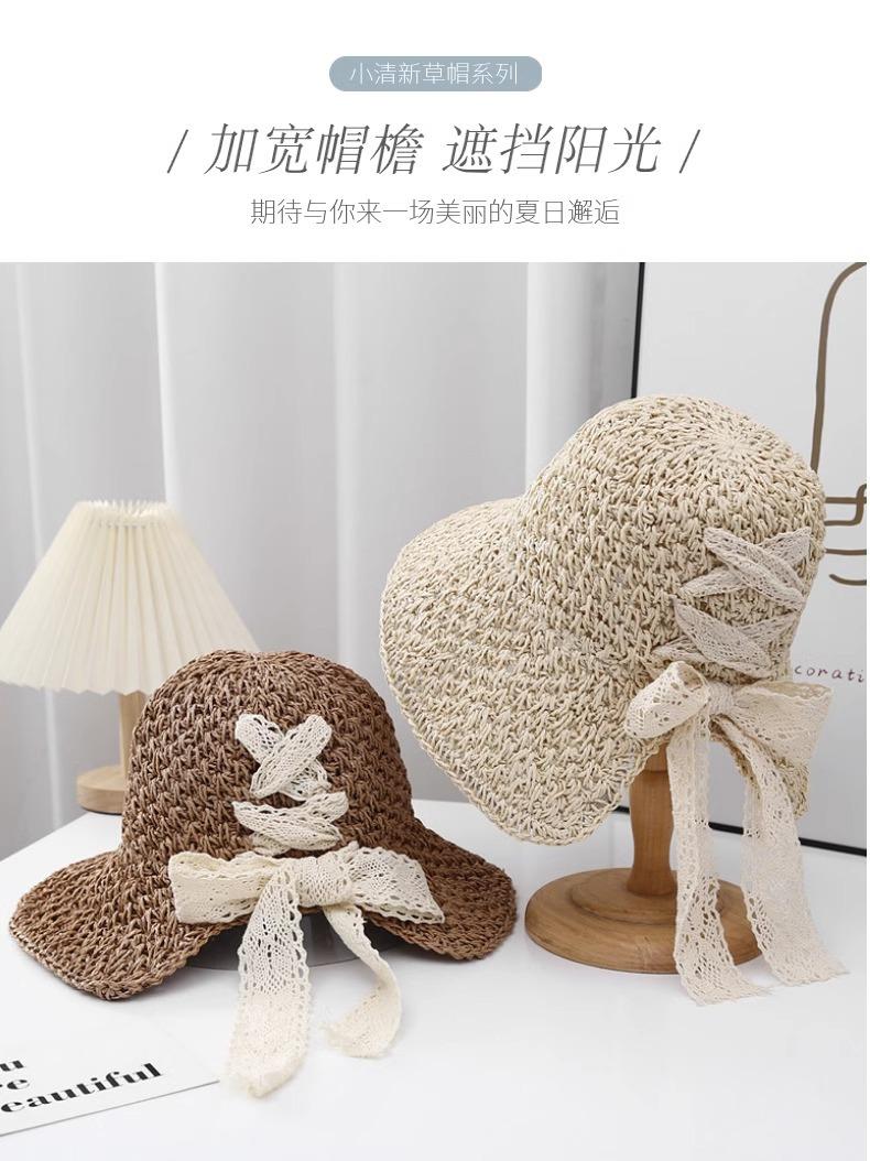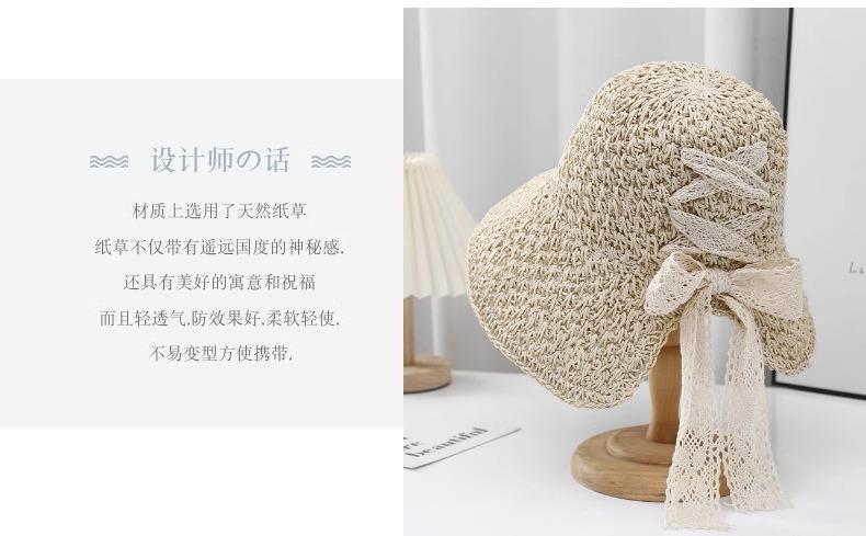 Sombrero de playa de verano con correa de encaje japonés para mujer, sombrero de paja de hadas para viajes de celebridad en línea, sombrero para el sol plegable, marea