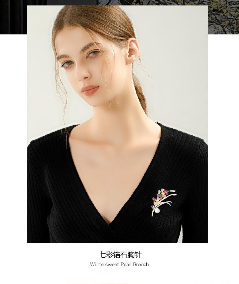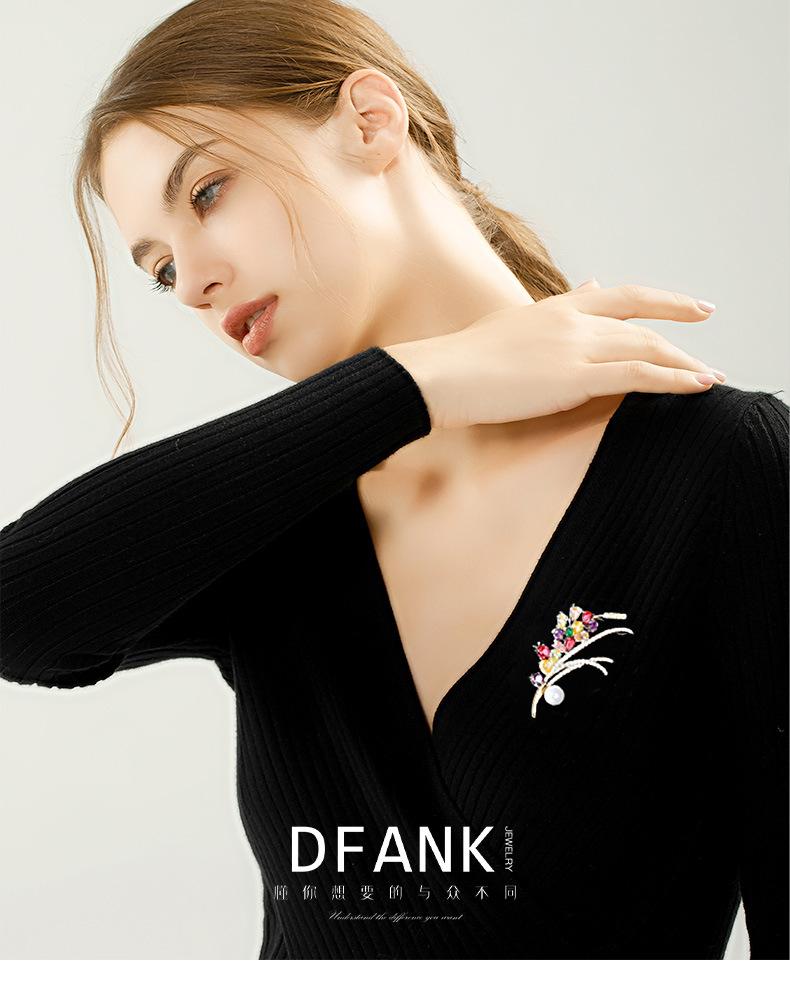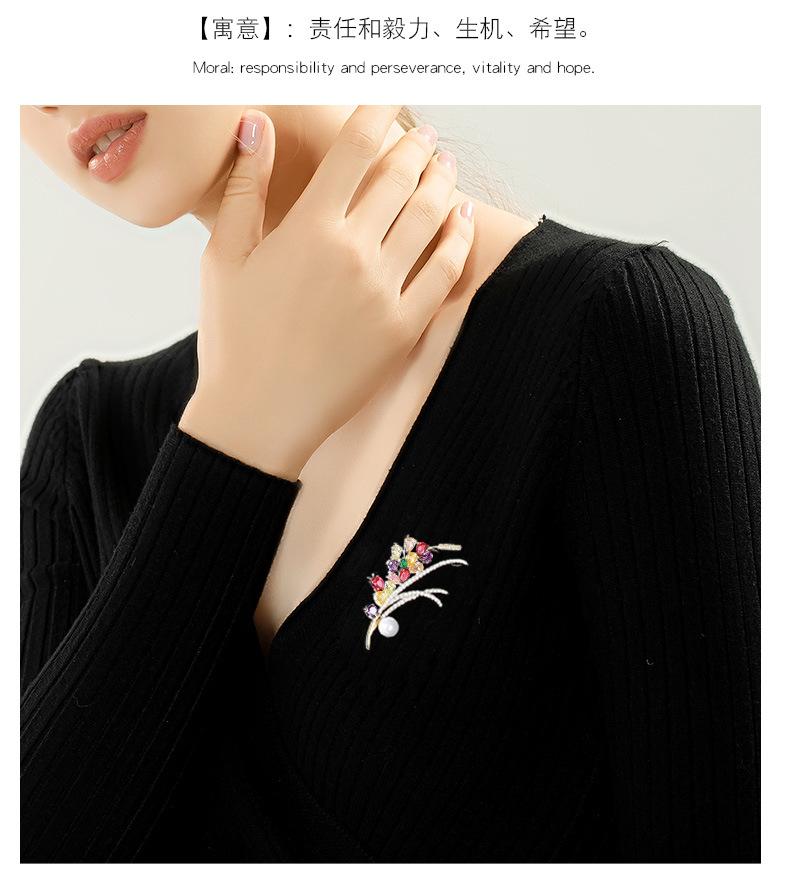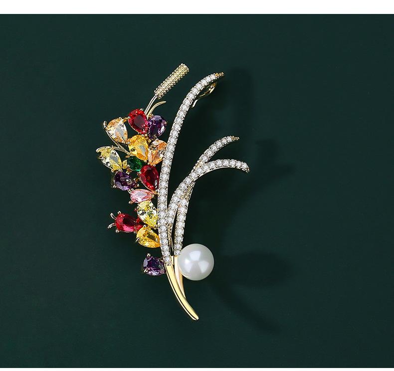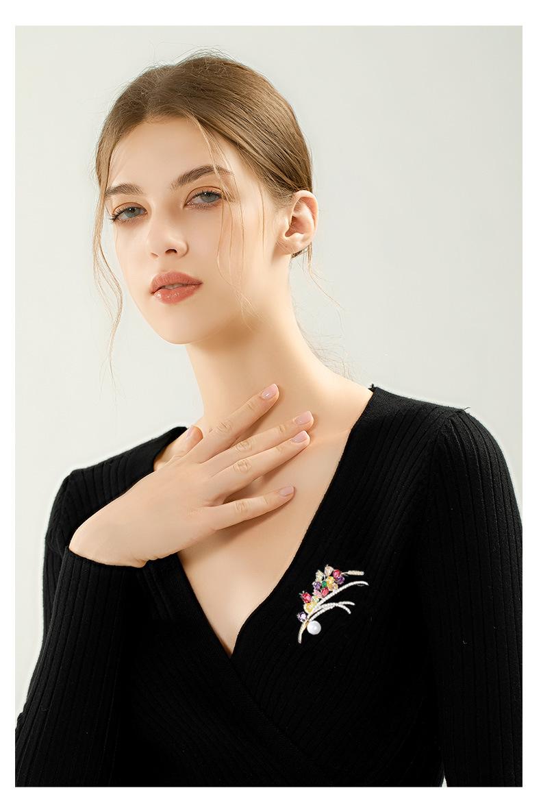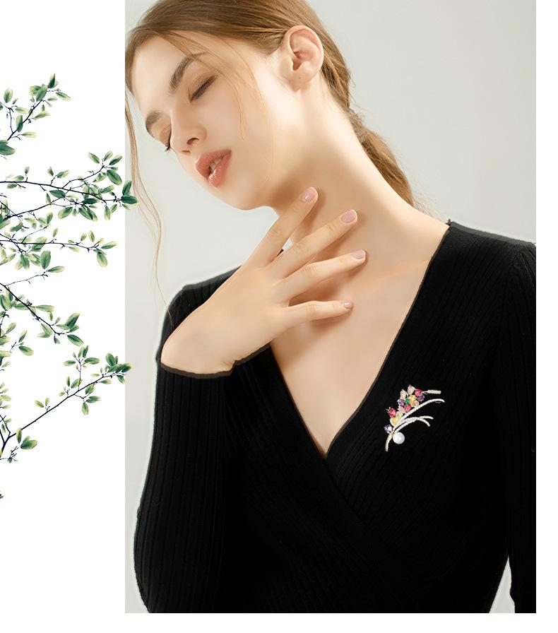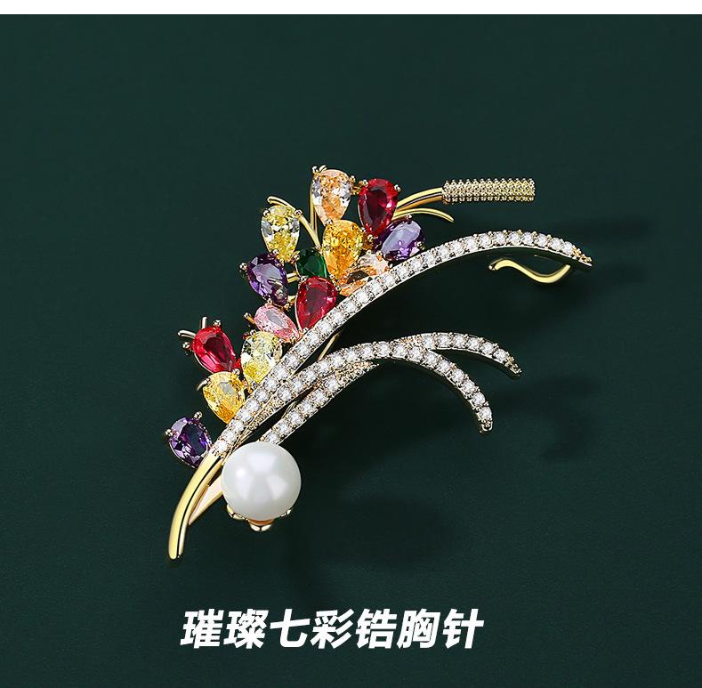 Broche de mujer de alta gama con temperamento, botón anti-luz, accesorio de ropa, broche de ramillete de circonita de colores perlados, venta al por mayor