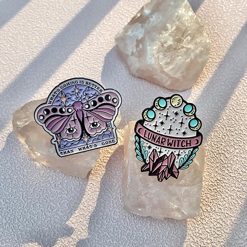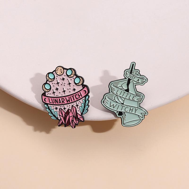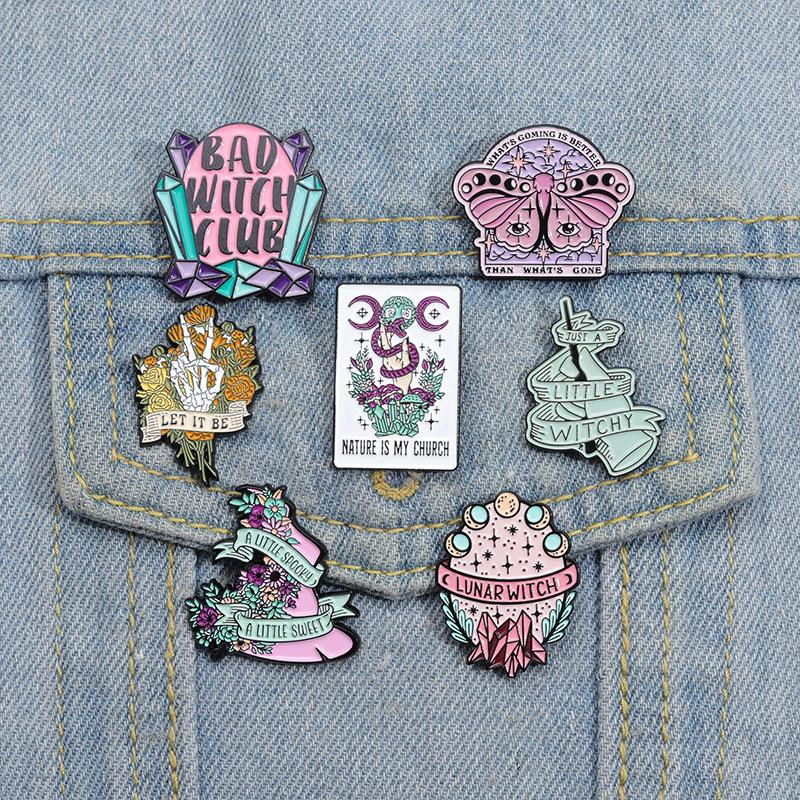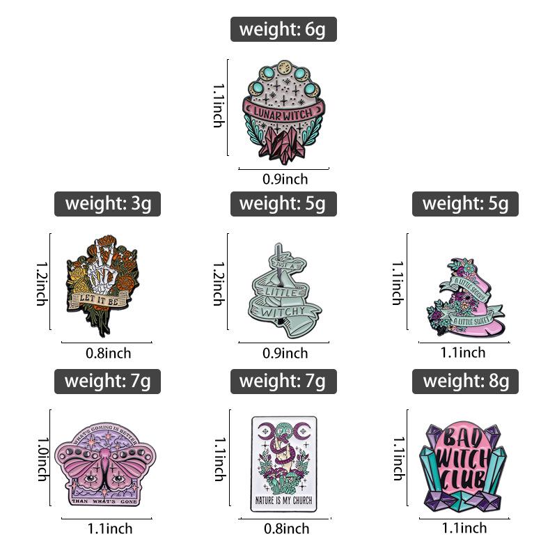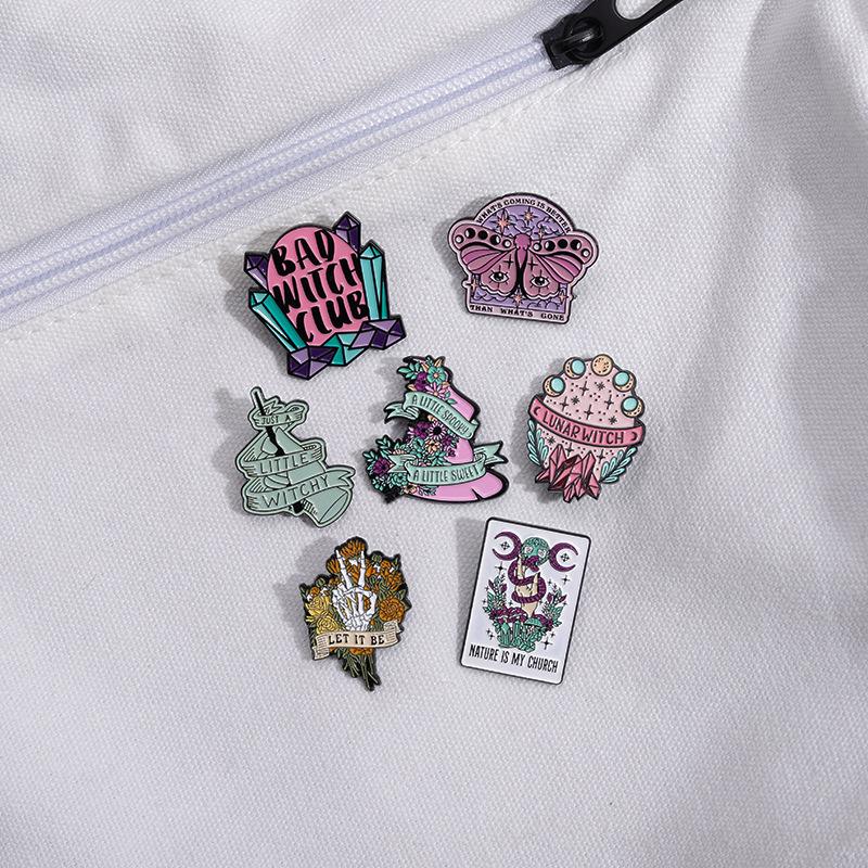 Broche multielemento con insignia de la serie de calaveras y sombrero de mago de estilo oscuro nuevo europeo y americano con letras irregulares