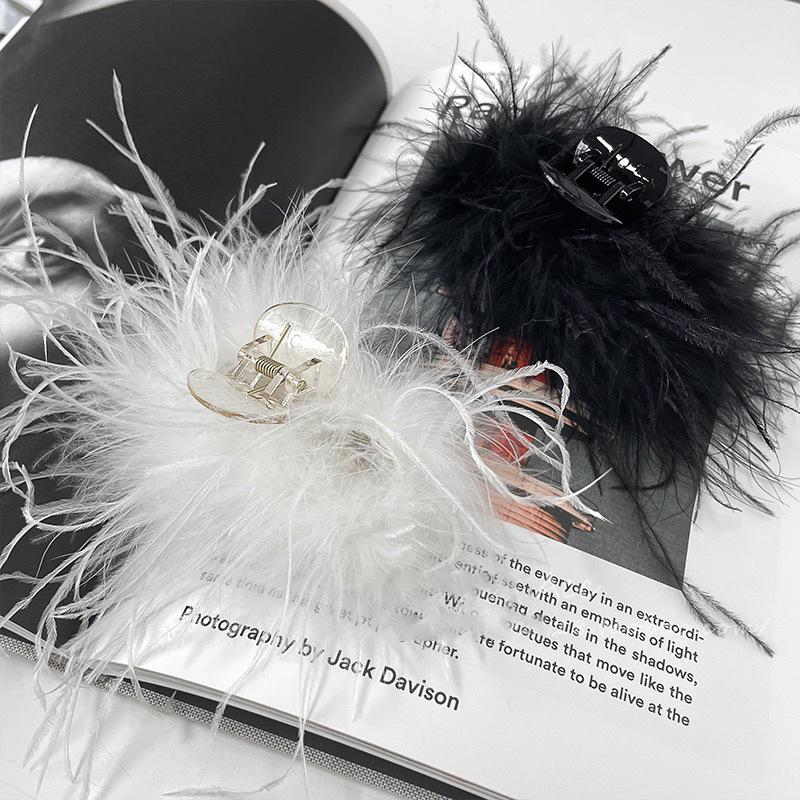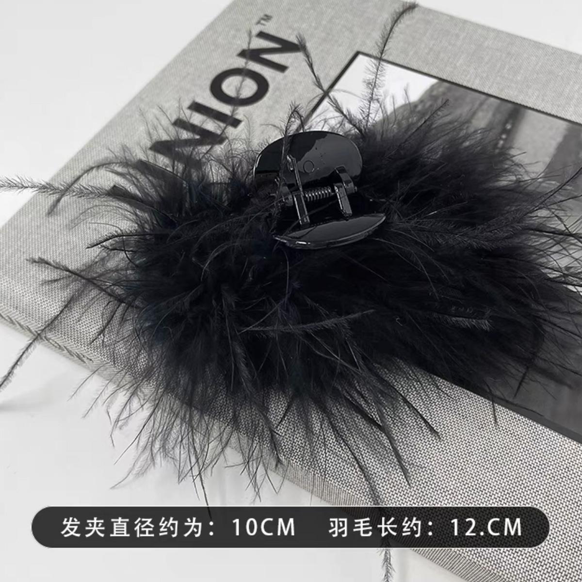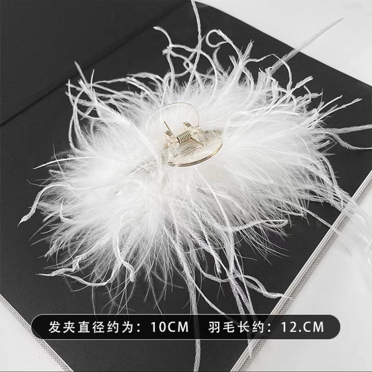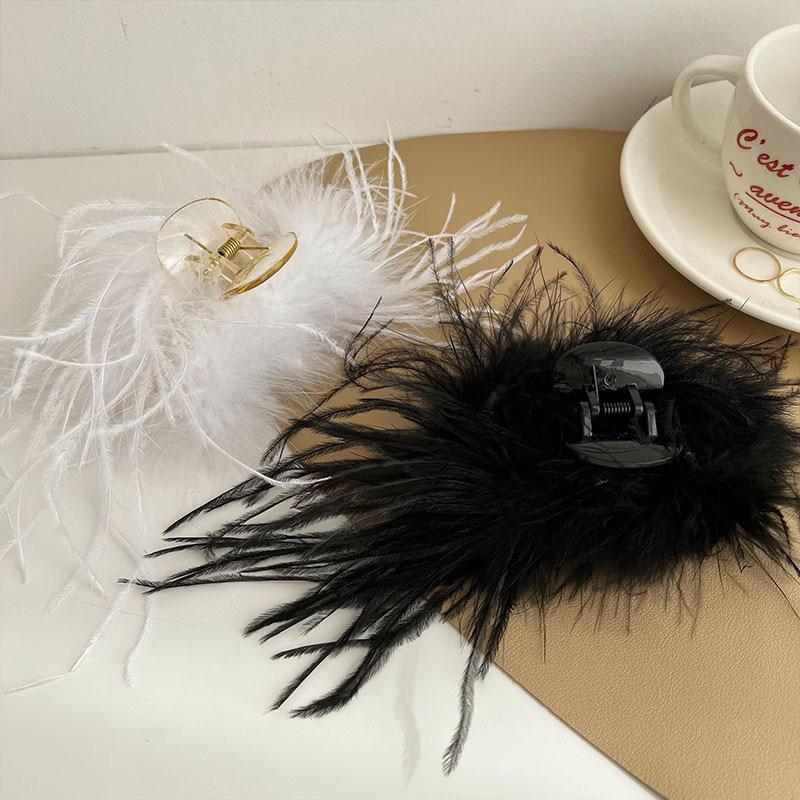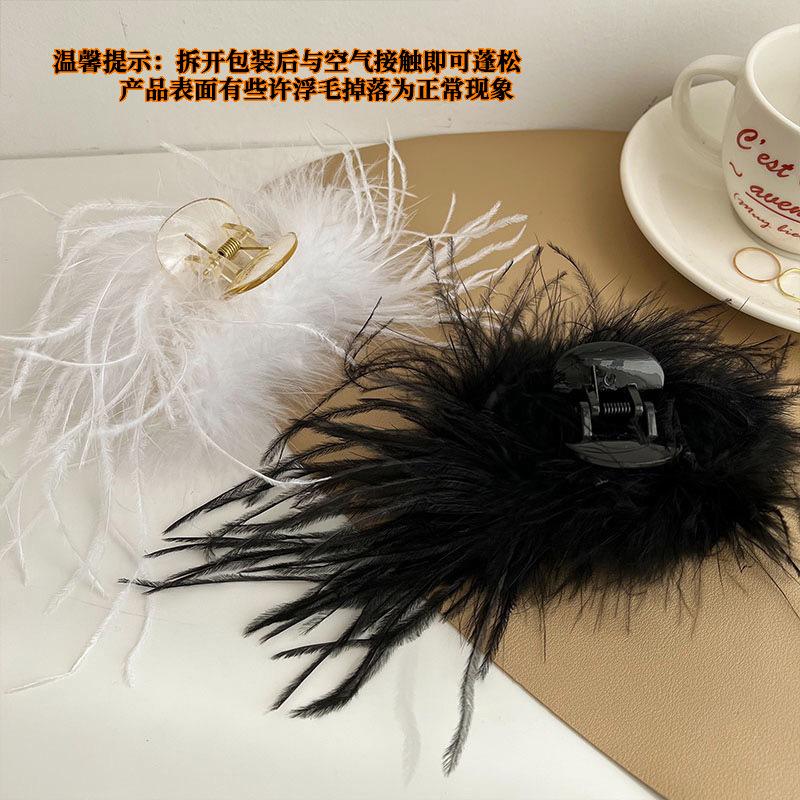 Novedad 2023: pinza de plumas con forma de pluma, pinza para el pelo de avestruz con sensación avanzada, pinza de tiburón para la cabeza, accesorios para el cabello de moda que combinan con todo.