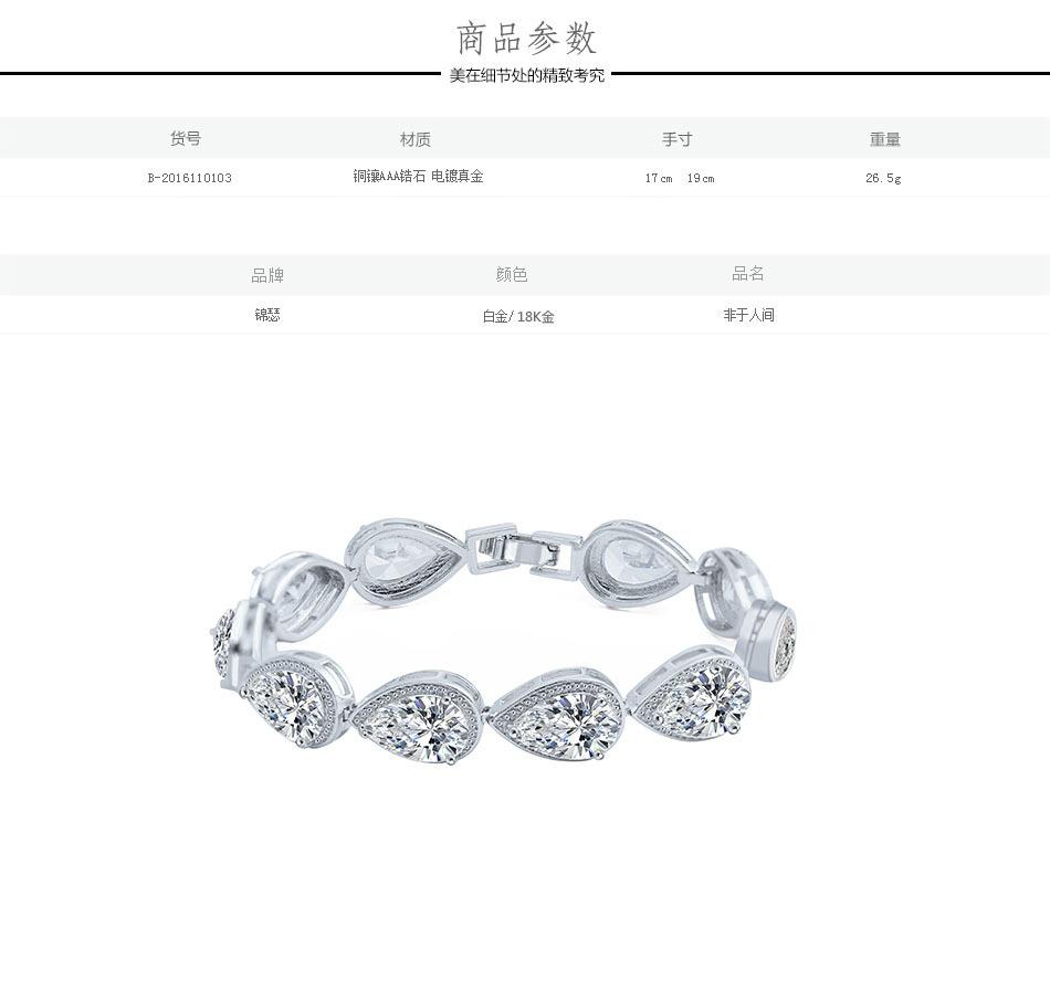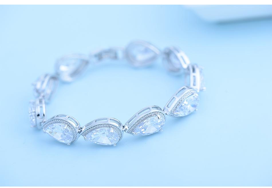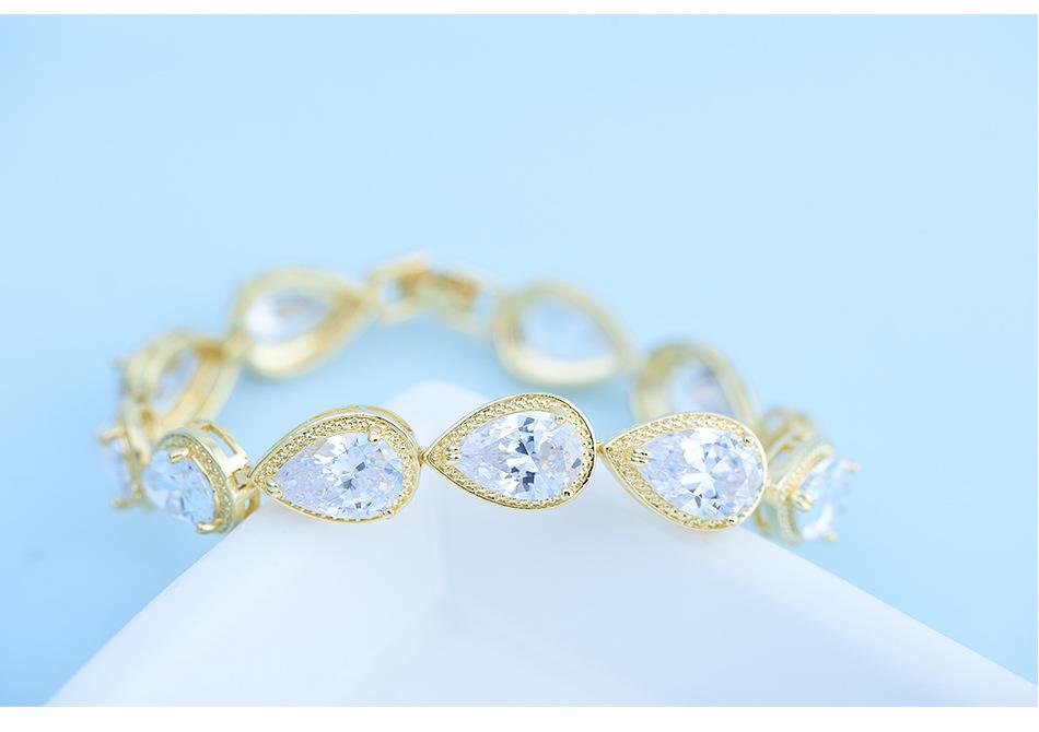 Pulsera Jinse de Cristal Blanco con Gota de Agua, Pulsera de Latón con Zirconias, Moda Simple Europea y Americana, Joyería de Mano para Mujer para el Día a Día