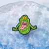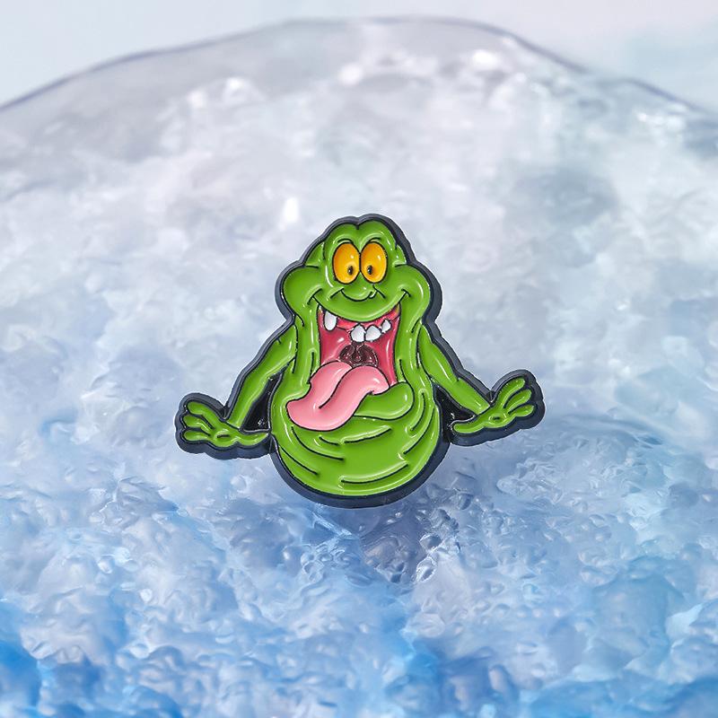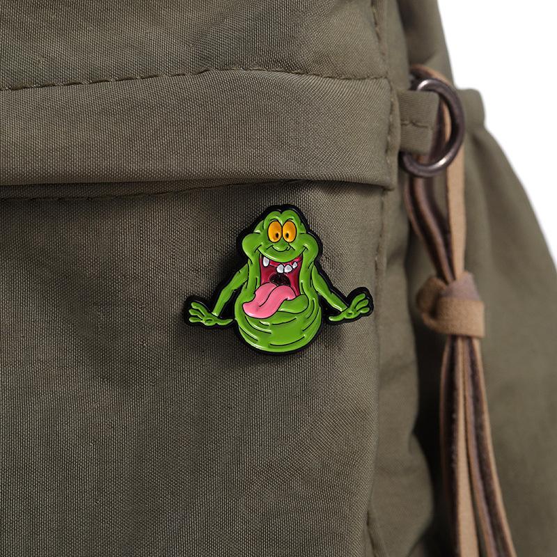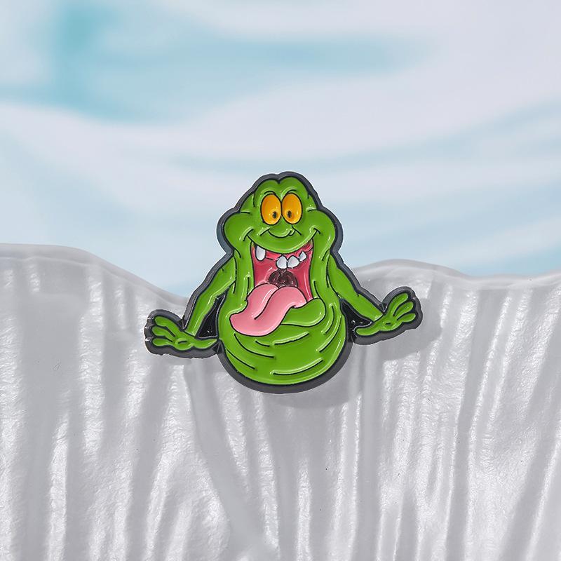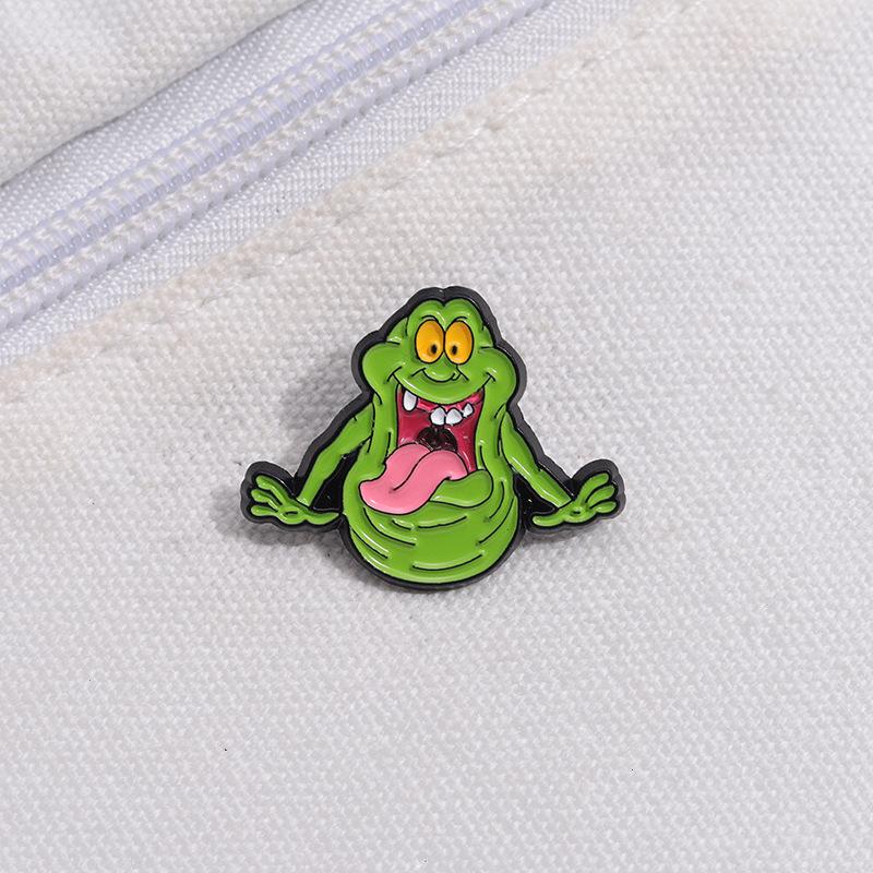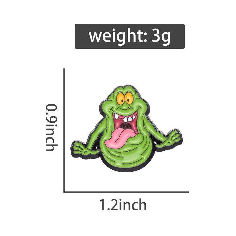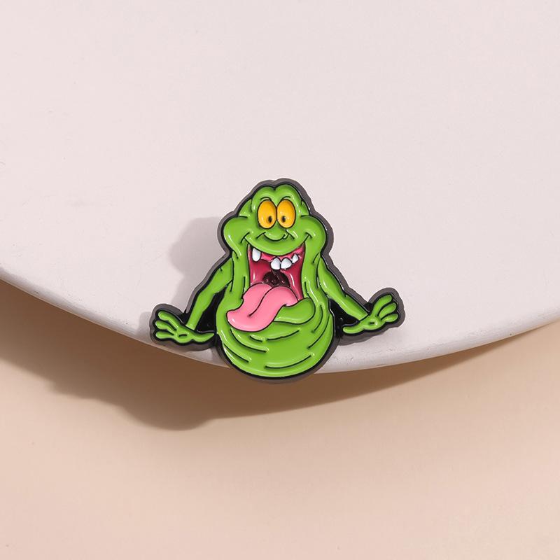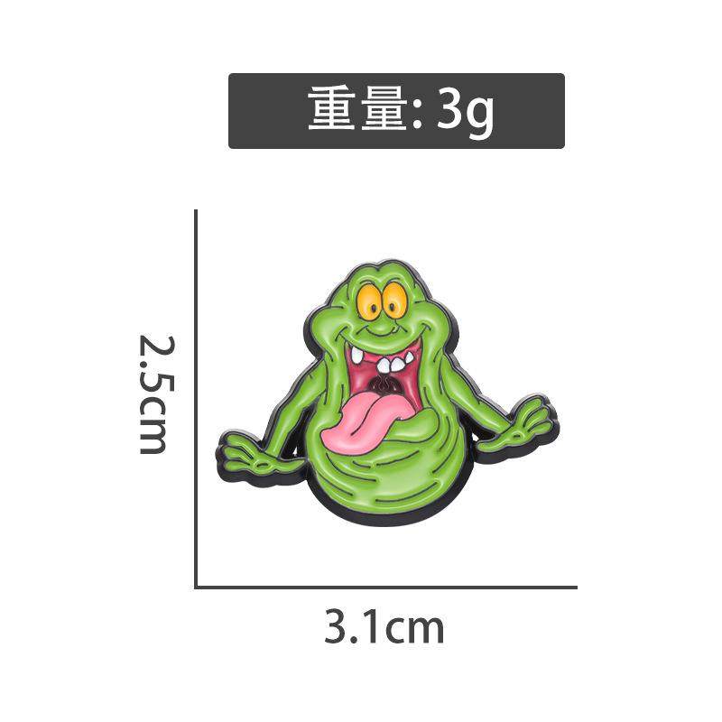 Accesorios periféricos de cine y televisión europeos y americanos, divertida insignia de metal con forma de monstruo verde, broche decorativo para bolso de ropa