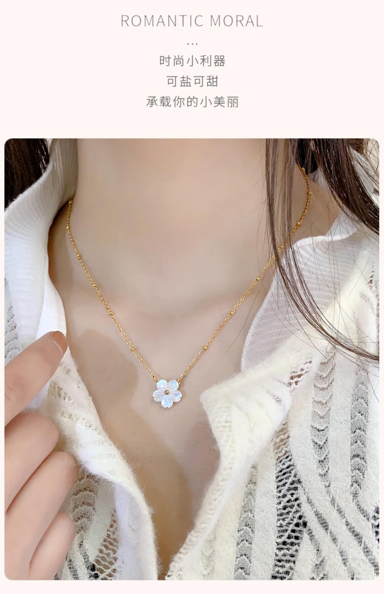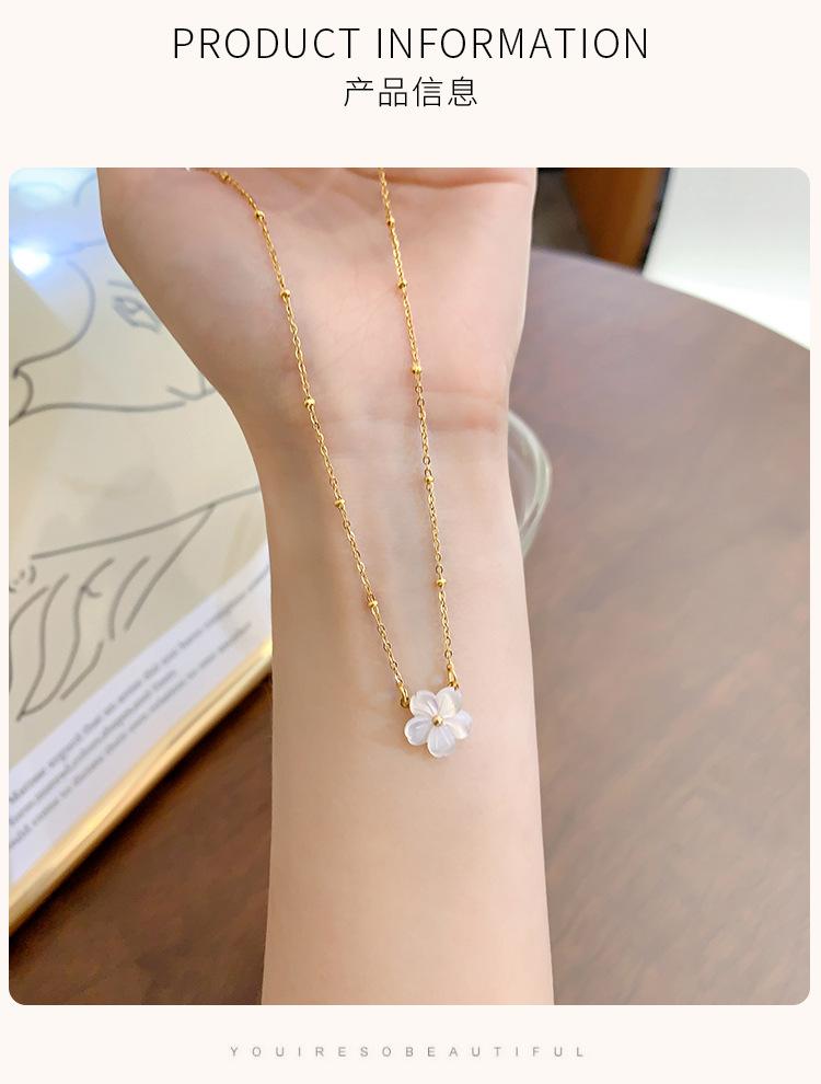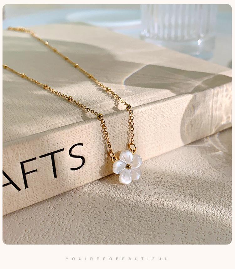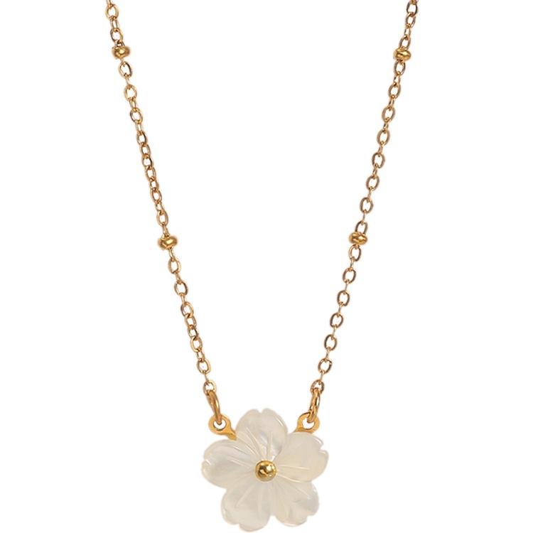Collar de flores de concha Qixi 2023, nuevo, de lujo, ligero, nicho, acero de titanio, cadena de clavícula de oro de 18 quilates, para mujer, de alto sentido