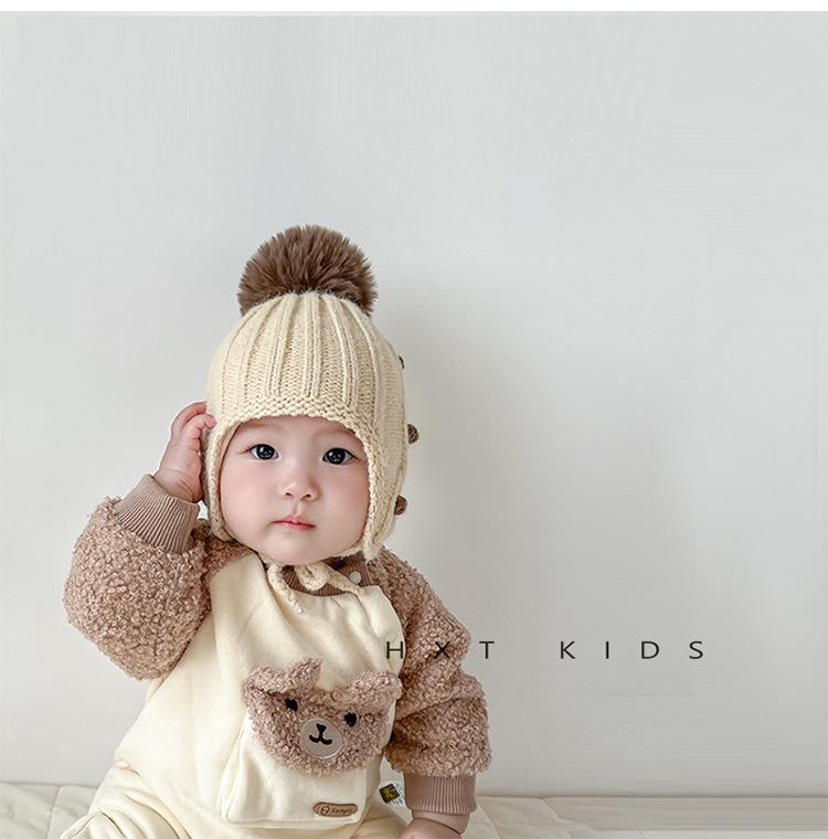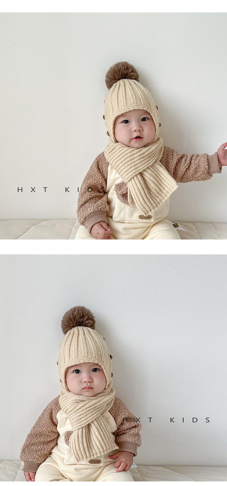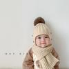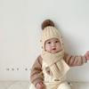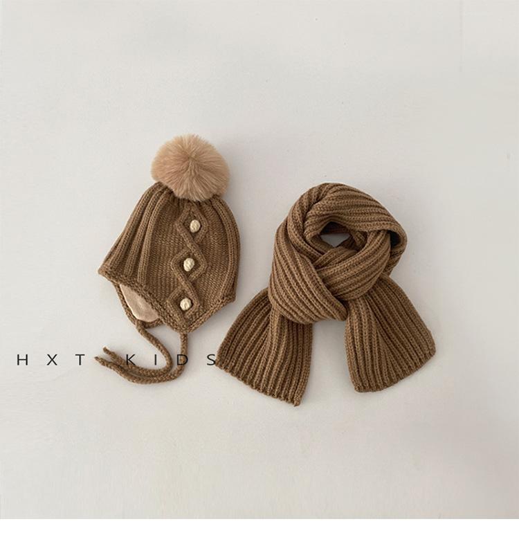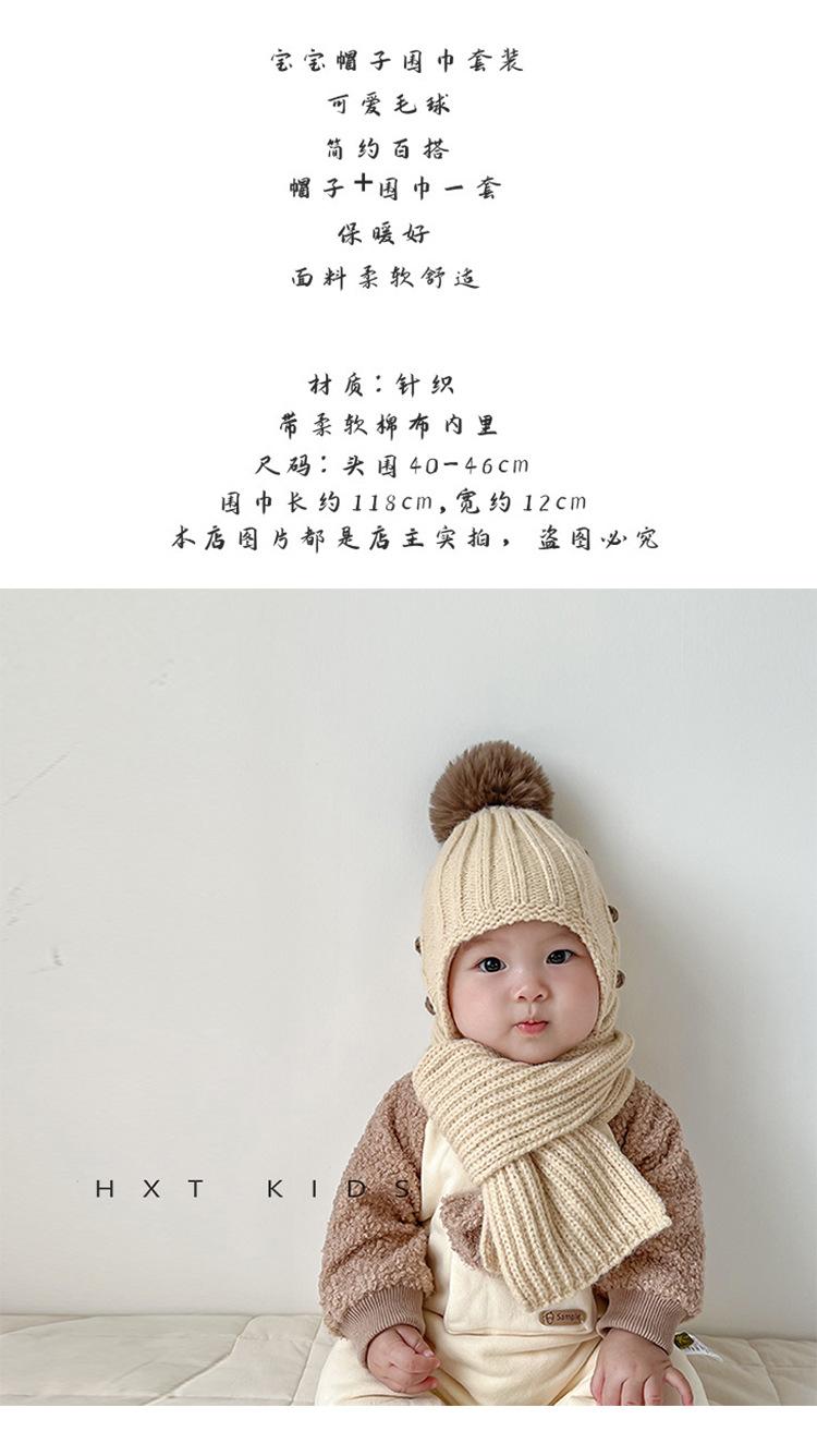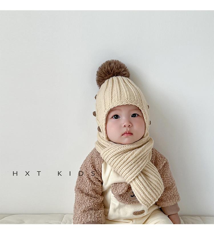 Set de dos piezas de gorro y bufanda para bebé, estilo occidental de otoño e invierno, con bola de pelo, interior grueso, gorro con orejeras de punto para bebé, traje de invierno