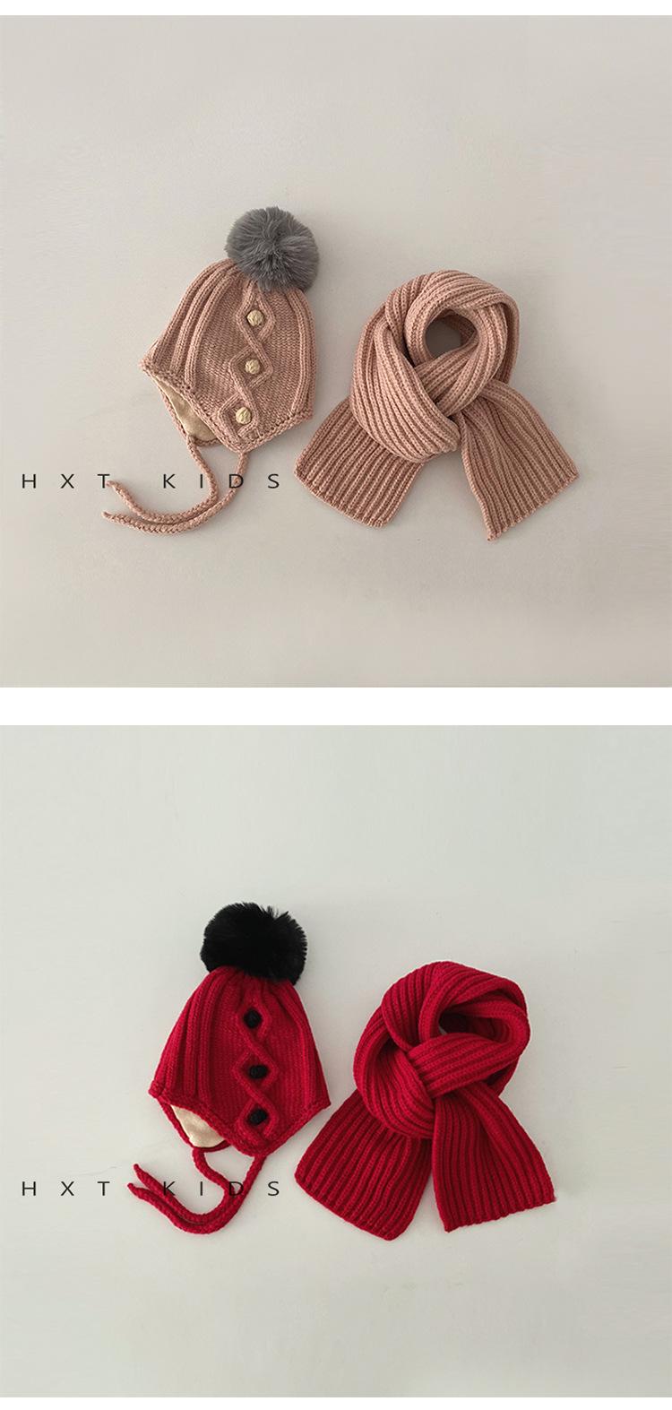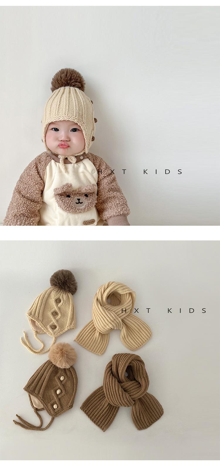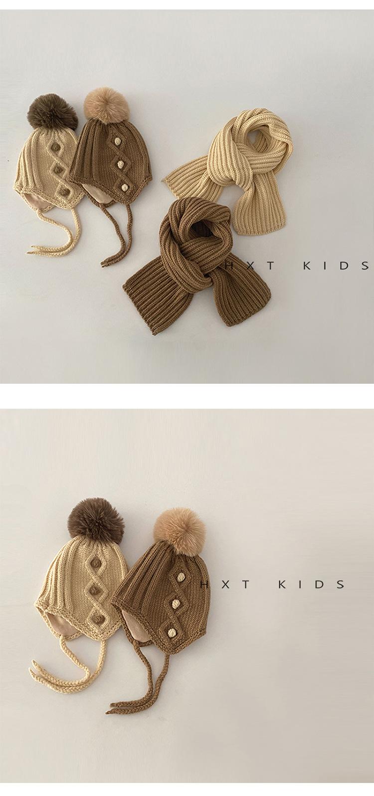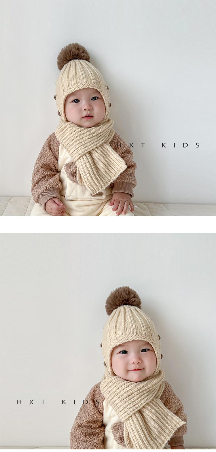 Set de dos piezas de gorro y bufanda para bebé, estilo occidental de otoño e invierno, con bola de pelo, interior grueso, gorro con orejeras de punto para bebé, traje de invierno