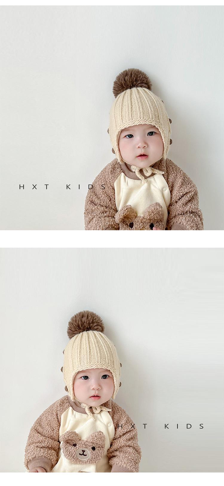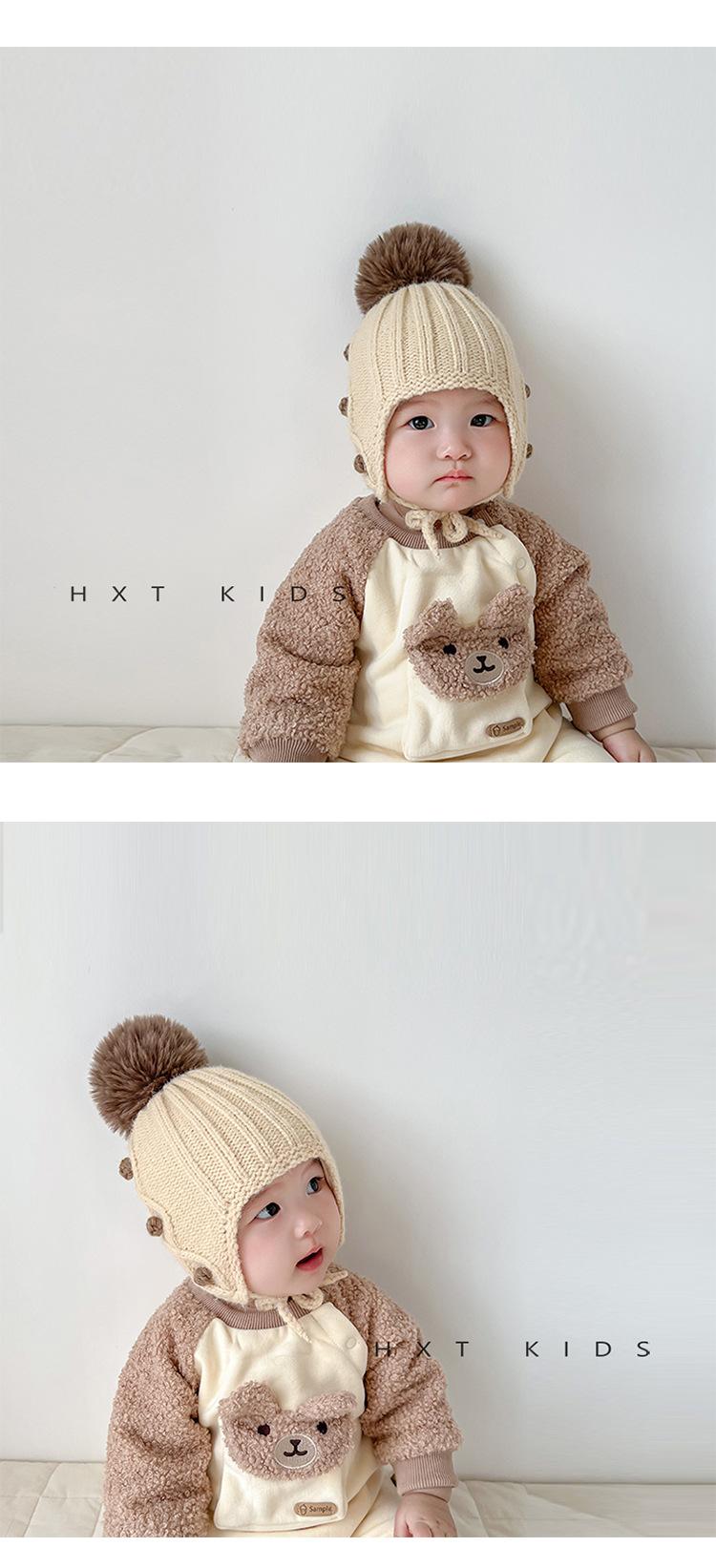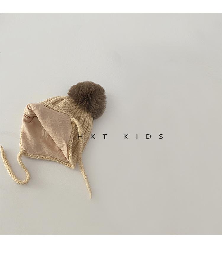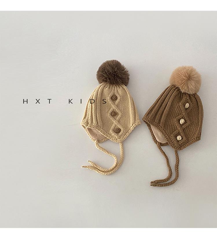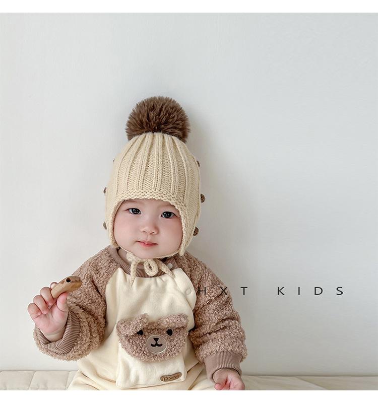 Set de dos piezas de gorro y bufanda para bebé, estilo occidental de otoño e invierno, con bola de pelo, interior grueso, gorro con orejeras de punto para bebé, traje de invierno