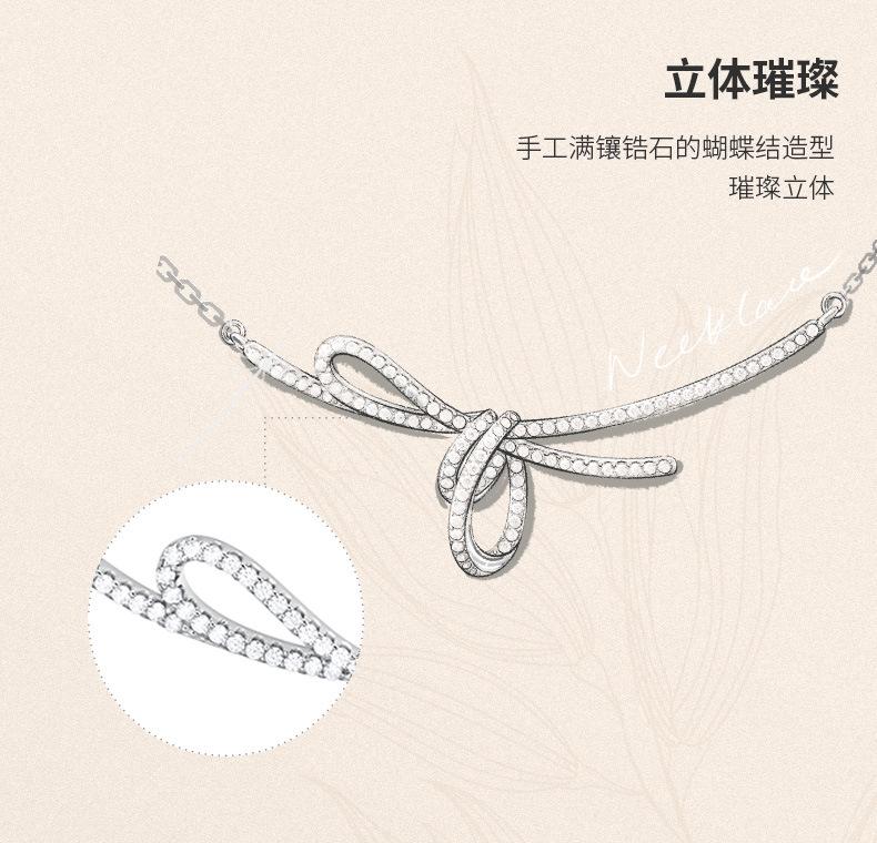Estilo Estrella Celebridad en Línea Venta en Vivo Micro-incrustado Super Flash Diamante de Alto Carbono Collar Nudo de Cinta Lujo Ligero Cadena Clavícula de Cinta para Mujer