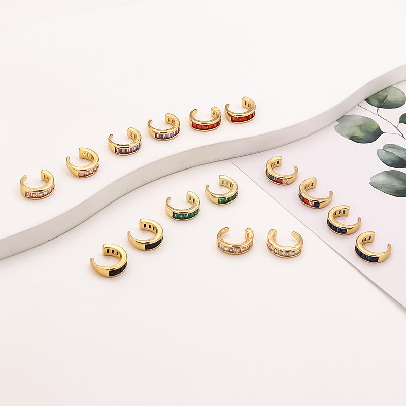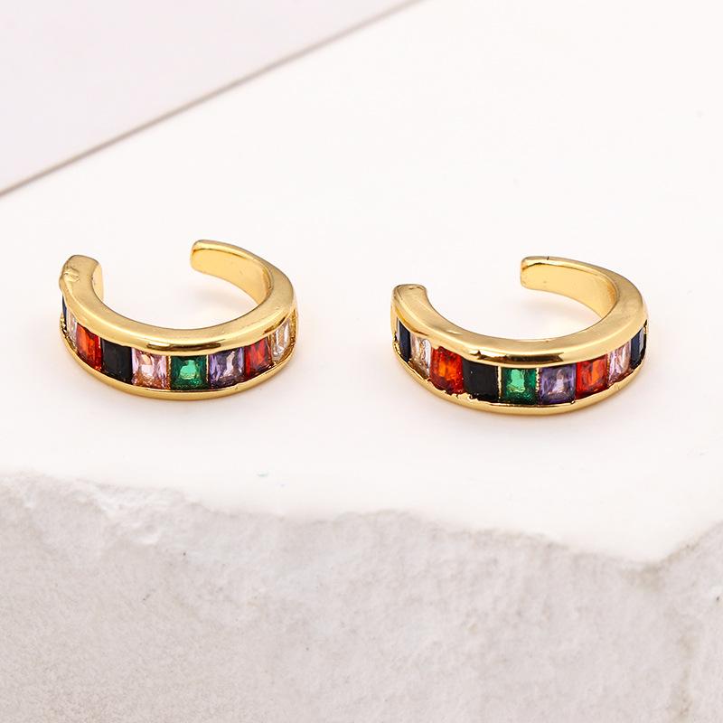 Pendientes de clip de oreja de circonita de colores, sin orificios, con sensación avanzada, para mujer, con diseño de viento frío.