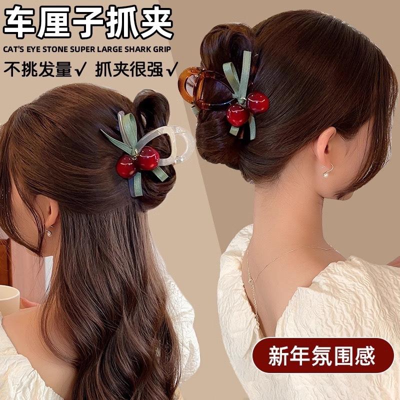 Horquilla elegante con forma de cereza para mujer, estilo nuevo de 2024, con lazo mediano y pinza para la cabeza, con diseño de tiburón, accesorios para el cabello.