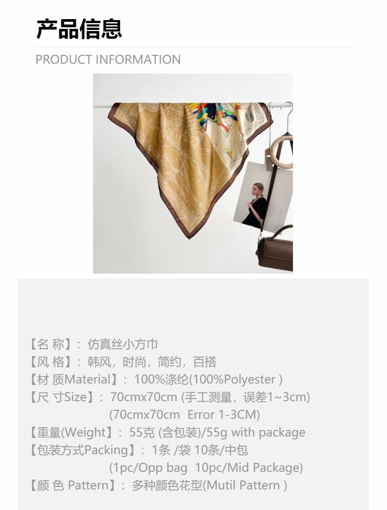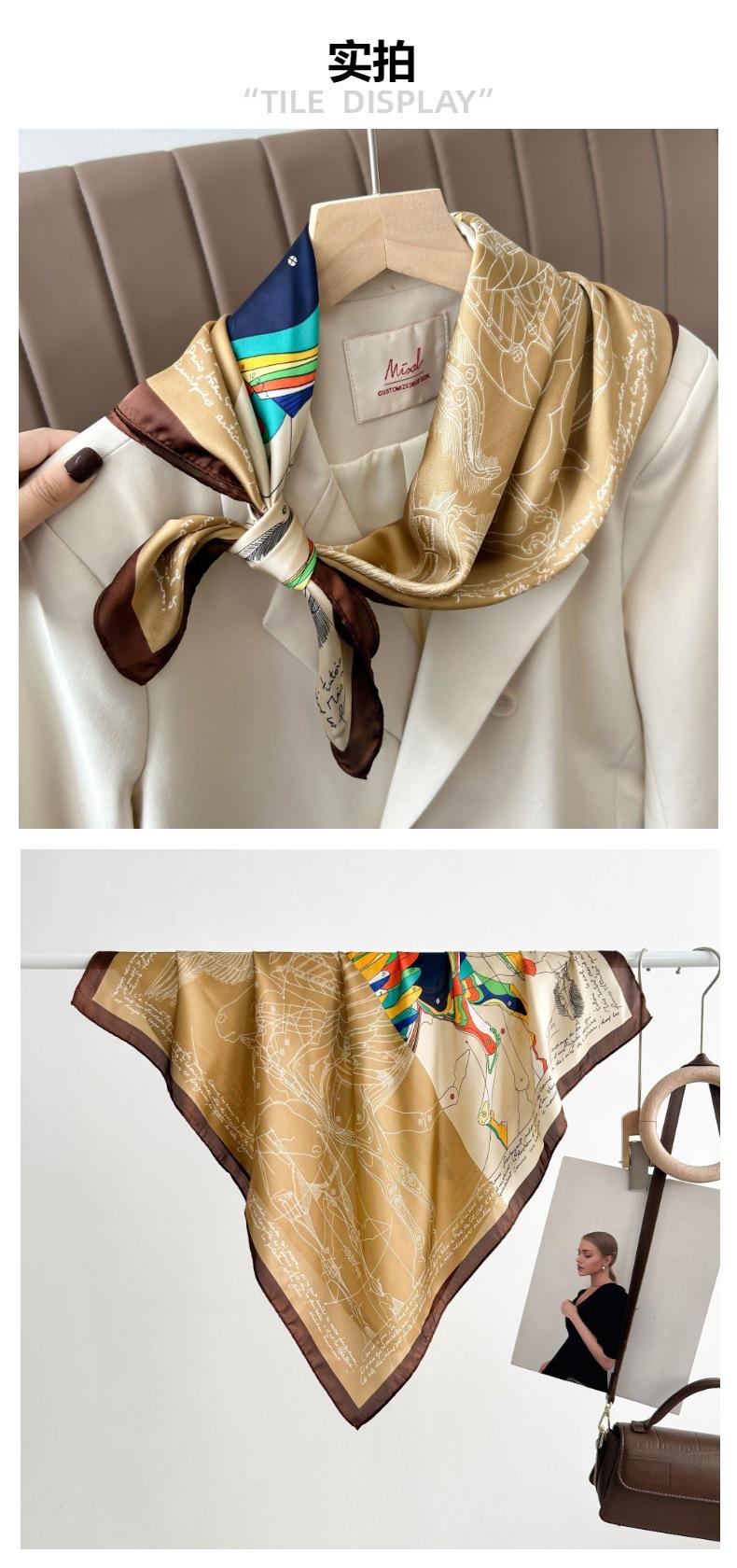 Pañuelo de seda de alta calidad con estampado de primavera y otoño para mujer, bufanda decorativa, banda para el pelo de seda sintética que combina con todo.