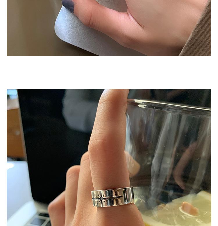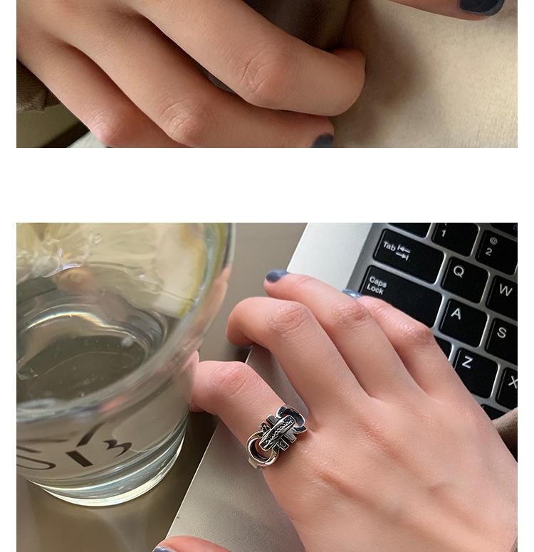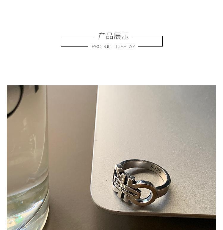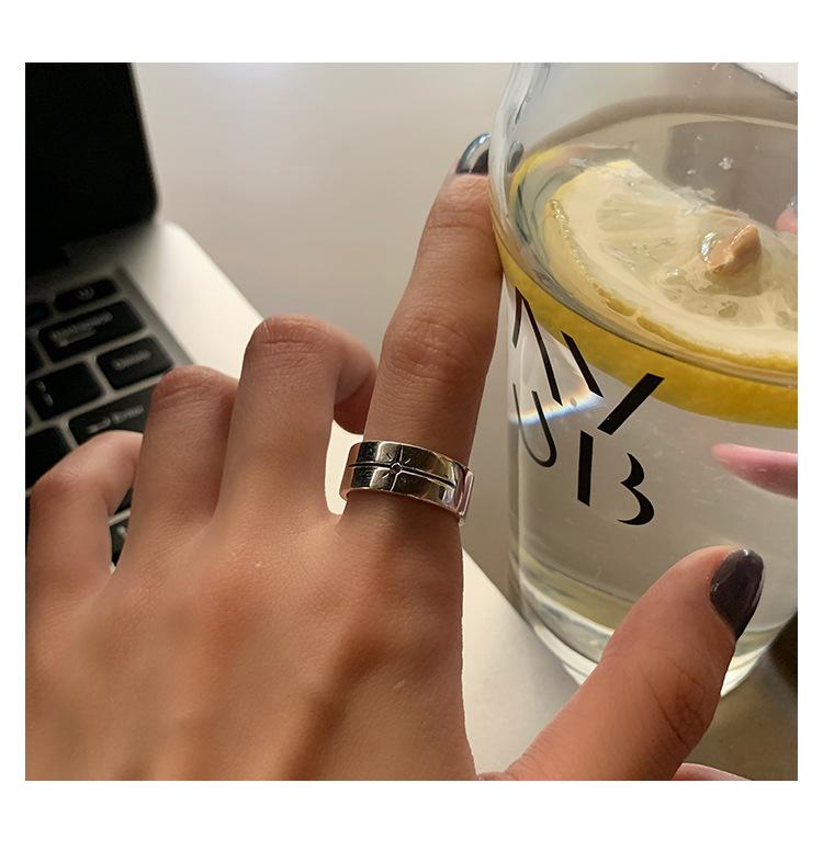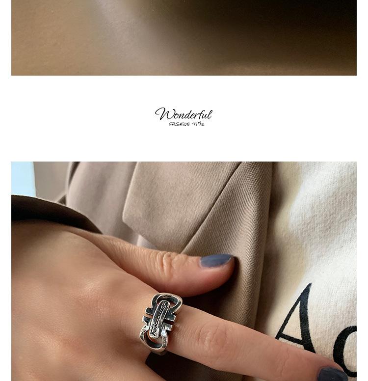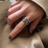 Anillo Hueco de Letras de Plata S925 Japonesa y Coreana para Mujer, Moda Retro, Sol, Meteoro, Anillo Abierto, Hip Hop, Anillo de Dedo, Marea