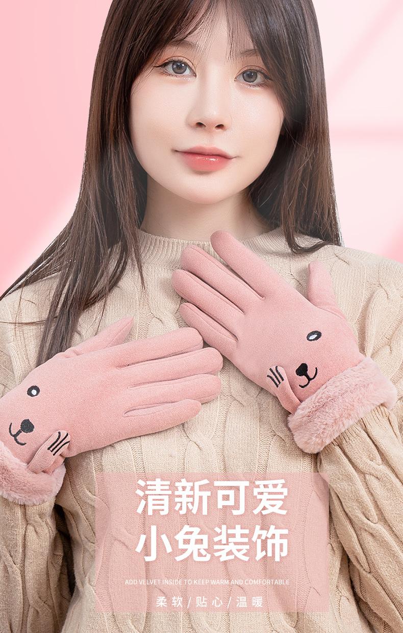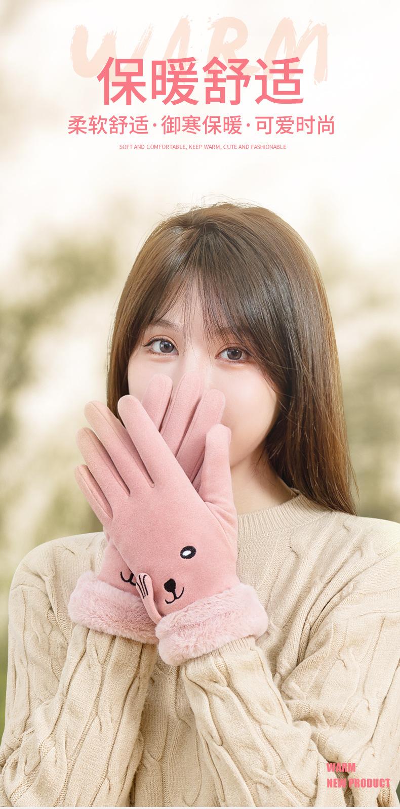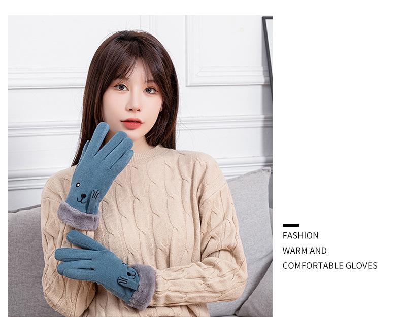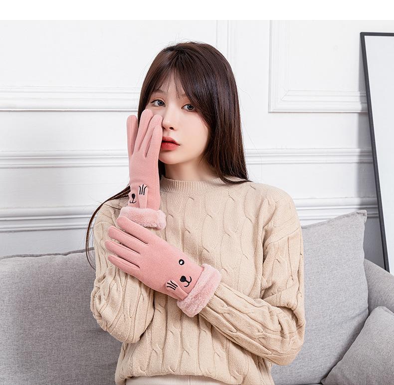 Guantes cálidos de invierno con pantalla táctil, de gran venta transfronteriza, con forro polar resistente al frío y con boca de gamuza de gato para ciclismo, bonitos guantes para mujer