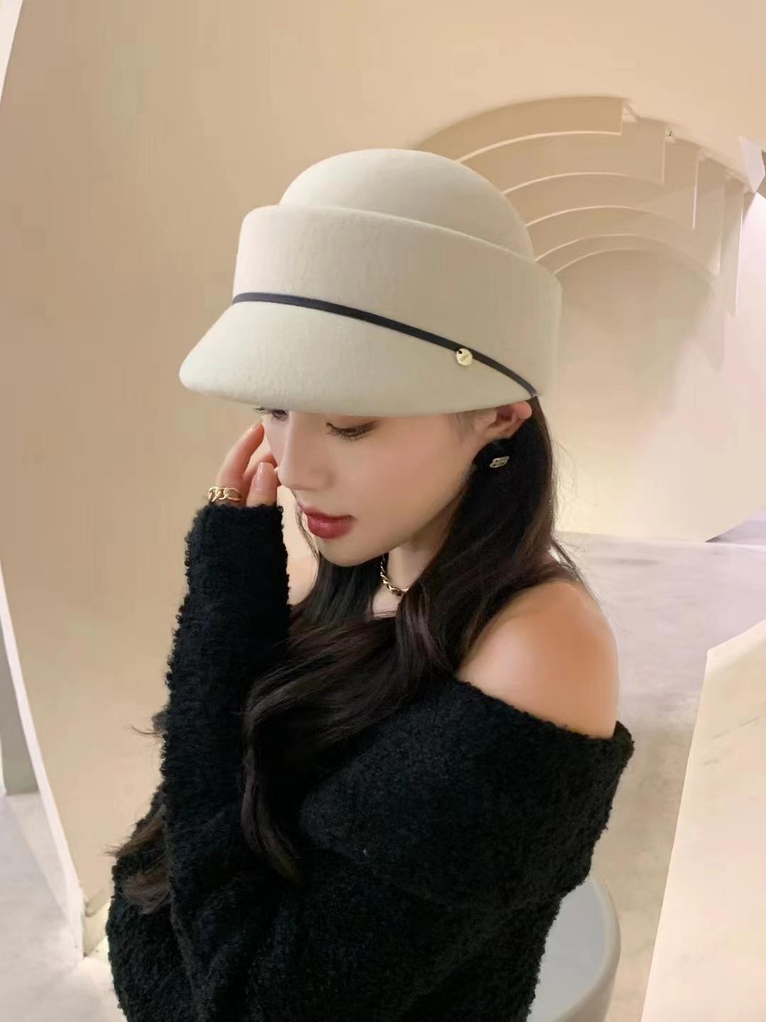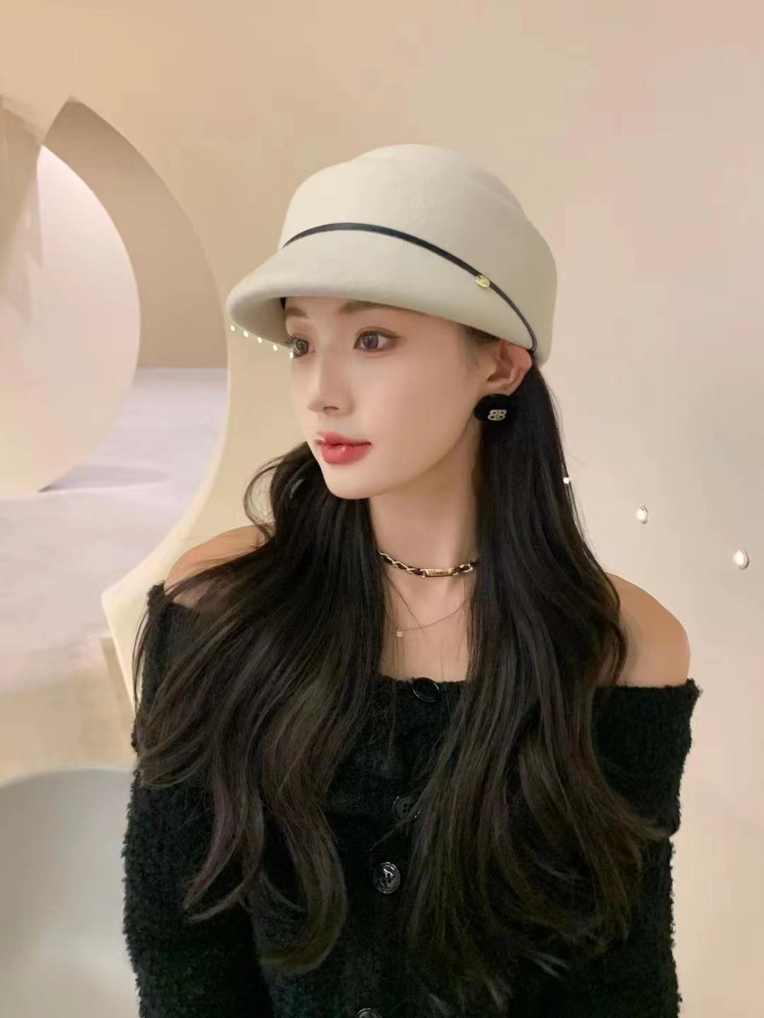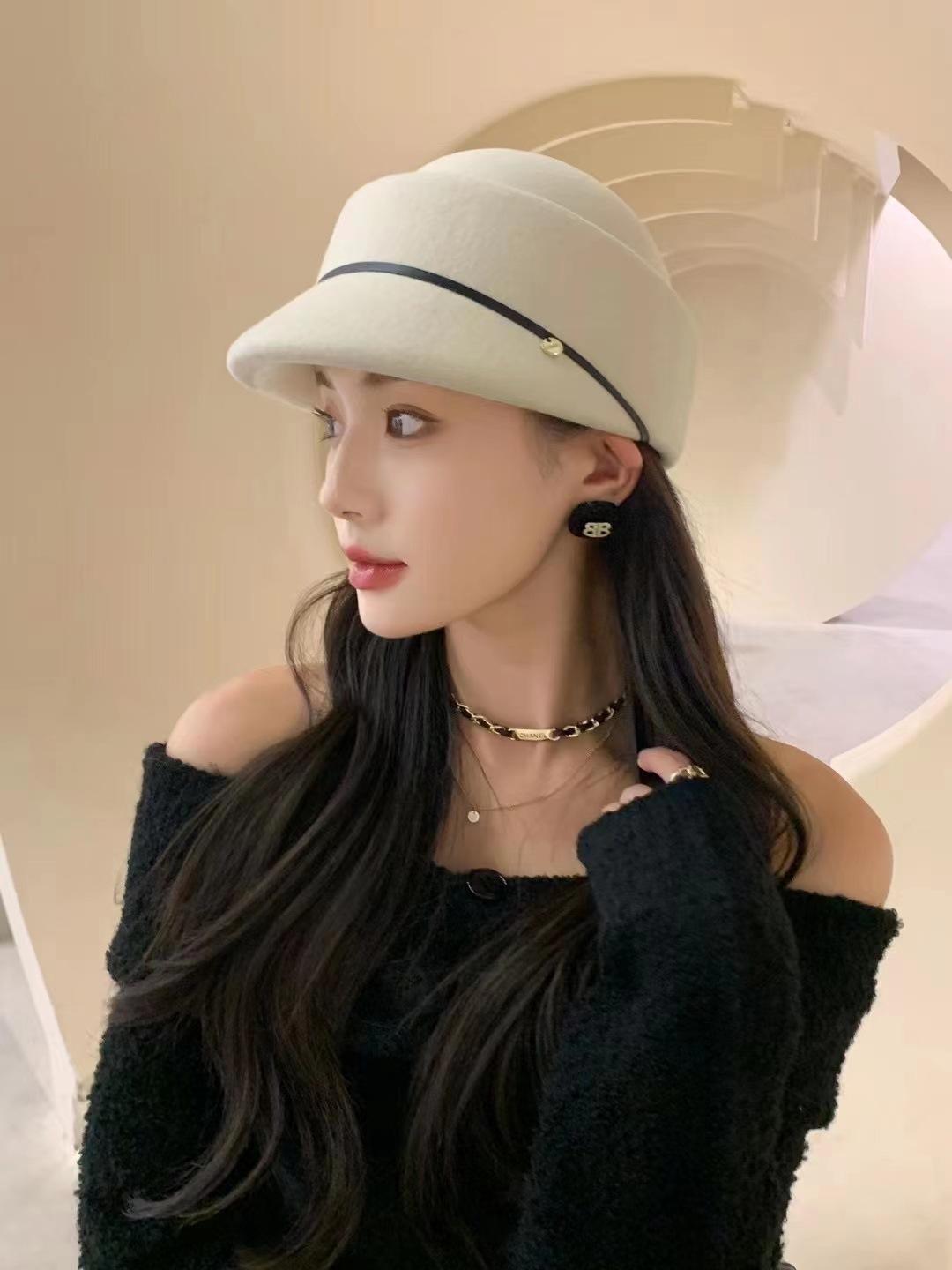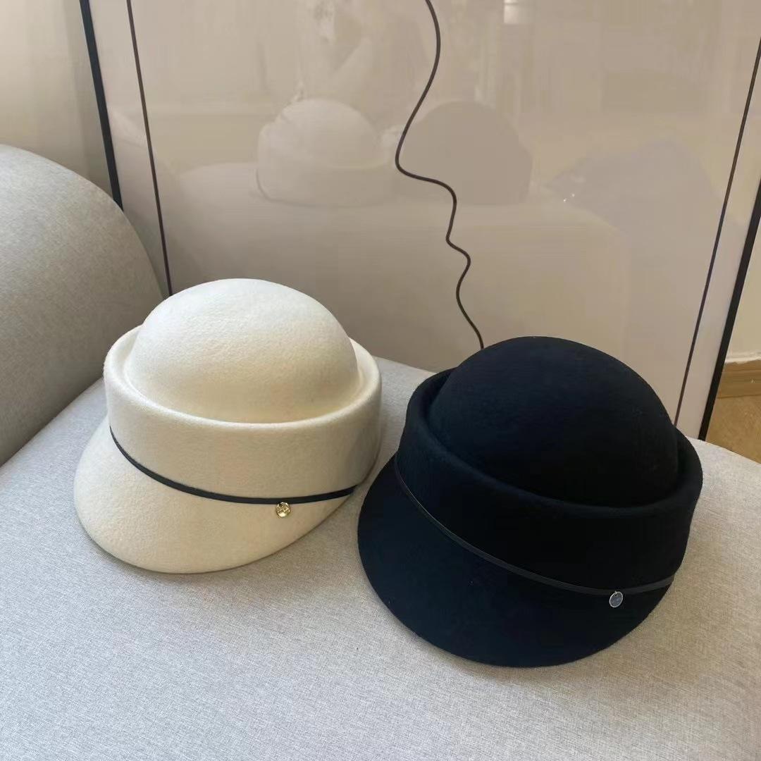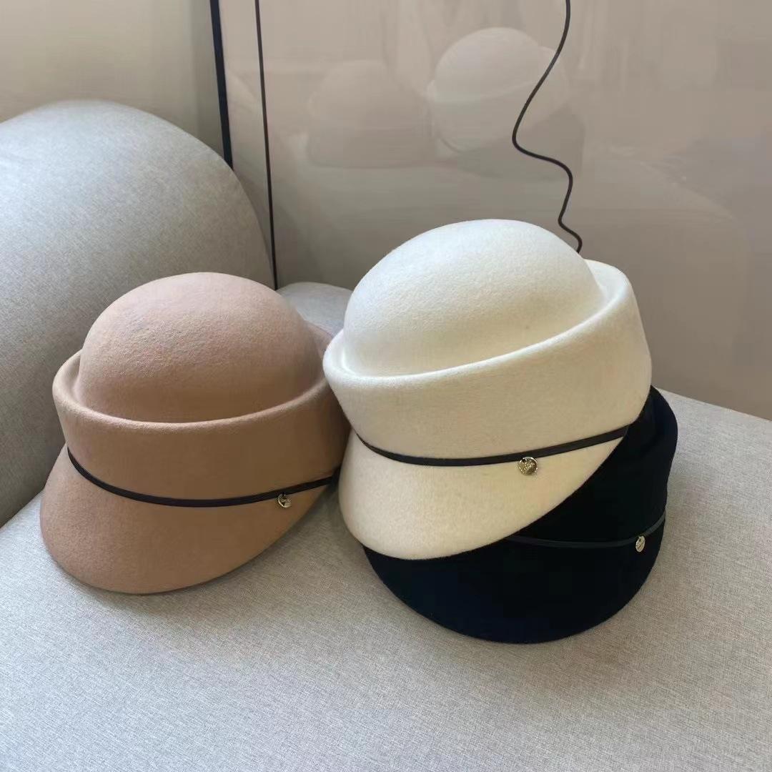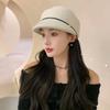 Boina de lana estilo Chanel, estilo azul marino, para otoño e invierno, de color liso, estilo retro, elegante, estilo británico, para azafata, tipo vendedor de periódicos.