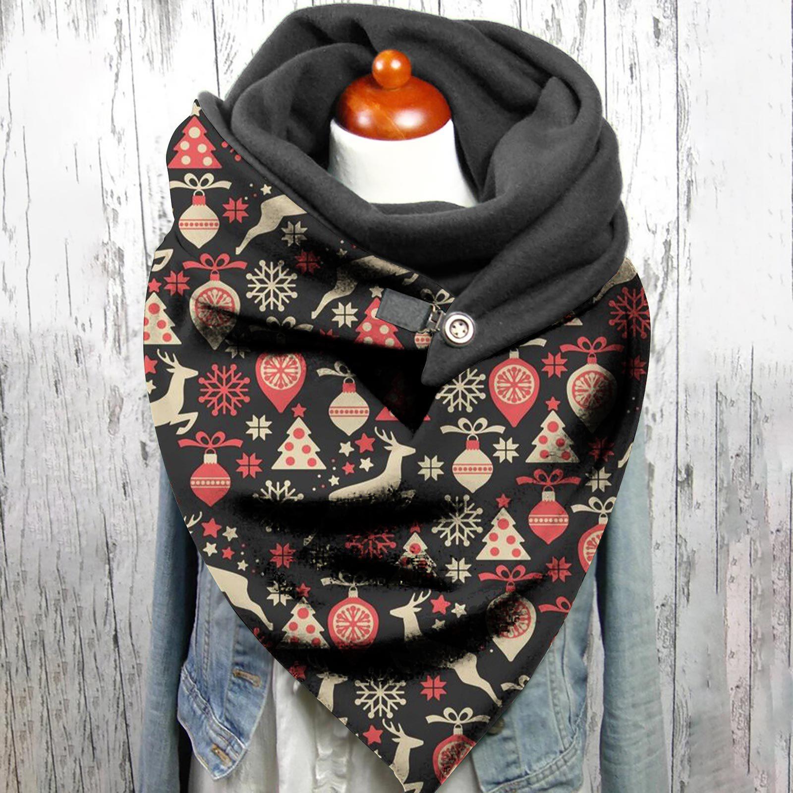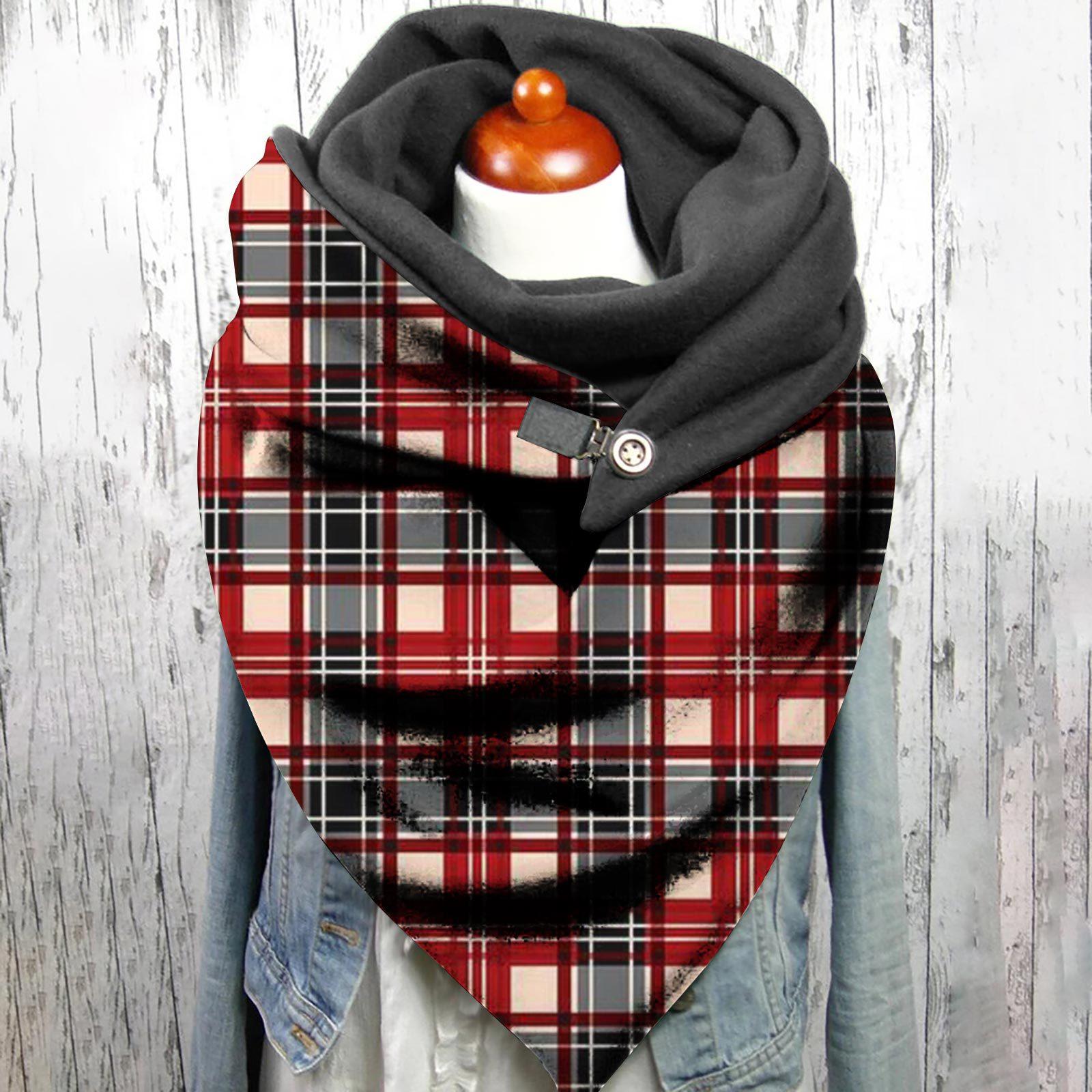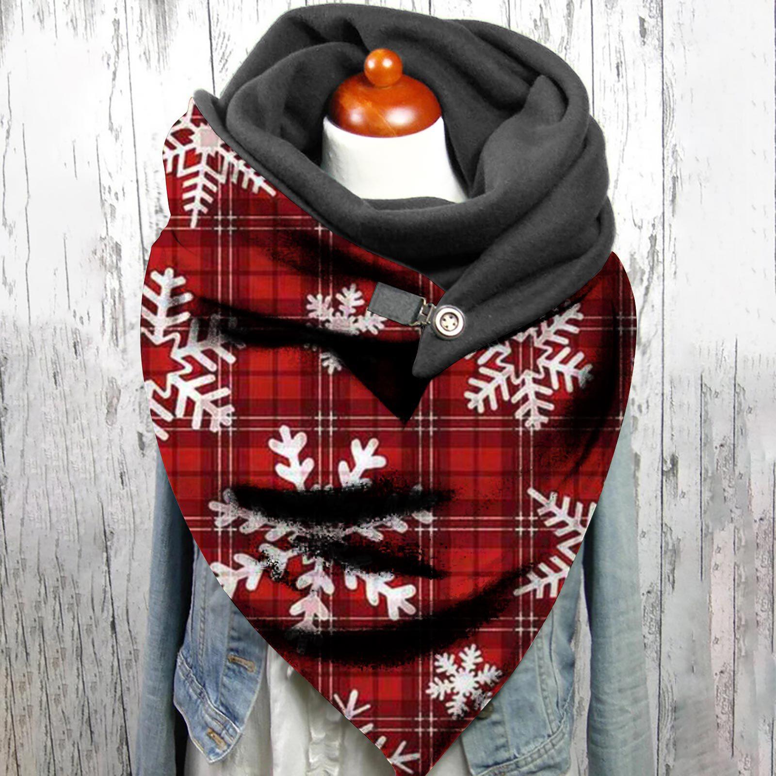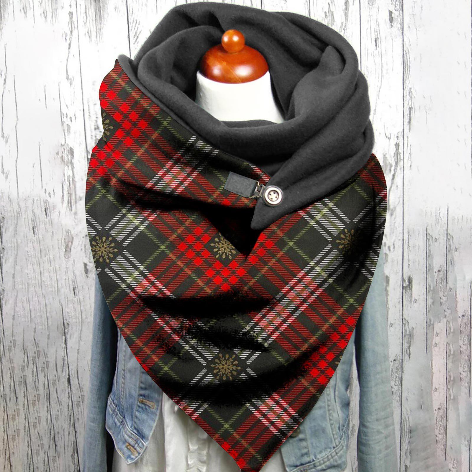 Bufanda triangular con botones de AliExpress, nueva, europea y americana, con estampado 3D navideño, cálida, a cuadros, para otoño e invierno.