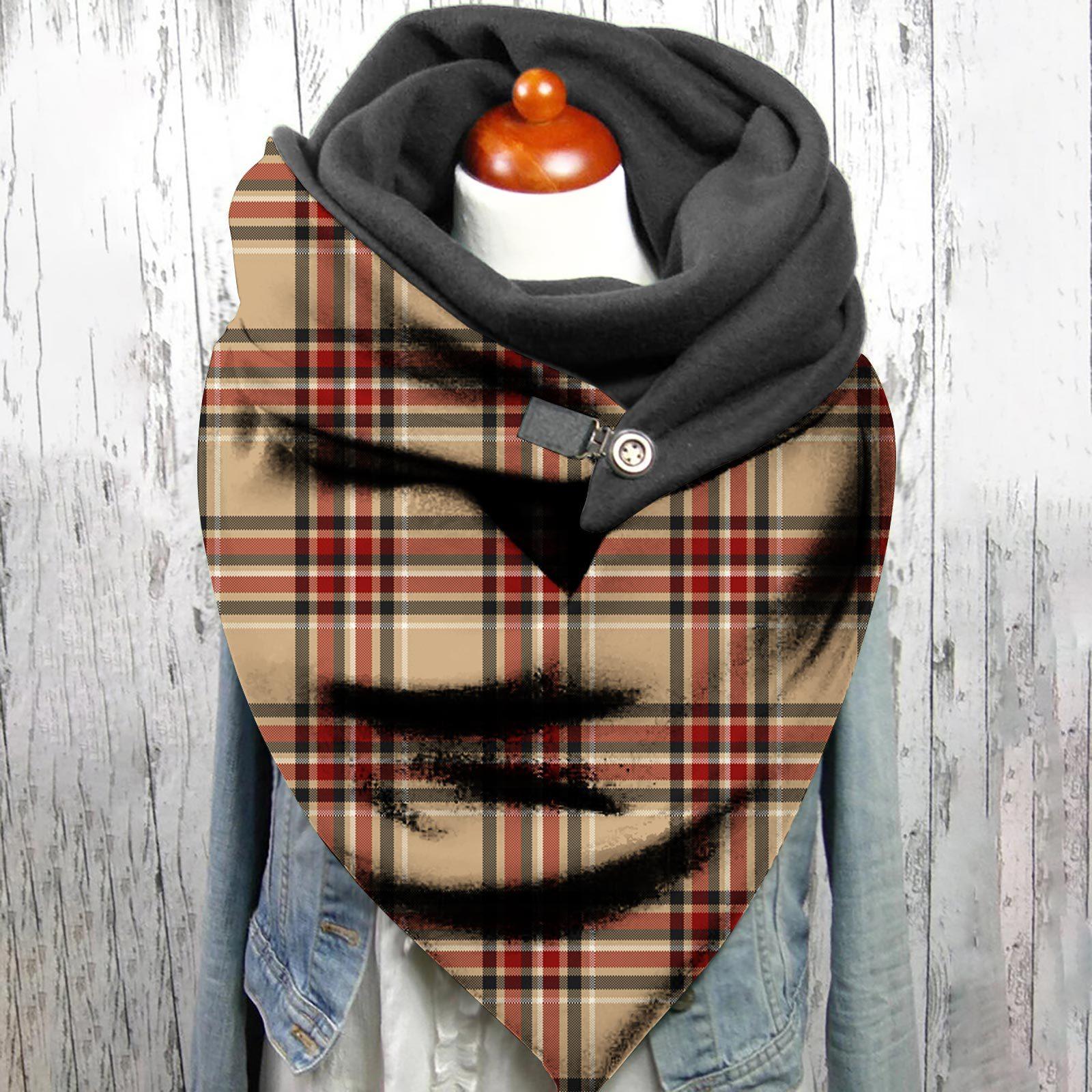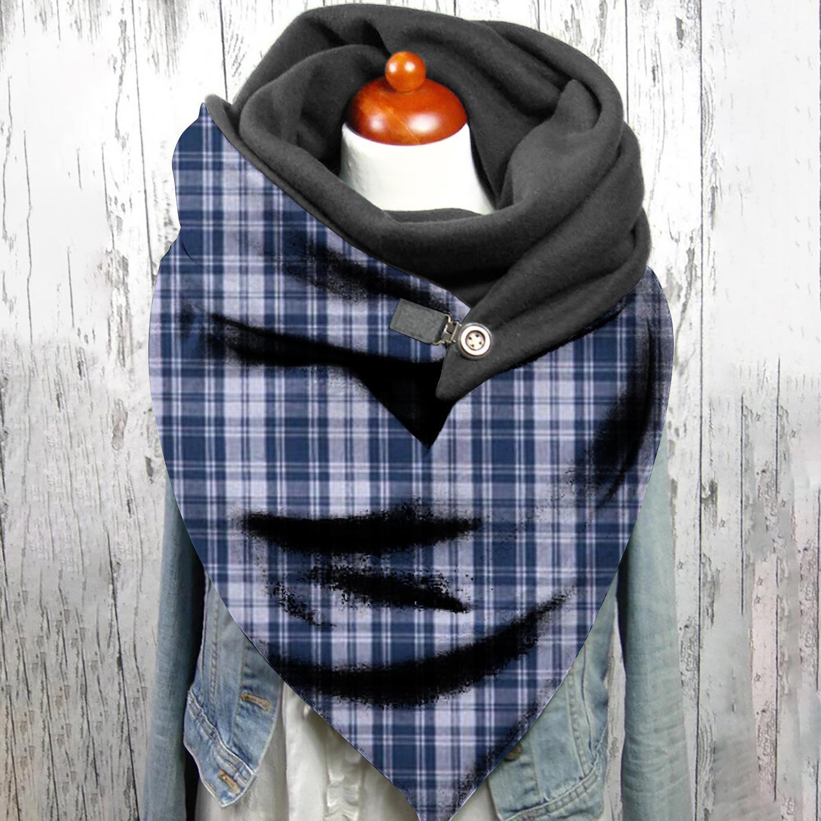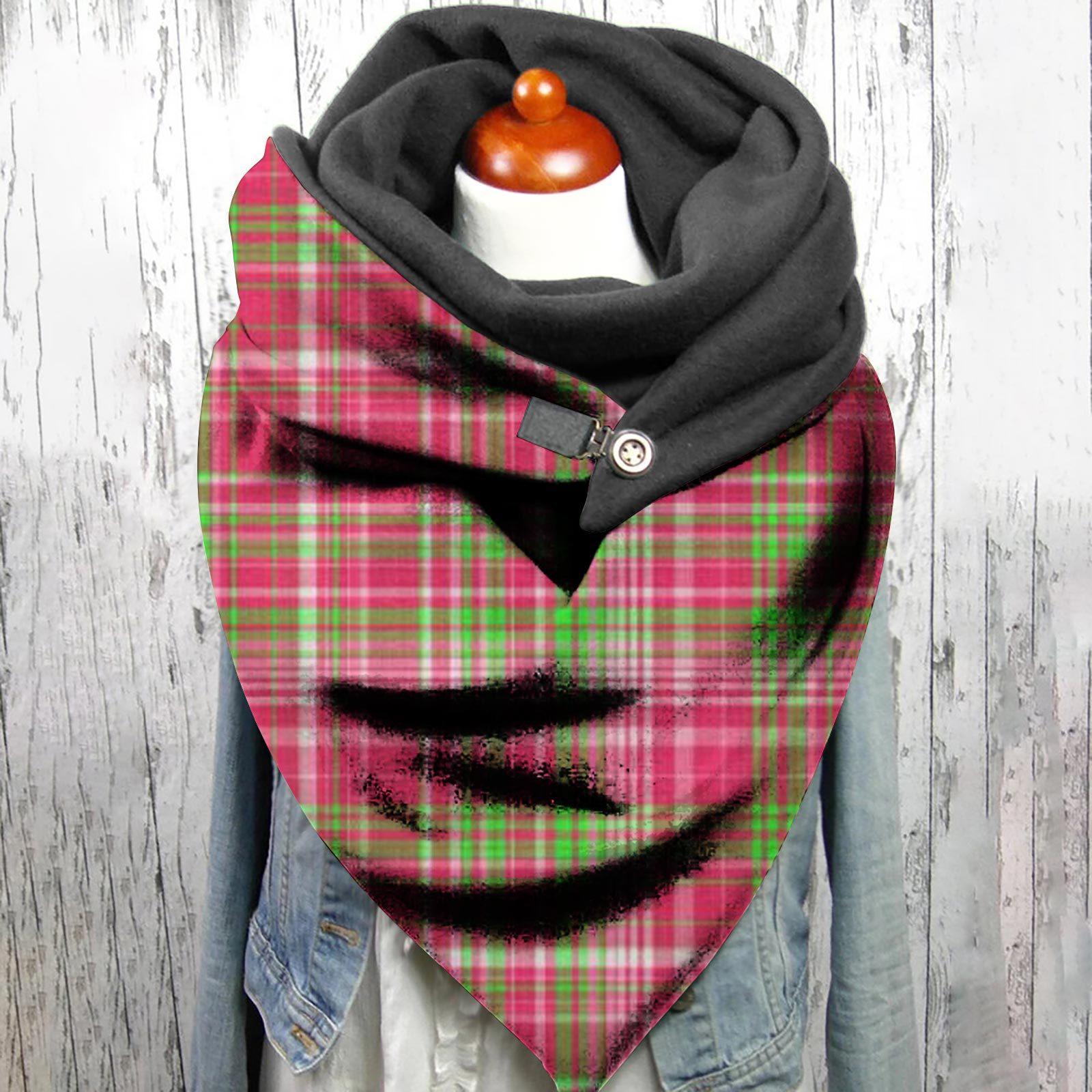Bufanda triangular con botones de AliExpress, nueva, europea y americana, con estampado 3D navideño, cálida, a cuadros, para otoño e invierno.
