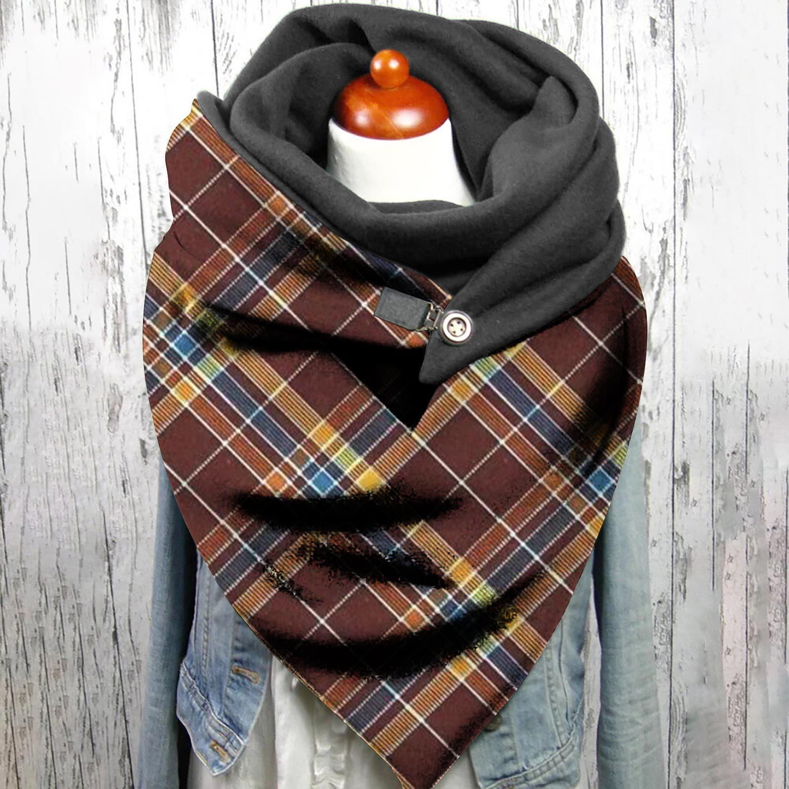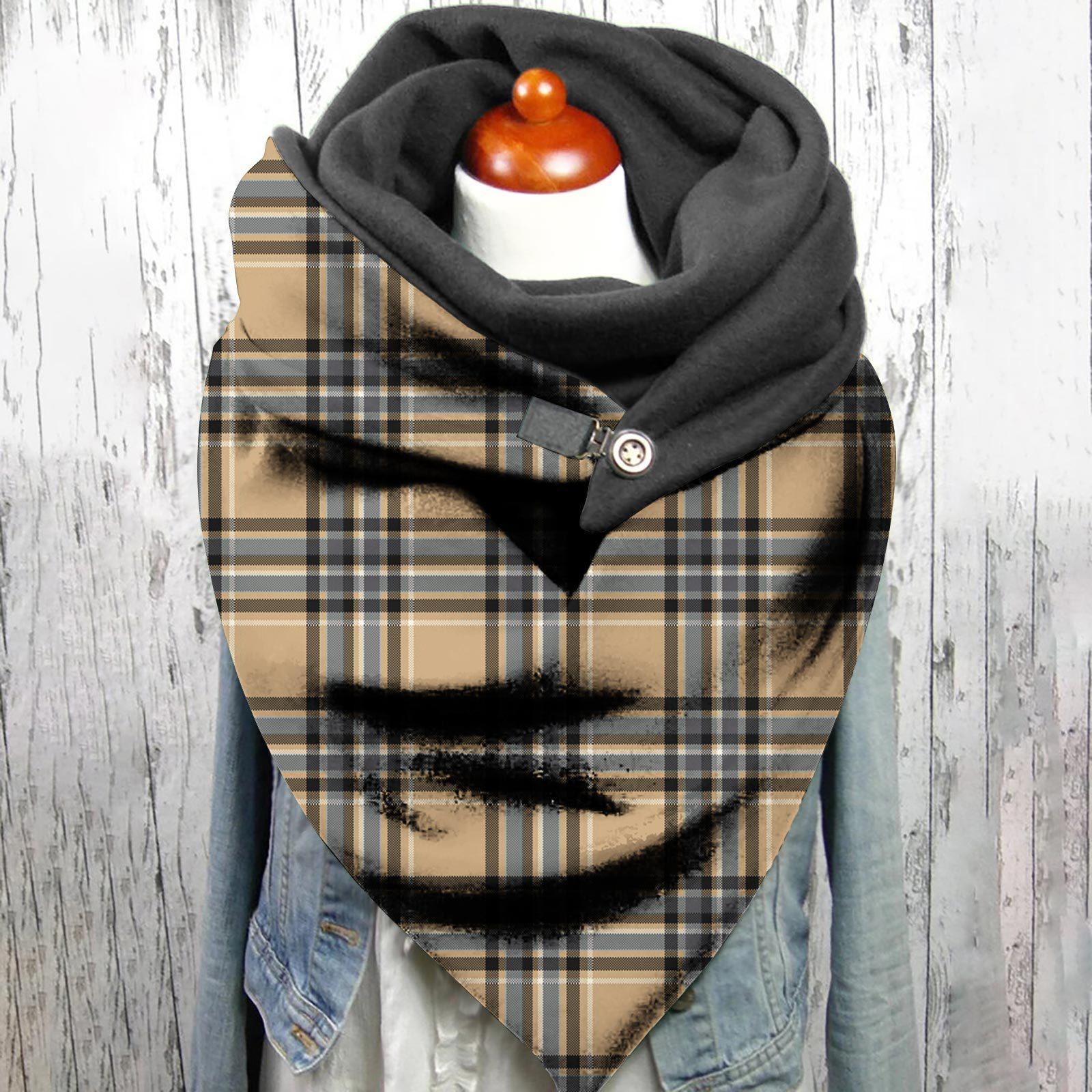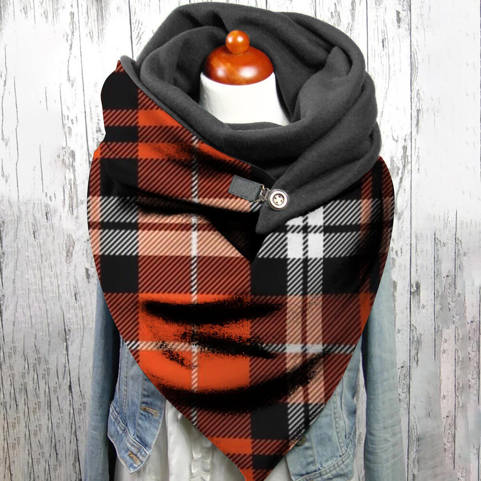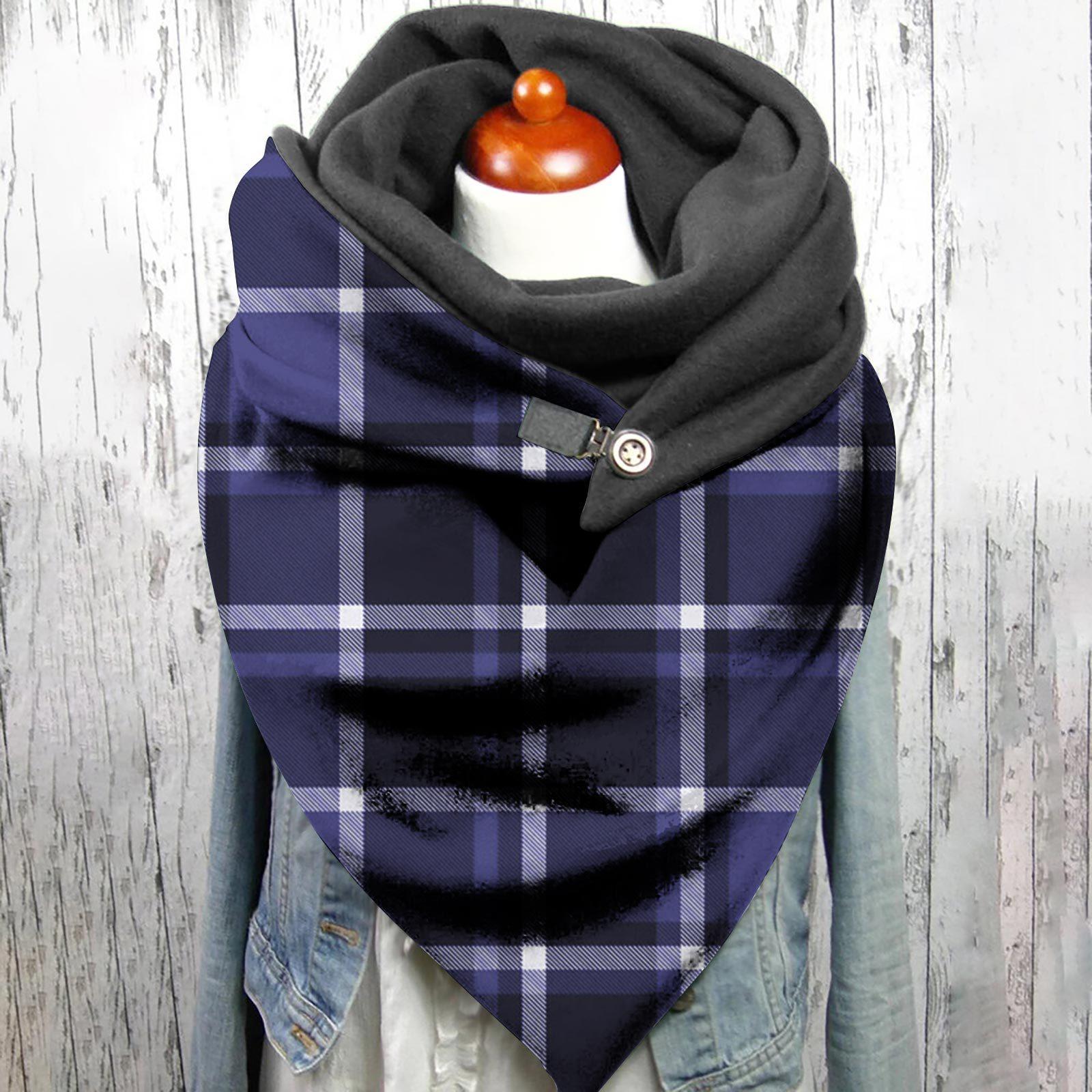 Bufanda triangular con botones de AliExpress, nueva, europea y americana, con estampado 3D navideño, cálida, a cuadros, para otoño e invierno.
