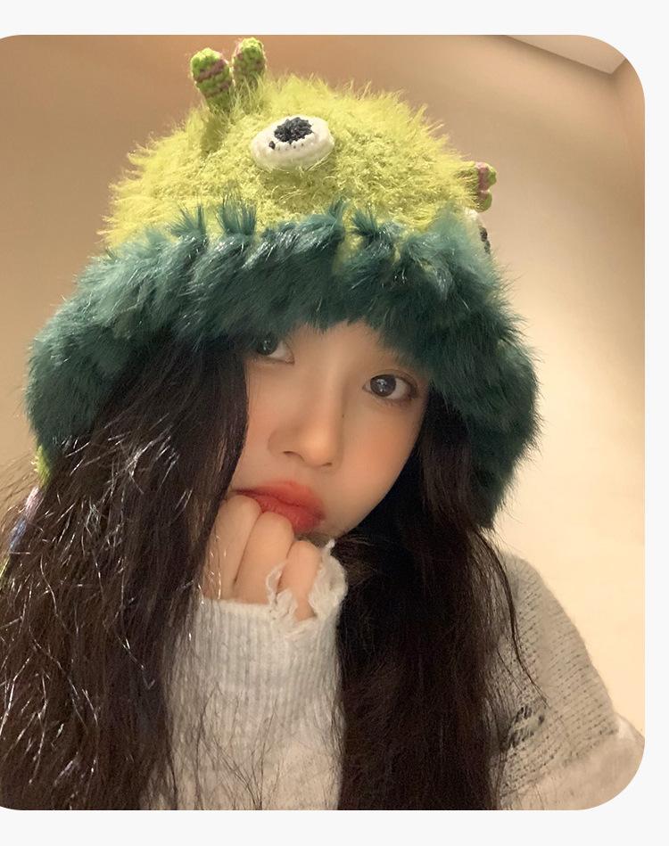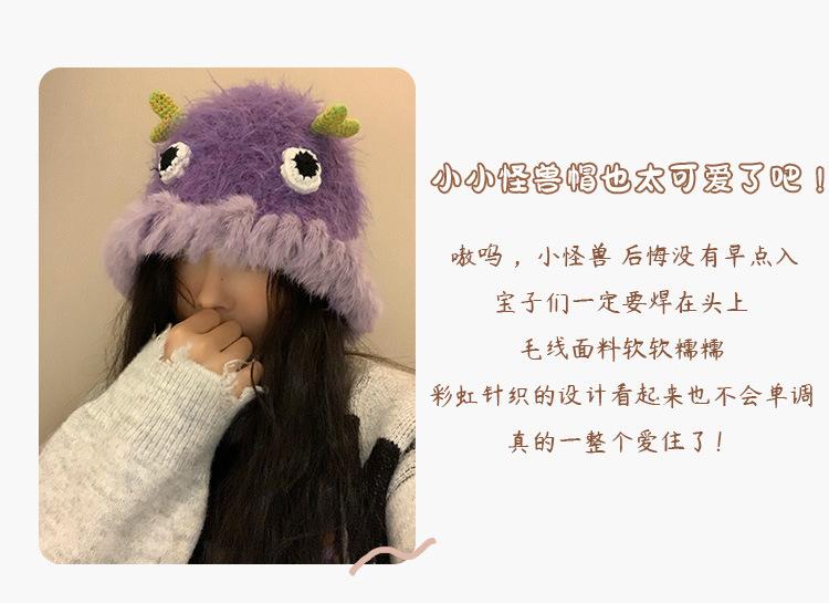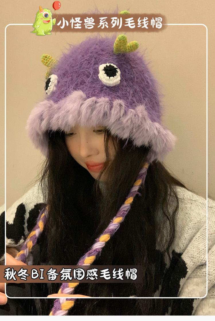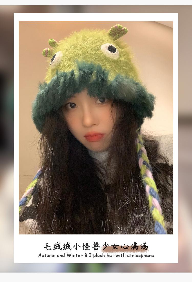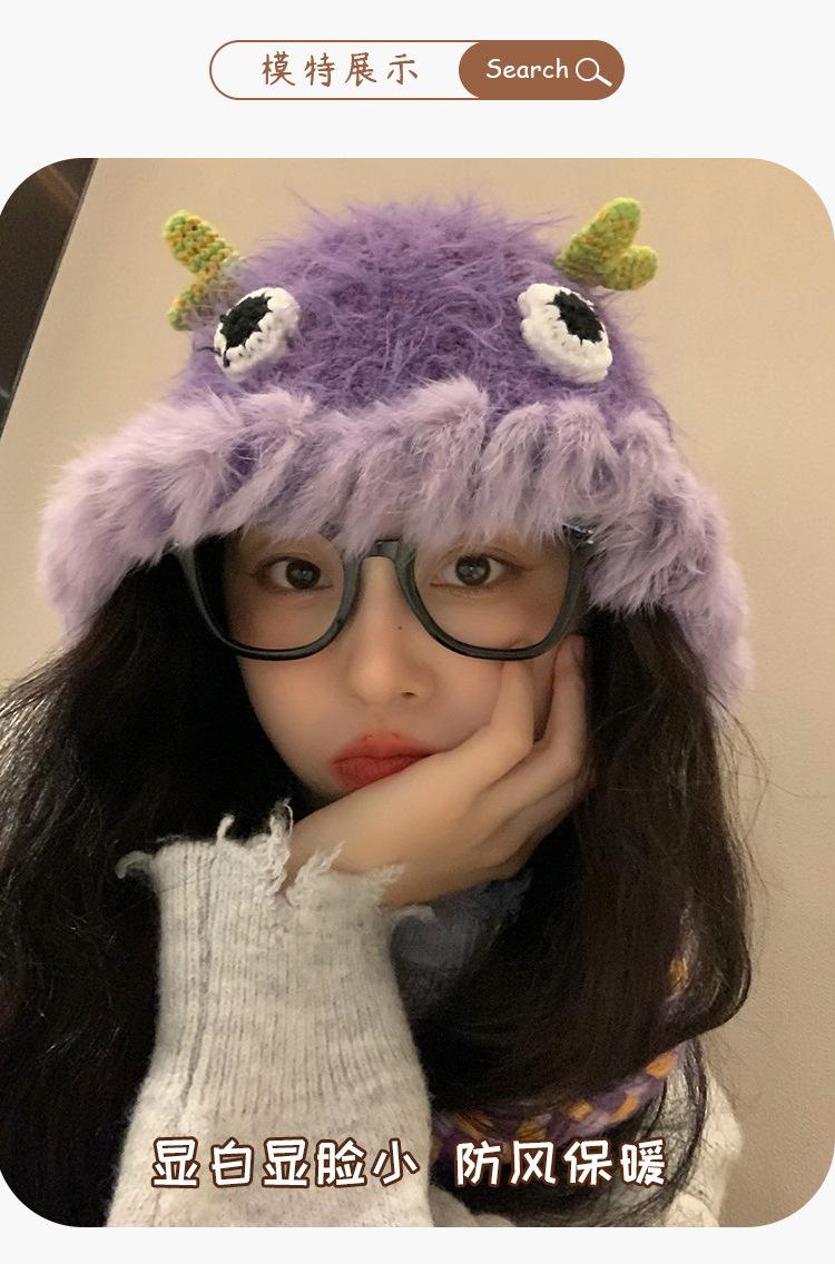 Sombrero de monstruo de peluche para mujer otoño e invierno divertido lindo sombrero de lana tejido cálido protección para las orejas sombrero Lei Feng hace que la cara se vea pequeña