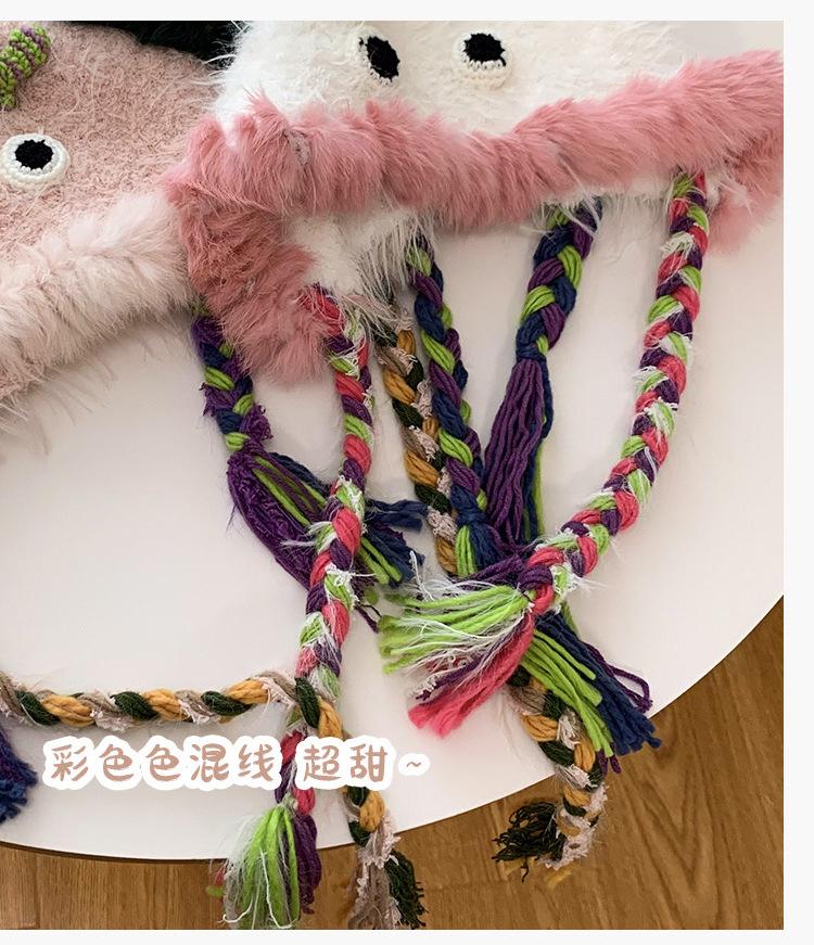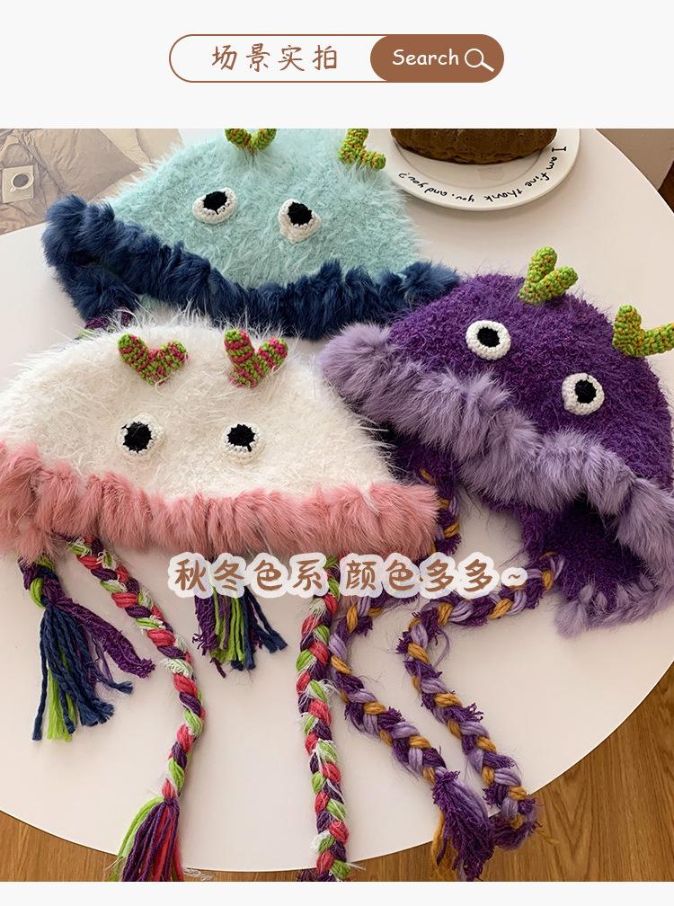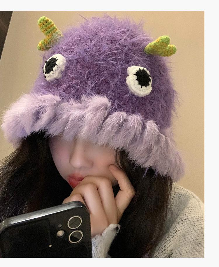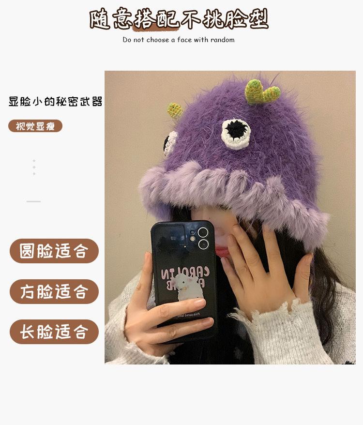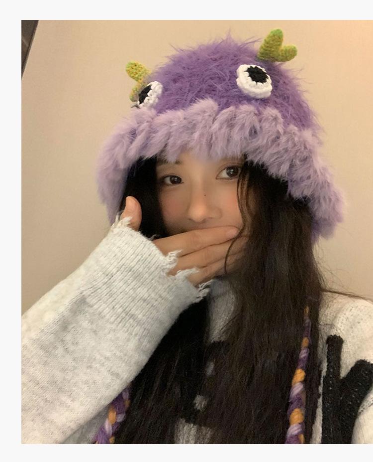 Sombrero de monstruo de peluche para mujer otoño e invierno divertido lindo sombrero de lana tejido cálido protección para las orejas sombrero Lei Feng hace que la cara se vea pequeña