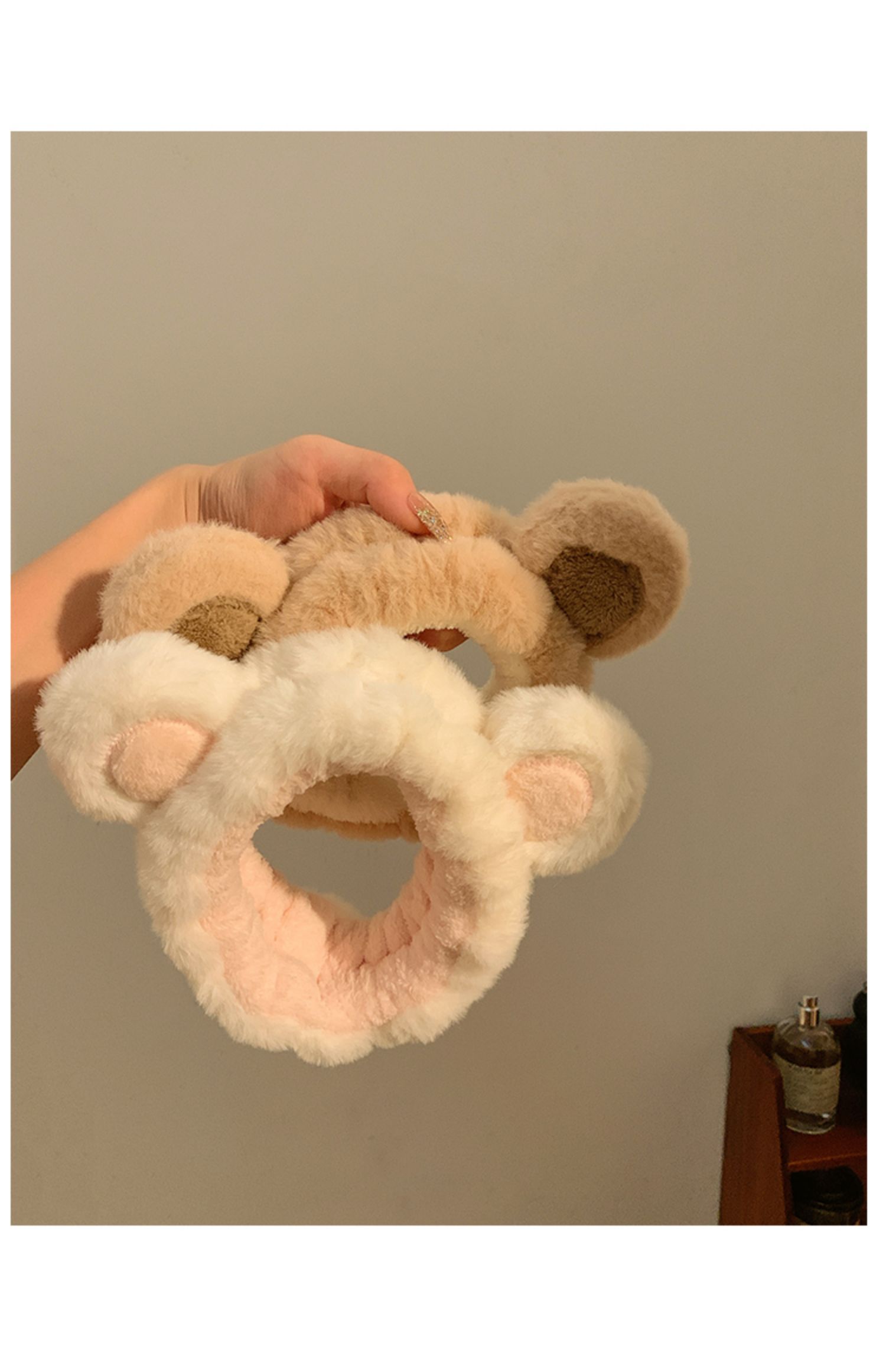 Bonita banda para el cabello con forma de oso de peluche para lavarse la cara, ideal para aplicar mascarillas con dibujos animados, ideal para otoño e invierno.